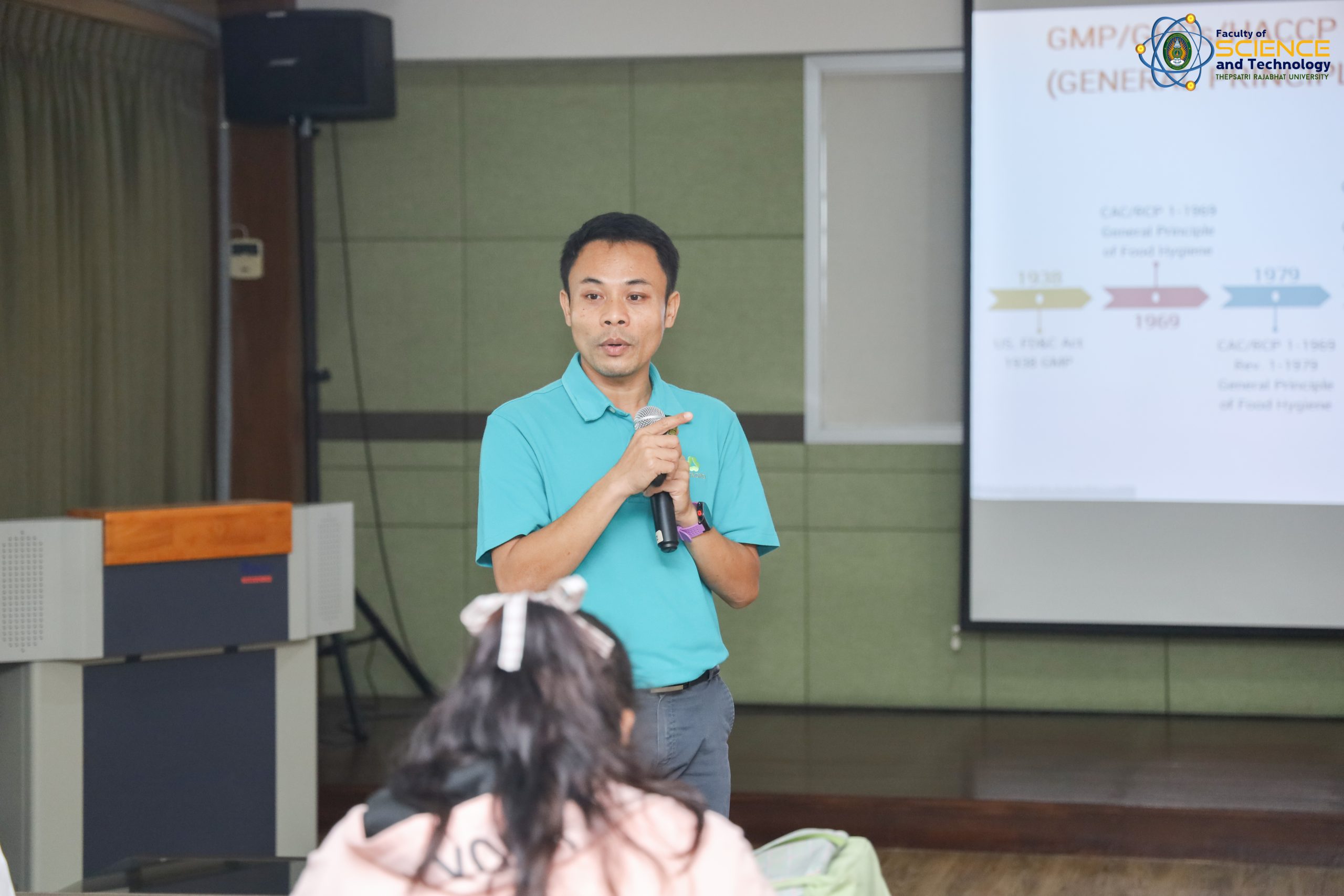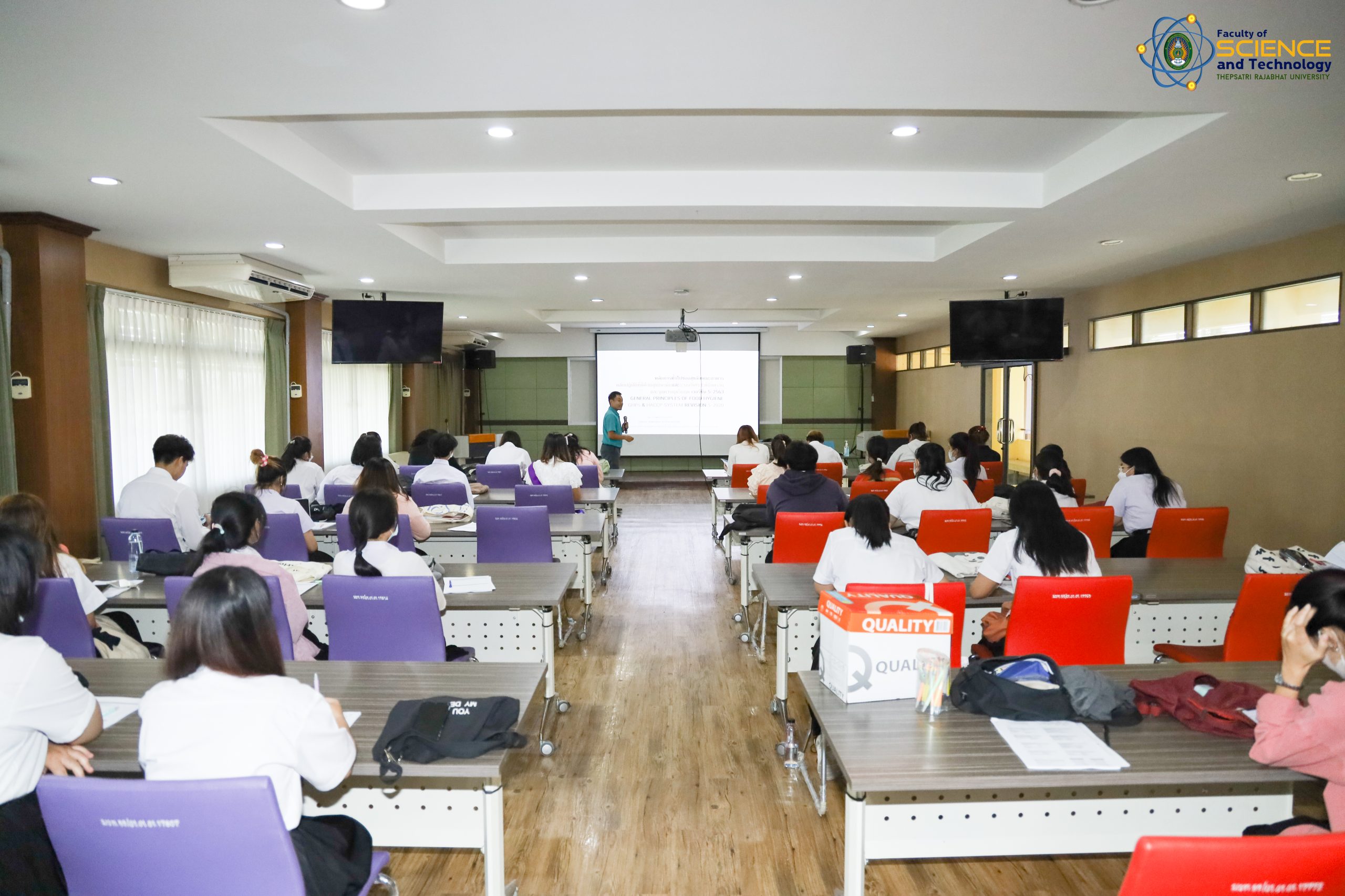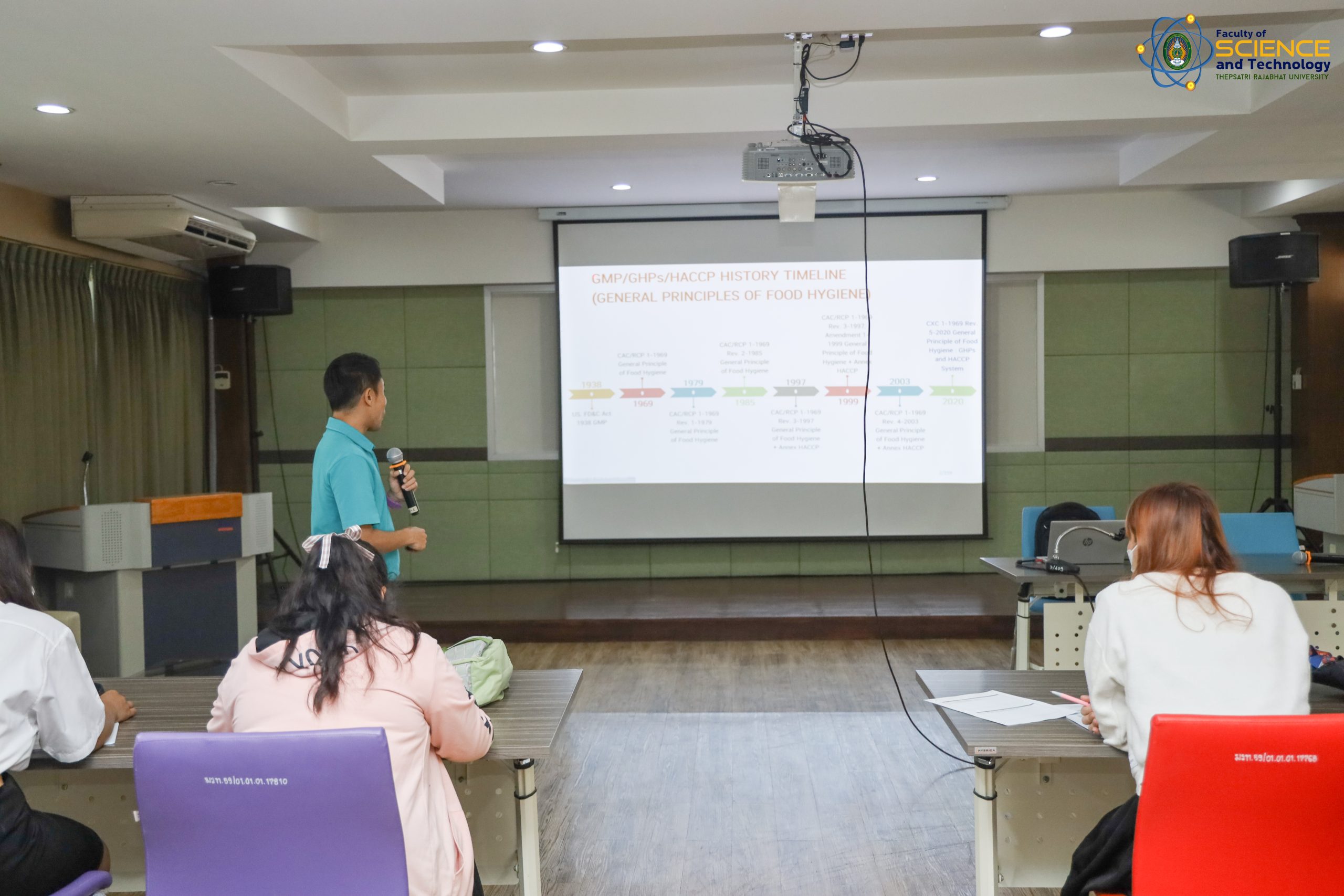 อ.ดร.ศตพล มุ่งค้ำกลาง คณบดีคณะวิทยาศาสตร์และเทคโนโลยี มหาวิทยาลัยราชภัฏเทพสตรี ให้เกียรติเป็นประธานในการเปิดโครงการเตรียมความพร้อมนักวิทยาศาสตร์และเทคโนโลยีการอาหารสู่อาชีพ การอบรมเชิงปฏิบัติการ “ระบบมาตราฐานความปลอดภัย GMP และ HACCP ในอุตสาหกรรมอาหาร” สำหรับนักศึกษาสาขาวิชาวิทยาศาสตร์และเทคโนโลยีการอาหาร วิทยากรได้รับเกียรติจาก คุณอานนท์ มลิเกตุ คุณโสรญา กลิ่นมาลัย คุณสุภารัตน์ โภคาปกรณ์ บริษัทเบทาโกรเกษตรอุตสาหกรรม จํากัด ซึ่งจัดโดยสาขาวิชาวิทยาศาสตร์และเทคโนโลยีการอาหาร คณะวิทยาศาสตร์และเทคโนโลยี มหาวิทยาลัยราชภัฏเทพสตรี ณ ห้องประชุมคณะวิทยาศาสตร์และเทคโนโลยี ชั้น 4 ห้อง 3/407