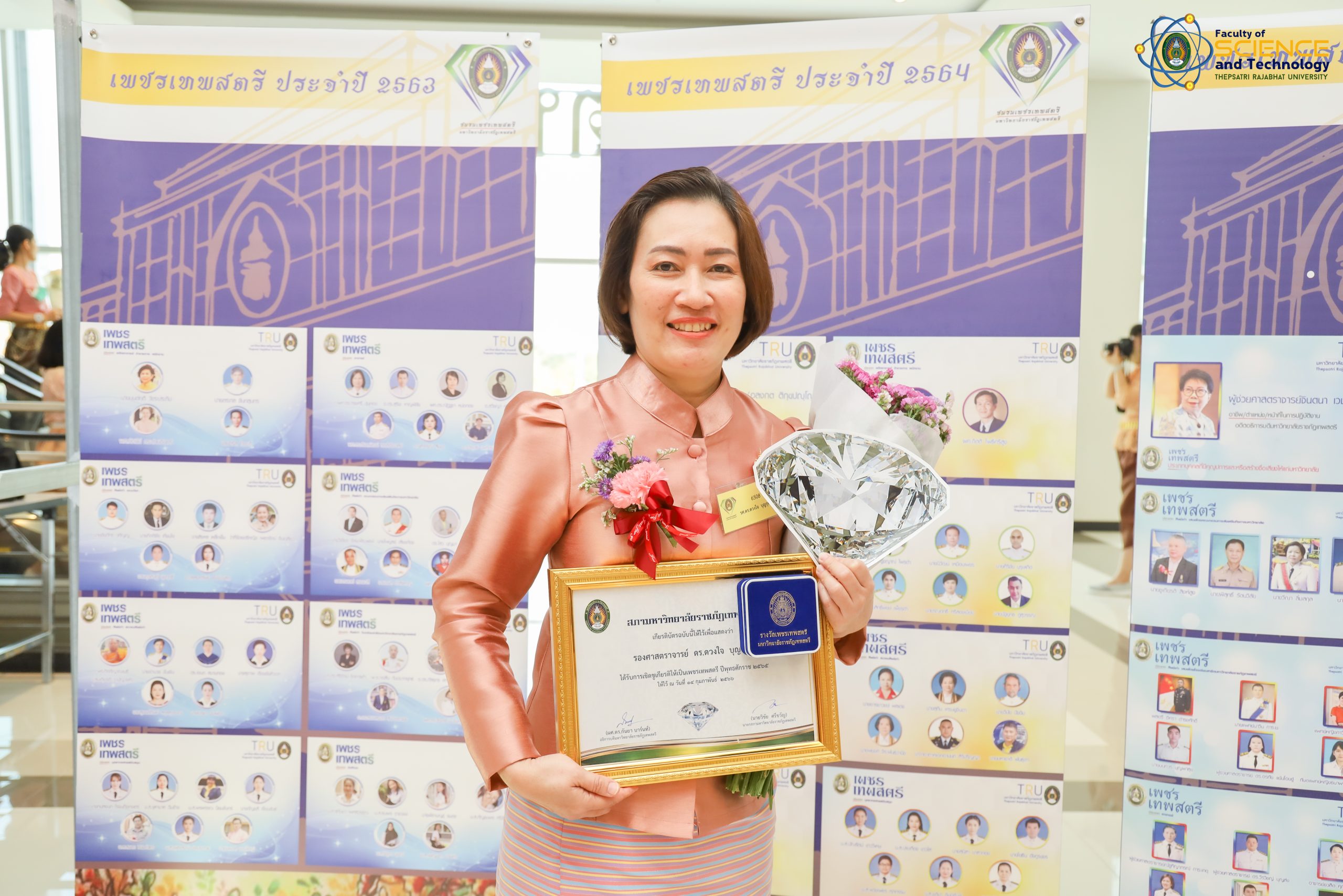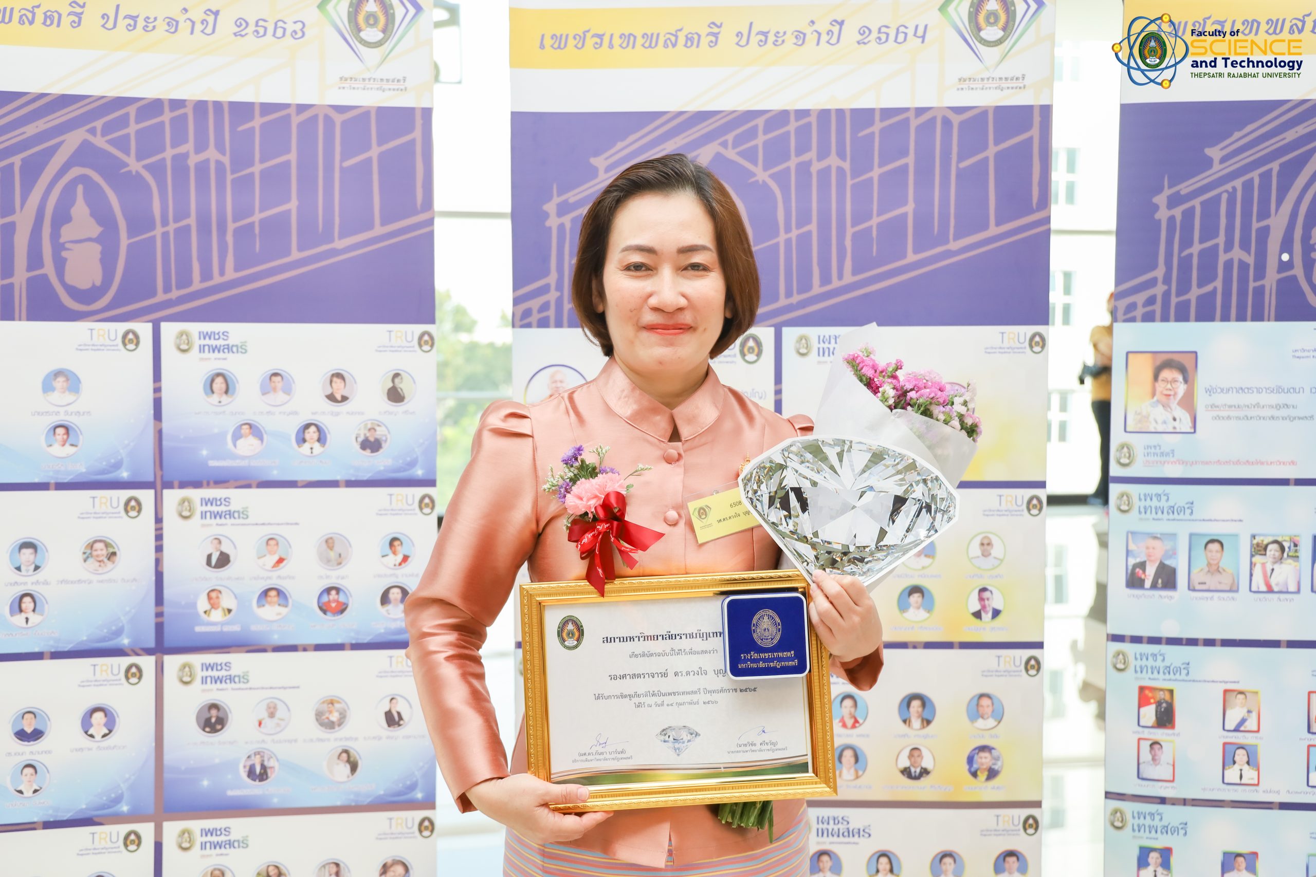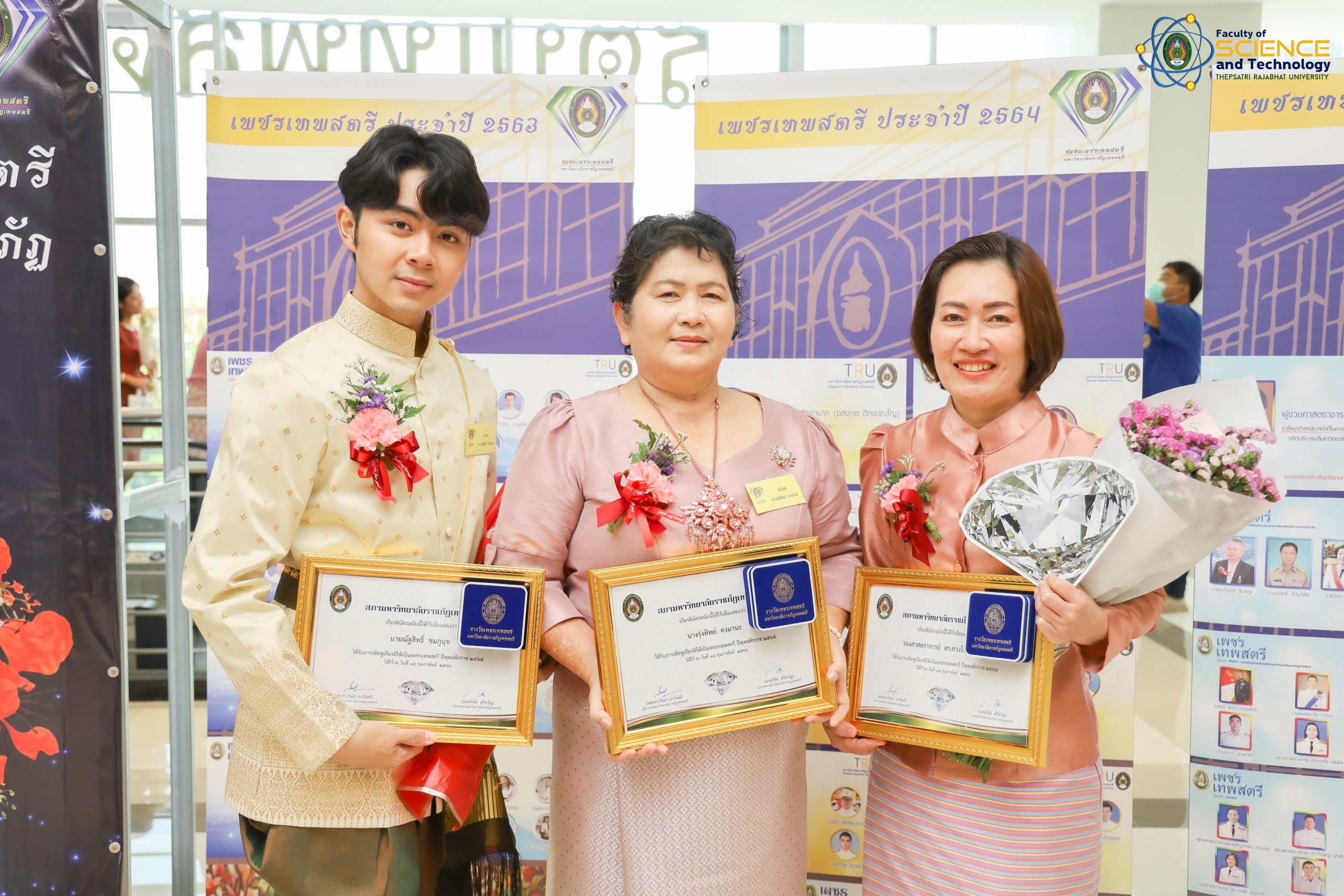 เพชรเทพสตรี ประจำปี 2565 คณะวิทยาศาสตร์และเทคโนโลยี มหาวิทยาลัยราชภัฏเทพสตรี ได้แก่ รองศาสตราจารย์ ดร.ดวงใจ บุญกุศล อาจารย์สาขาวิชาวิทยาศาสตร์ศึกษา , คุณรุ่งทิพย์ คงมานะ หัวหน้าสำนักงานคณบดี, นายณัฐสิทธ์ ชมภูนุช ประธานสโมสรคณะวิทยาศาสตร์และเทคโนโลยี มหาวิทยาลัยราชภัฏเทพสตรี