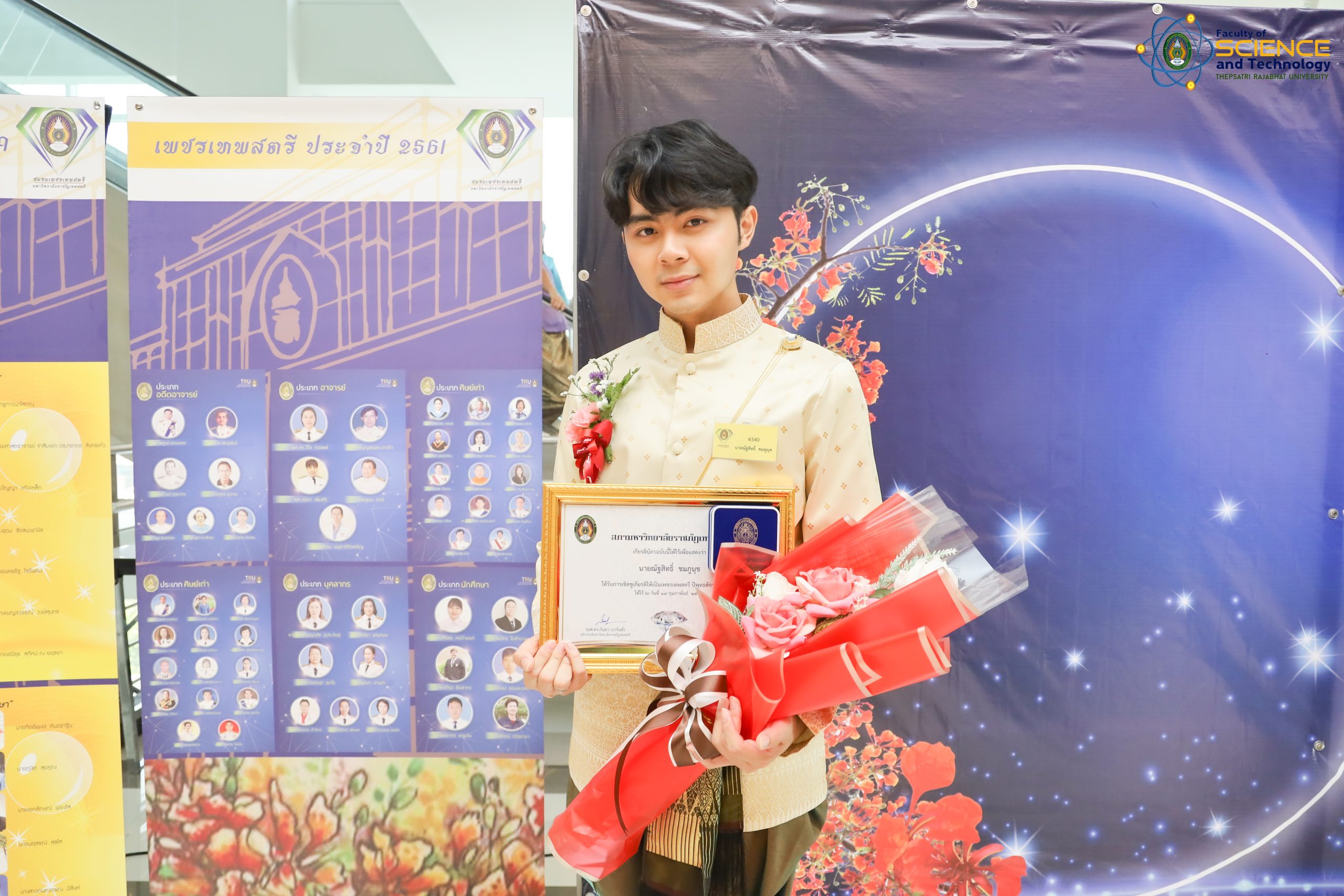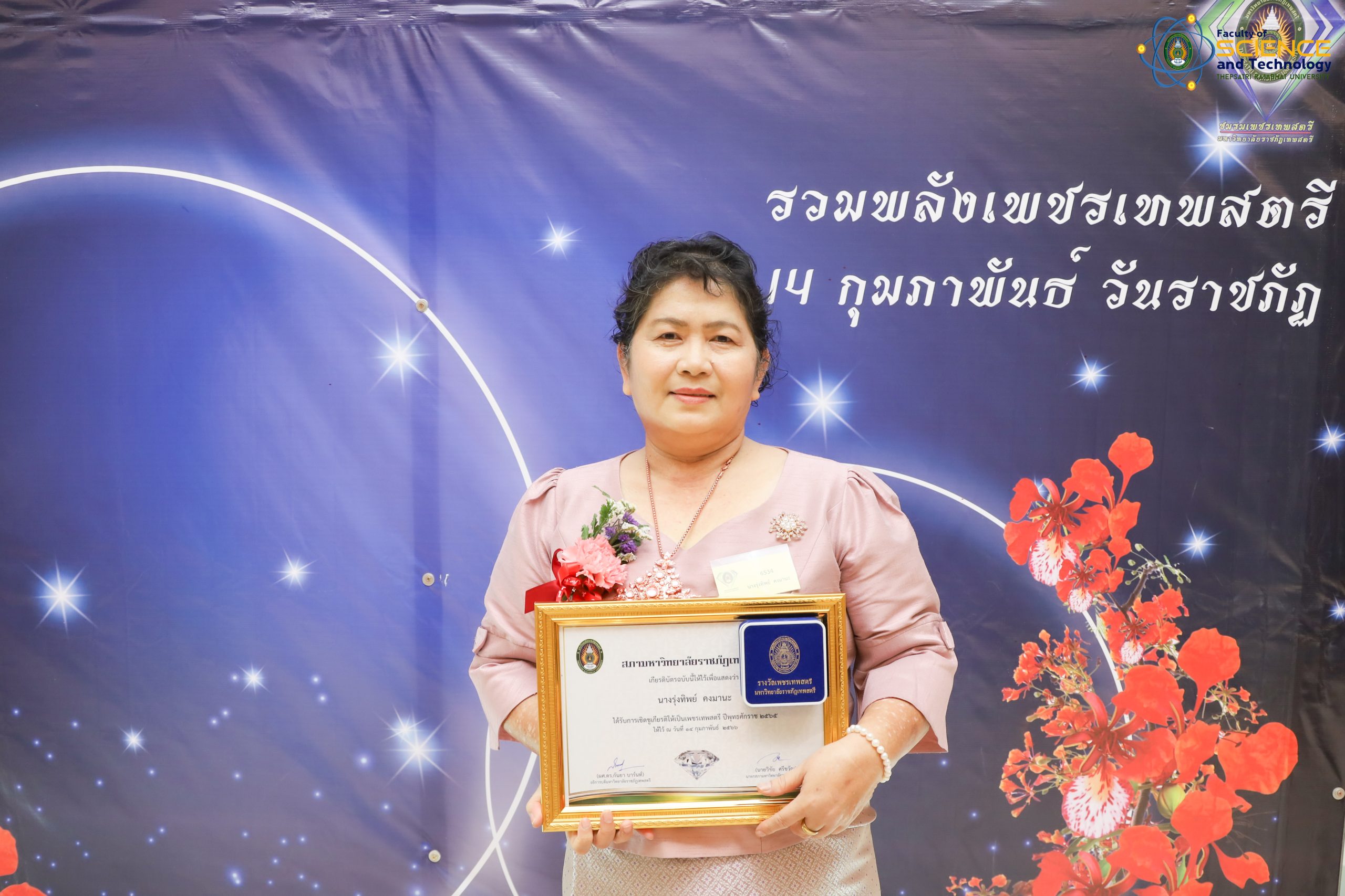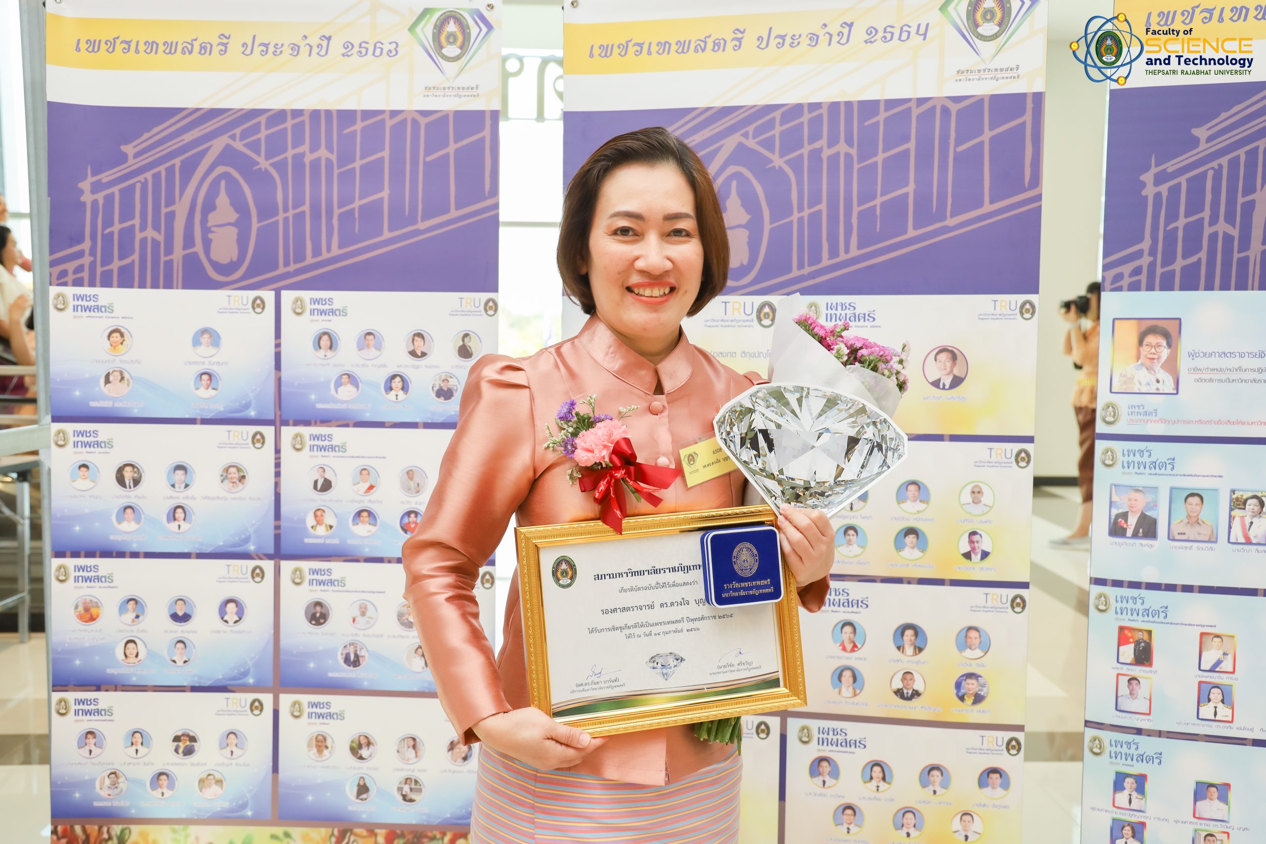 เพชรเทพสตรี ประจำปี 2565 คณะวิทยาศาสตร์และเทคโนโลยี มหาวิทยาลัยราชภัฏเทพสตรี ได้แก่ รองศาสตราจารย์ ดร.ดวงใจ บุญกุศล อาจารย์สาขาวิชาวิทยาศาสตร์ศึกษา , คุณรุ่งทิพย์ คงมานะ หัวหน้าสำนักงานคณบดี, นายณัฐสิทธ์ ชมภูนุช ประธานสโมสรคณะวิทยาศาสตร์และเทคโนโลยี มหาวิทยาลัยราชภัฏเทพสตรี