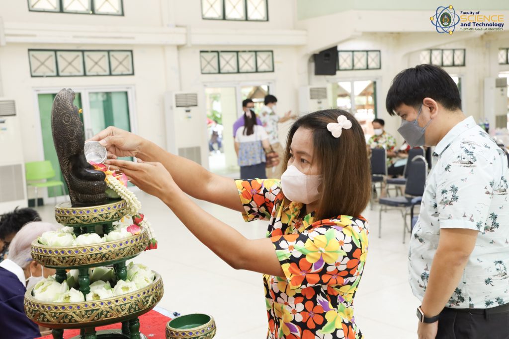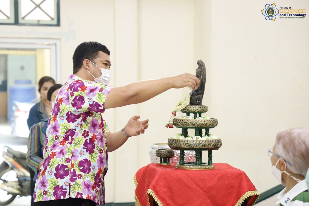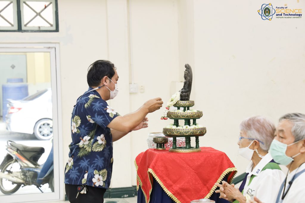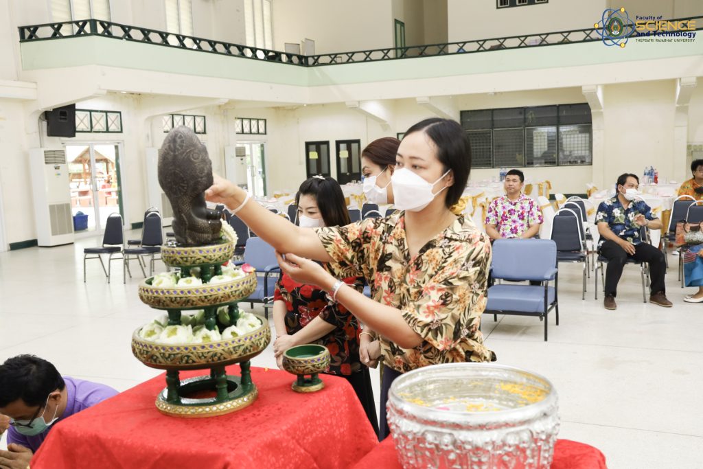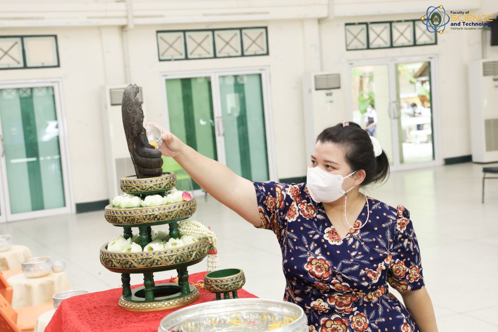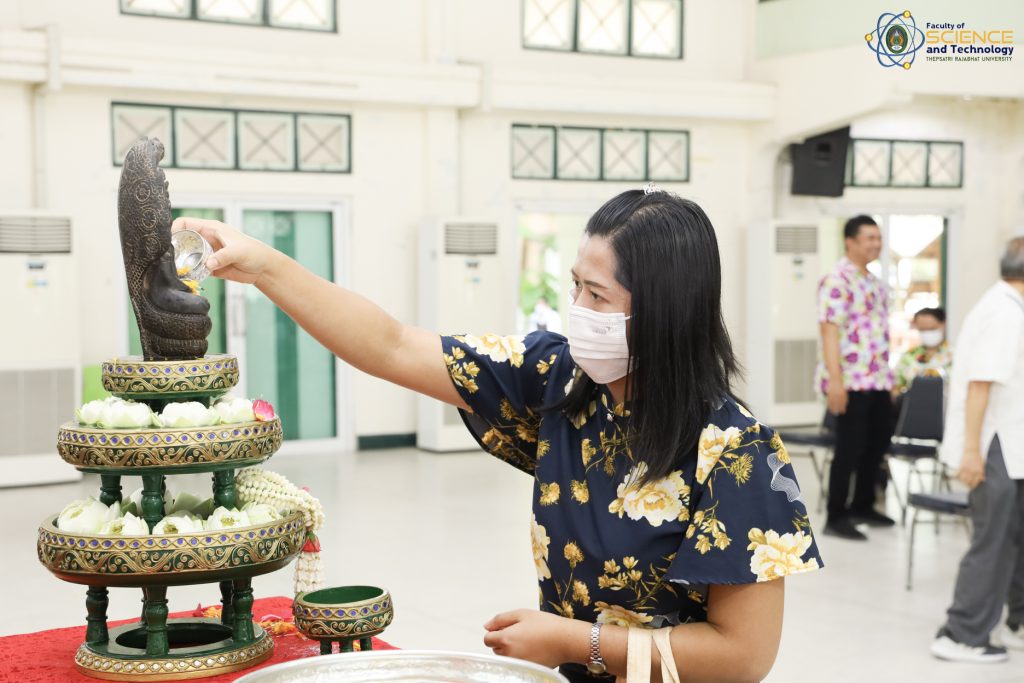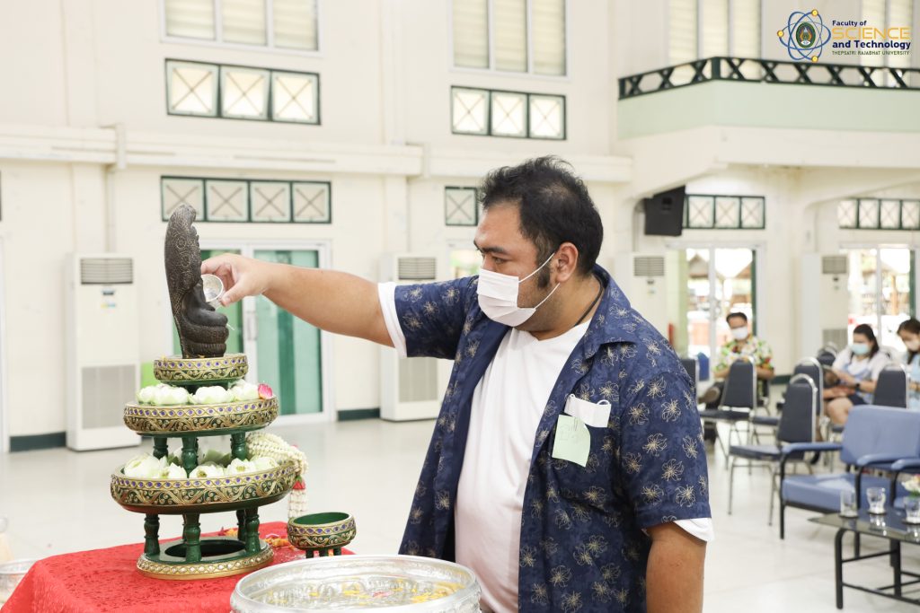 เมื่อวันที่ 21 เมษายน 2566 ณ หอประชุม 1 ผศ.ดร.กันตพัฒน์ กิตติอัชวาลย์ รองอธิการบดีฝ่ายบริหารจัดการ มหาวิทยาลัยราชภัฏเทพสตรี ให้เกียรติเป็นประธานในพิธีทำบุญประจำปี สืบสานวัฒนธรรมไทยประเพณีวันสงกรานต์ ของคณะวิทยาศาสตร์และเทคโนโลยี สำหรับกิจกรรมครั้งนี้จัดขึ้นโดยมีวัตถุประสงค์เพื่อให้ผู้บริหาร คณาจารย์ และบุคลากร ของคณะวิทยาศาสตร์และเทคโนโลยี ได้ร่วมกิจกรรมสืบสานประเพณีไทย และสร้างความเป็นสิริมงคลให้กับคณะและบุคลากรภายในหน่วยงาน