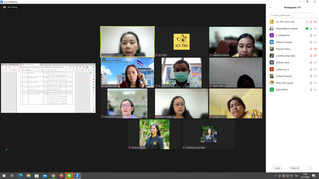 ผศ. ดร.เขมนิจจารีย์ สาริพัน์ รองคณบดีฝ่ายวิจัยและบริหารงานวิชาการ คณะวิทยาศาสตร์และเทคโนโลยี มหาวิทยาลัยราชภัฏเทพสตรี ได้ ให้เกียรติเป็นประธานการประชุมคณะกรรมการพิจารณากลั่นกรองผลการศึกษา ครั้งที่ 7/2566 คณะวิทยาศาสตร์และเทคโนโลยี มหาวิทยาลัยราชภัฏเทพสตรี ซึ่งมีคณะกรรมการเข้าร่วมการประชุมกว่า 2 ใน 3 ผ่านห้องประชุมอิเล็กทรอนิกส์ (ระบบวิดีโอคอนเฟอร์เรนซ์)