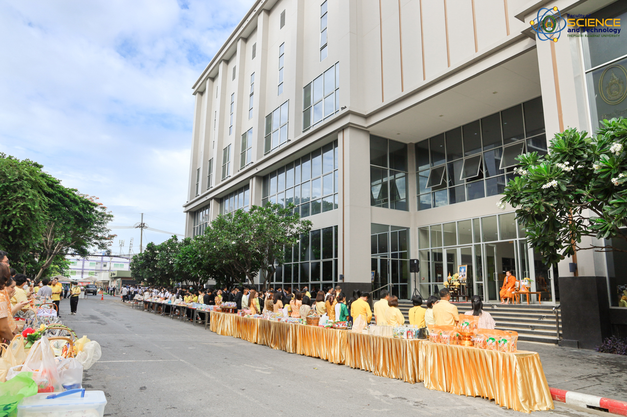 คณะผู้บริหาร คณาจารย์ และบุคลากรสายสนับสนุน คณะวิทยาศาสตร์และเทคโนโลยี มหาวิทยาลัยราชภัฏเทพสตรี ได้เข้าร่วมพิธีทำบุญตักบาตรอาหารแห้งและพิธีถวายพระพรชัยมงคล ร.10 ณ ห้องประชุมพระนาราย์ อาคารรัตนเทพสตรี ชั้น 4 มหาวิทยาลัยราชภัฏเทพสตรี