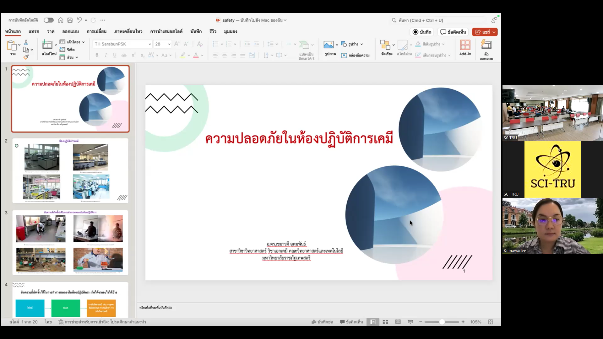 เมื่อวันที่ 21 มิถุนายน พ.ศ. 2567 ณ ห้องประชุม ชั้น 4 อาคาร 3 อ.ดร.ศตพล มุ่งค้ำกลาง คณบดีคณะวิทยาศาสตร์และเทคโนโลยี มหาวิทยาลัยราชภัฏเทพสตรี ให้เกียรติเป็นประธานพิธีโครงการอบรมเชิงปฏิบัติการความปลอดภัยในห้องปฏิบัติการ โดยวิทยากรได้รับเกียรติจาก อาจารย์ ดร.ธนวัฒน์ พงษ์ศักดิ์ อาจารย์ ดร.อรนวล หาญเม่ง อาจารย์ ดร.เขมาวดี อุดมพันธ์ อาจารย์ประจำสาขาวิชาวิทยาศาสตร์ คณะวิทยาศาสตร์และเทคโนโลยี มหาวิทยาลัยราชภัฏเทพสตรี วัตถุประสงค์เพื่อให้บุคลากรคณะวิทยาศาสตร์และเทคโนโลยี เกิดความรู้ความเข้าใจเกิดทักษะปฏิบัติเกี่ยวกับการใช้ห้องปฏิบัติการทางเคมีขั้นพื้นฐาน และความปลอดภัยในห้องปฏิบัติการเคมี