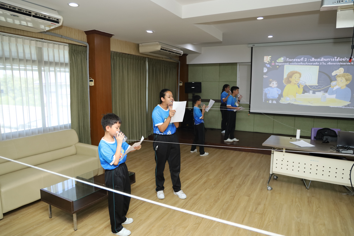 ผู้ช่วยศาสตราจารย์ณภัทรษกร สารพัฒน์ อาจารย์ประจำคณะวิทยาศาสตร์และเทคโนโลยี ได้จัดกิจกรรมการทดลองเรื่องเสียงโดยการวัดคลื่นเสียง ให้กับนักเรียนระดับชั้นประถมศึกษาปีที่ 5 โรงเรียนบรรจงรัตน์ ภายใต้โครงการ SMEP ที่เป็นความร่วมมือระหว่างคณะวิทยาศาสตร์และเทคโนโลยีร่วมกับโรงเรียนบรรจงรัตน์ เพื่อให้นักเรียนระดับชั้นประถมศึกษาปีที่ 5 ได้สังเกตและเปรียบเทียบคุณสมบัติของเสียง เช่น ความดัง-ความค่อย (แอมพลิจูด) และ เสียงสูง-เสียงต่ำ (ความถี่) ผ่านการทดลองที่มองเห็นผลลัพธ์ได้ชัดเจน ซึ่งจะช่วยให้เข้าใจแนวคิดของคลื่นเสียงได้ง่ายขึ้น
