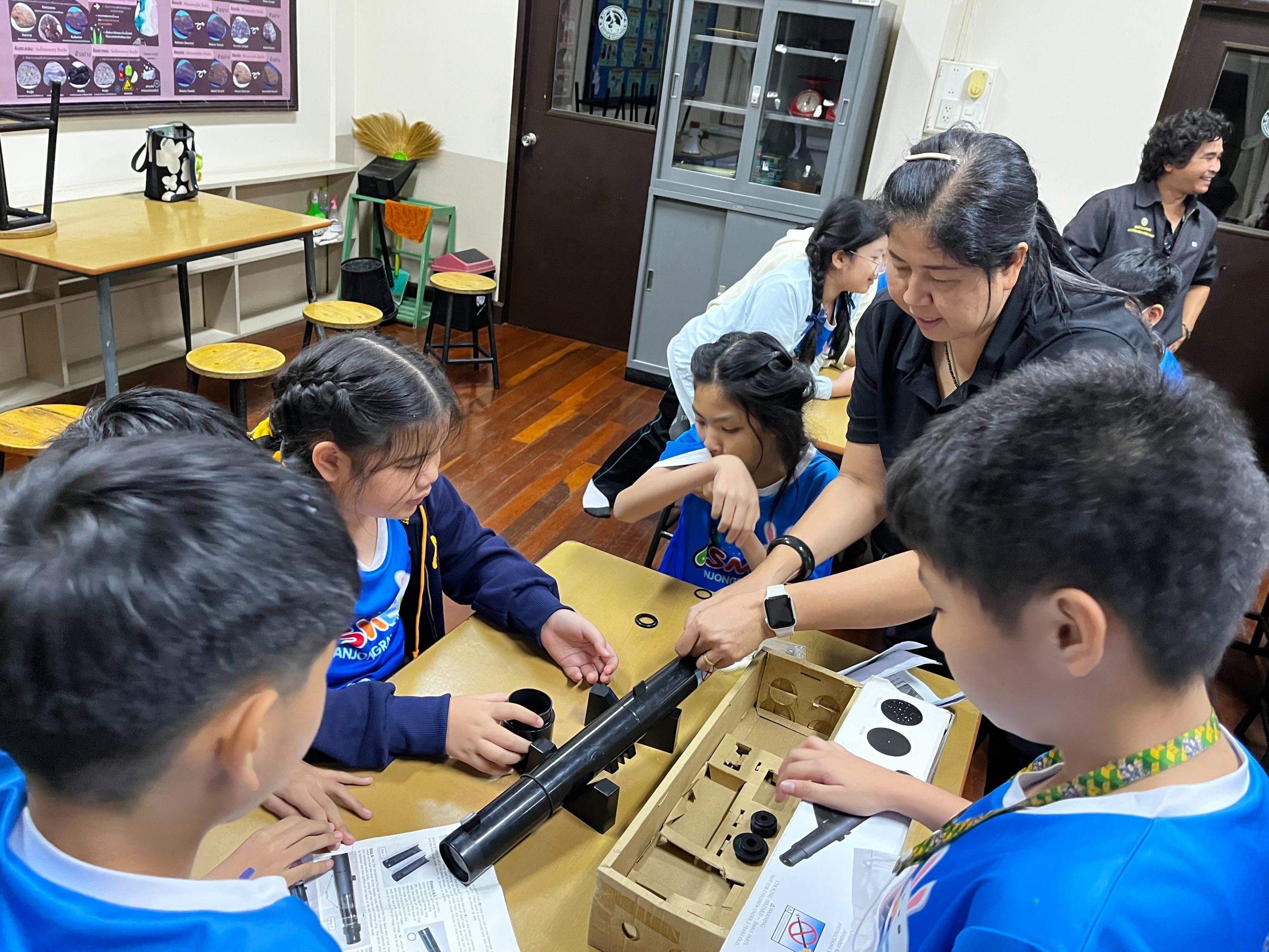 ผศ.ดร.กันตพัฒน์ กิตติอัชวาลย์ อาจารย์ประจำคณะวิทยาศาสตร์และเทคโนโลยี ได้จัดกิจกรรมดูดาวเคราะห์ให้กับนักเรียนระดับชั้นประถมศึกษาปีที่ 5 โรงเรียนบรรจงรัตน์ ภายใต้โครงการ SMEP ที่เป็นความร่วมมือระหว่างคณะวิทยาศาสตร์และเทคโนโลยีร่วมกับโรงเรียนบรรจงรัตน์ เพื่อให้นักเรียนระดับชั้นประถมศึกษาปีที่ 5 เป็นส่วนหนึ่งของการเรียนรู้ในหน่วย ระบบสุริยะ ได้สัมผัสและเรียนรู้เกี่ยวกับดาวเคราะห์ในระบบสุริยะด้วยประสบการณ์ตรง ให้นักเรียนสามารถระบุและสังเกต ดาวเคราะห์ บางดวงที่มองเห็นได้ในท้องฟ้ายามค่ำคืน เข้าใจความแตกต่างระหว่าง ดาวเคราะห์ (ที่สะท้อนแสงจากดวงอาทิตย์) กับ ดาวฤกษ์ (ที่ปล่อยแสงสว่างในตัวเอง) สร้างความสนใจและความเข้าใจเบื้องต้นเกี่ยวกับ ระบบสุริยะ และตำแหน่งของดาวเคราะห์