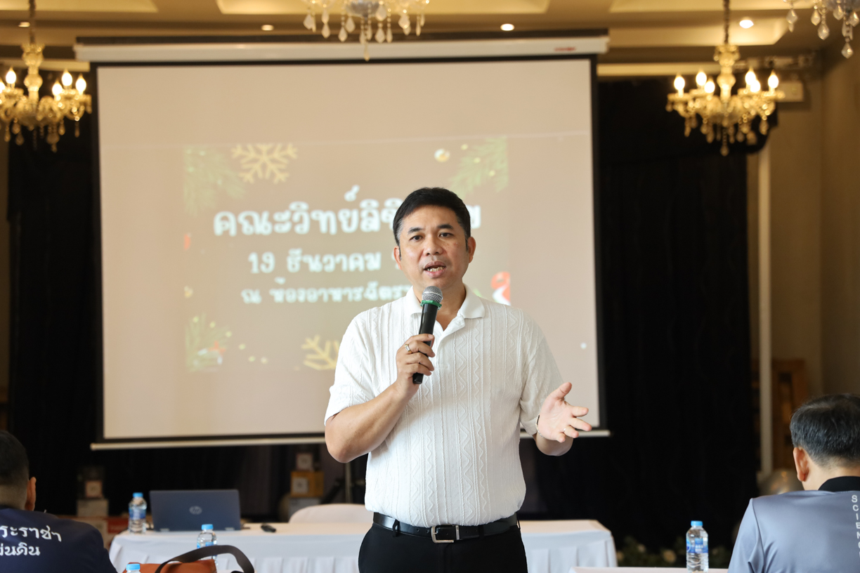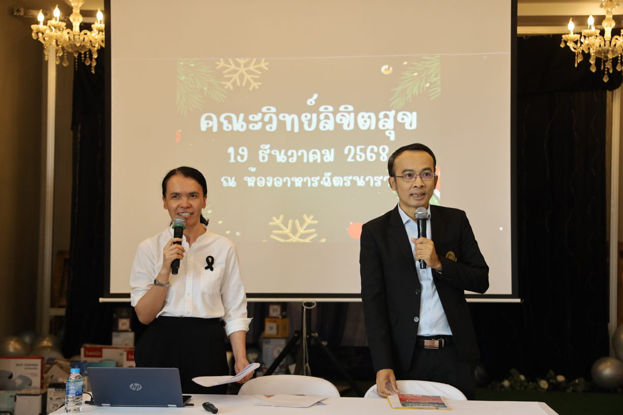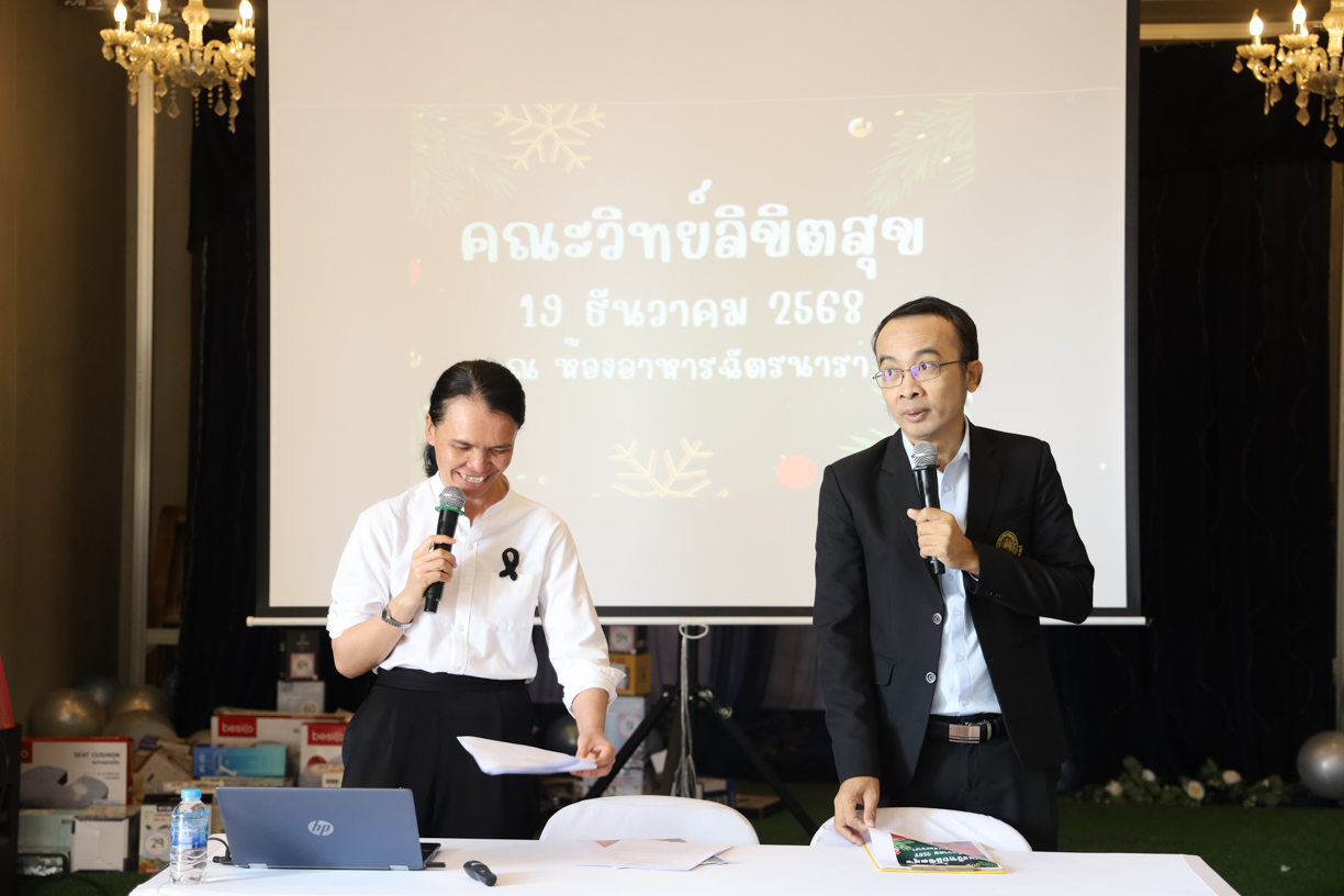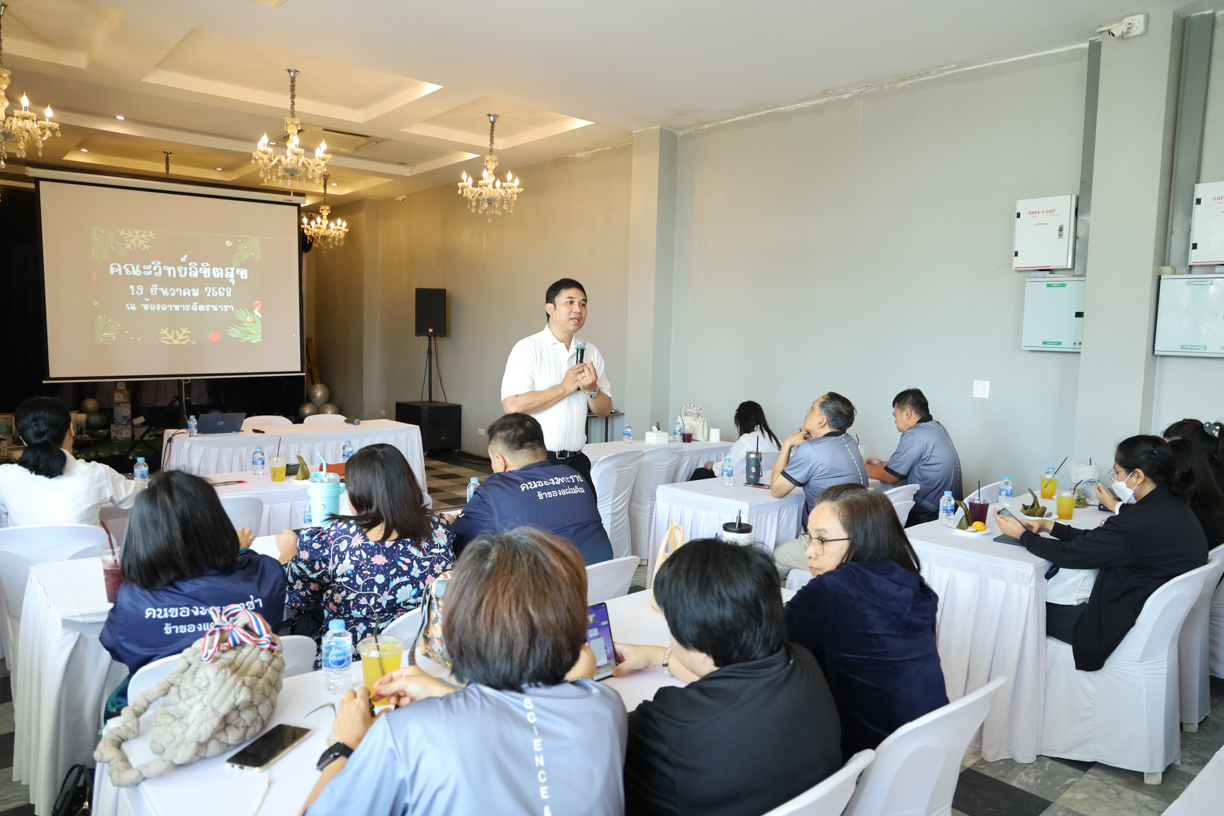 อ.ดร.ศตพล มุ่งค้ำกลาง คณบดีคณะวิทยาศาสตร์และเทคโนโลยี ได้ให้เกียรติเป็นประธานเปิดโครงการ “คณะวิทย์ลิขิตสุข Happy Work Place 2568” ณ ร้านอาหารฉัตรนารา โดยมีคณาจารย์และบุคลากรคณะวิทยาศาสตร์และเทคโนโลยีเข้าร่วมกิจกรรมอย่างพร้อมเพียงกัน วัตถุประสงค์ของการจัดกิจกรรมในครั้งนี้ เพื่อเป็นการสร้างขวัญและกำลังใจให้แก่คณาจารย์และบุคลากร ที่ได้ทุ่มเทแรงกายแรงใจในการปฏิบัติงานตลอดปีที่ผ่านมา โดยทางคณะผู้บริหารให้ความสำคัญกับการสร้างบรรยากาศการทำงานที่มีความสุข และเสริมสร้างความร่วมมือร่วมใจภายในองค์กร พร้อมทั้งมอบของที่ระลึกให้กับบุคลากรที่เกษียณอายุราชการ อีกทั้งบุคลากรที่ได้รับพระราชทานเครื่องราชอิสริยาภรณ์ และ ได้รับตำแหน่งทางวิชาการระดับ “ผู้ช่วยศาสตราจารย์” มีการจัดกิจกรรมจับฉลากมอบรางวัลพิเศษมากมาย เพื่อเป็นการมอบความสุขและของขวัญส่งท้ายปี สร้างรอยยิ้มและความตื่นเต้นให้กับบุคลากรที่เข้าร่วมงาน เปิดโอกาสให้บุคลากรจากภาควิชาและหน่วยงานต่างๆ ได้ร่วมรับประทานอาหารและพูดคุย เพื่อกระชับความสัมพันธ์ให้แน่นแฟ้นยิ่งขึ้น