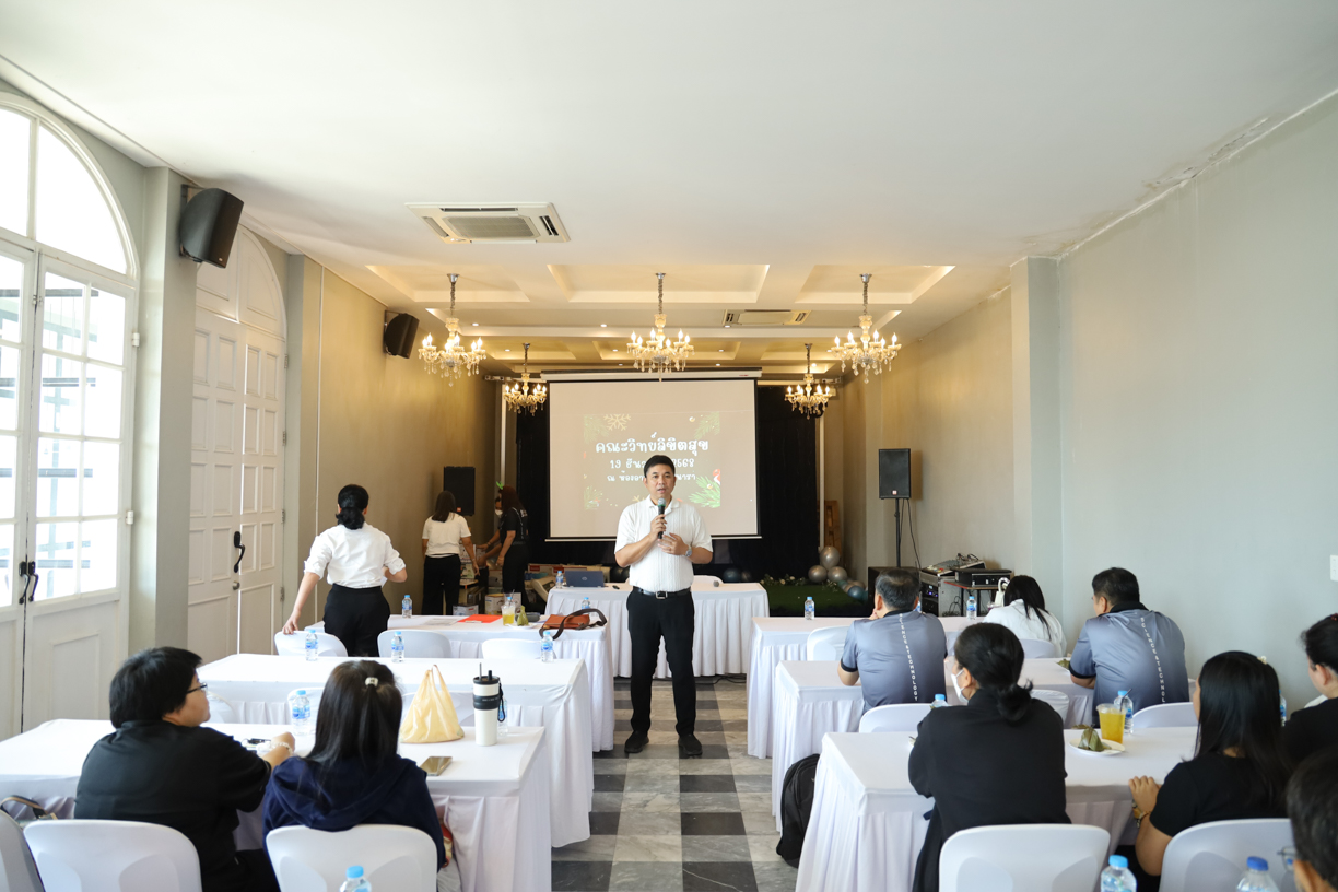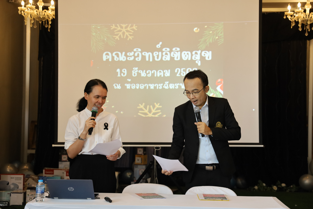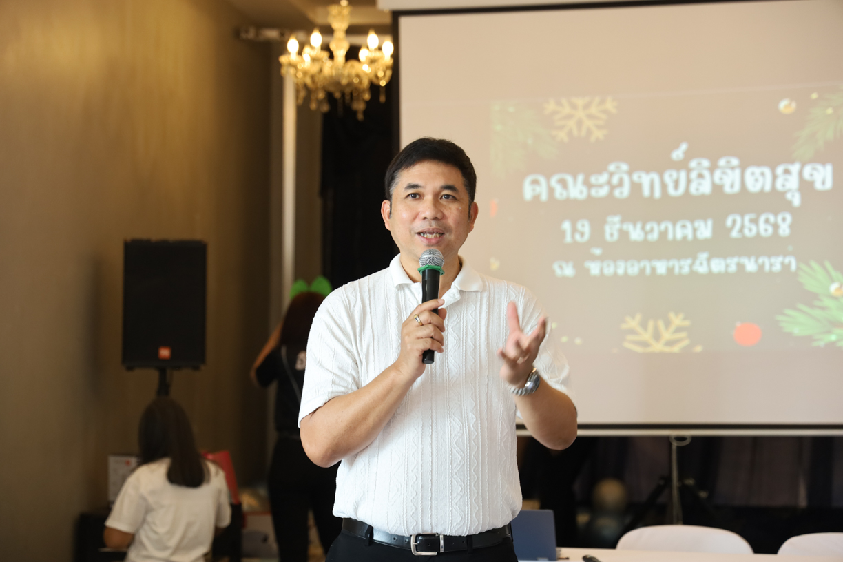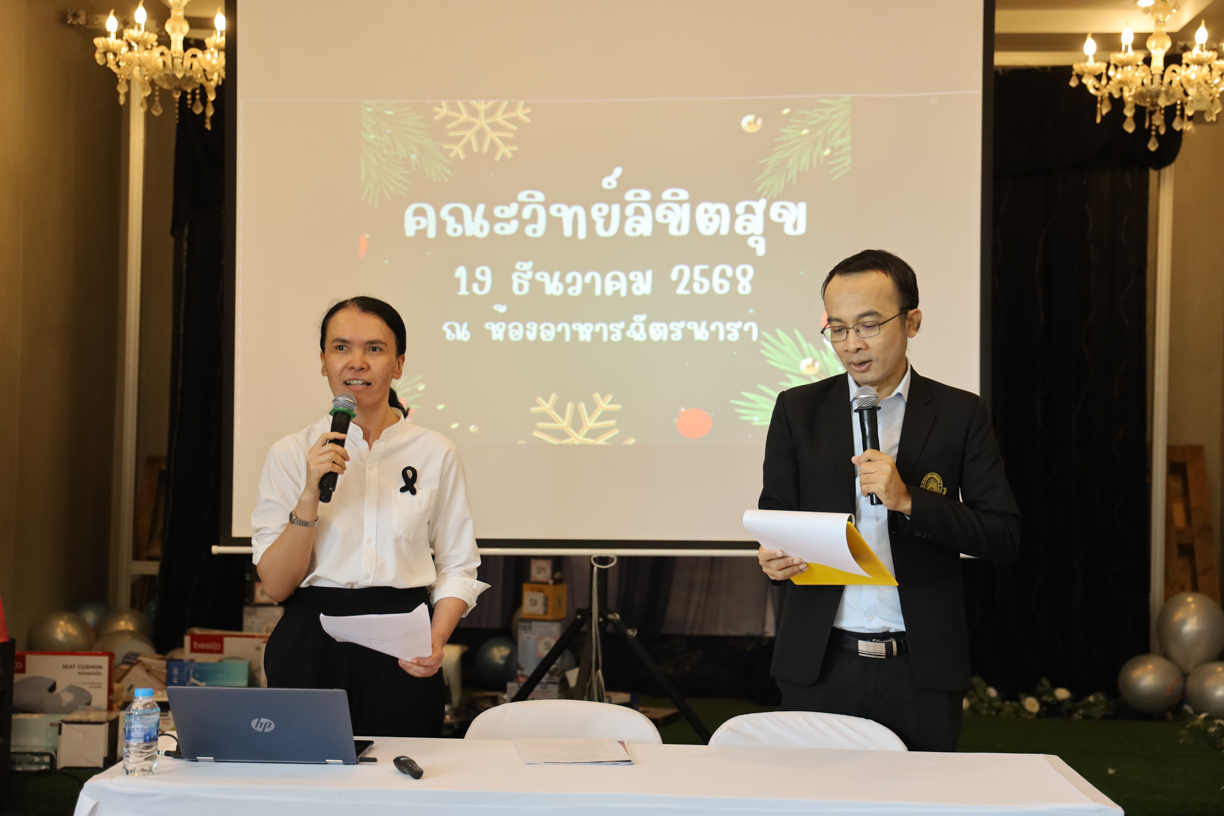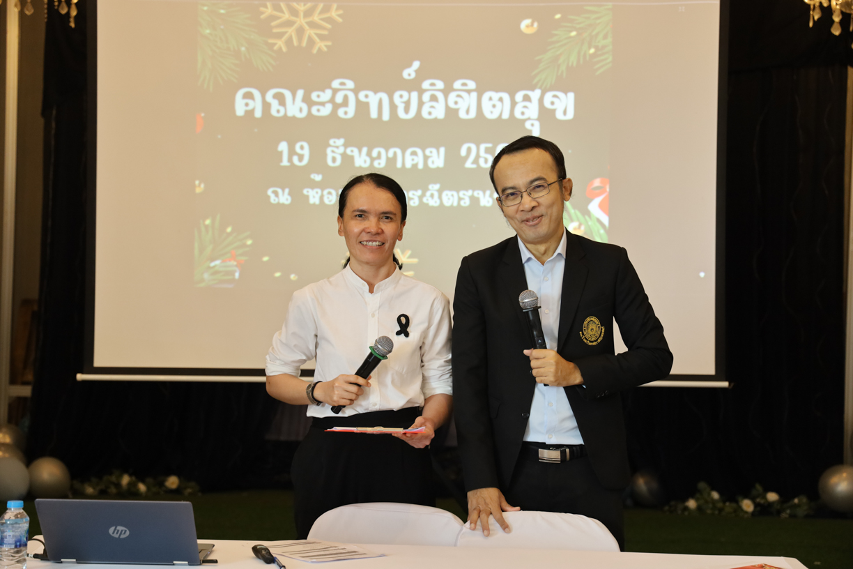 อ.ดร.ศตพล มุ่งค้ำกลาง คณบดีคณะวิทยาศาสตร์และเทคโนโลยี ได้ให้เกียรติเป็นประธานเปิดโครงการ “คณะวิทย์ลิขิตสุข Happy Work Place 2568” ณ ร้านอาหารฉัตรนารา โดยมีคณาจารย์และบุคลากรคณะวิทยาศาสตร์และเทคโนโลยีเข้าร่วมกิจกรรมอย่างพร้อมเพียงกัน วัตถุประสงค์ของการจัดกิจกรรมในครั้งนี้ เพื่อเป็นการสร้างขวัญและกำลังใจให้แก่คณาจารย์และบุคลากร ที่ได้ทุ่มเทแรงกายแรงใจในการปฏิบัติงานตลอดปีที่ผ่านมา โดยทางคณะผู้บริหารให้ความสำคัญกับการสร้างบรรยากาศการทำงานที่มีความสุข และเสริมสร้างความร่วมมือร่วมใจภายในองค์กร พร้อมทั้งมอบของที่ระลึกให้กับบุคลากรที่เกษียณอายุราชการ อีกทั้งบุคลากรที่ได้รับพระราชทานเครื่องราชอิสริยาภรณ์ และ ได้รับตำแหน่งทางวิชาการระดับ “ผู้ช่วยศาสตราจารย์” มีการจัดกิจกรรมจับฉลากมอบรางวัลพิเศษมากมาย เพื่อเป็นการมอบความสุขและของขวัญส่งท้ายปี สร้างรอยยิ้มและความตื่นเต้นให้กับบุคลากรที่เข้าร่วมงาน เปิดโอกาสให้บุคลากรจากภาควิชาและหน่วยงานต่างๆ ได้ร่วมรับประทานอาหารและพูดคุย เพื่อกระชับความสัมพันธ์ให้แน่นแฟ้นยิ่งขึ้น