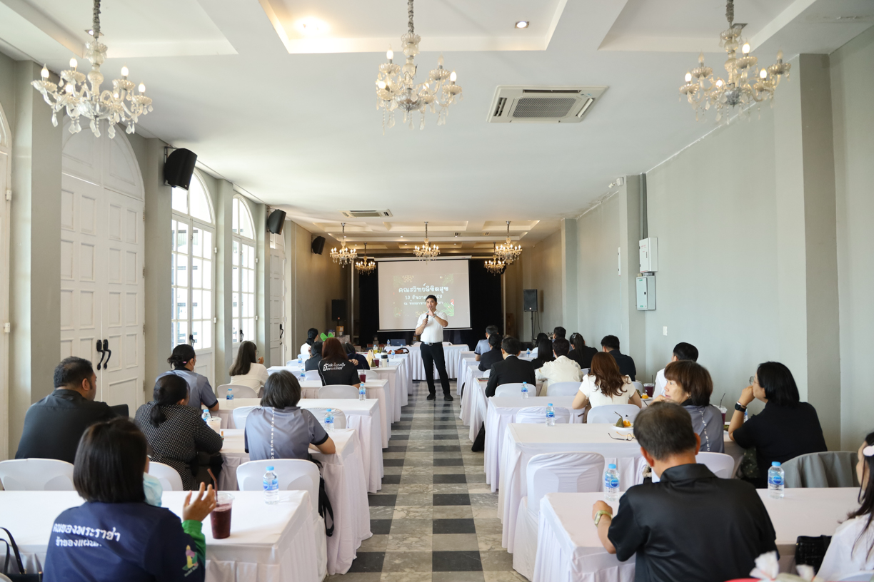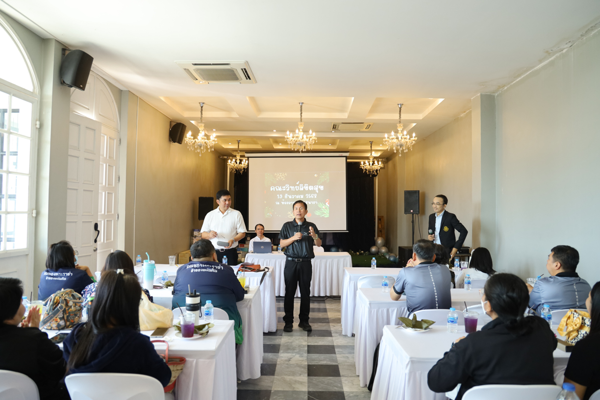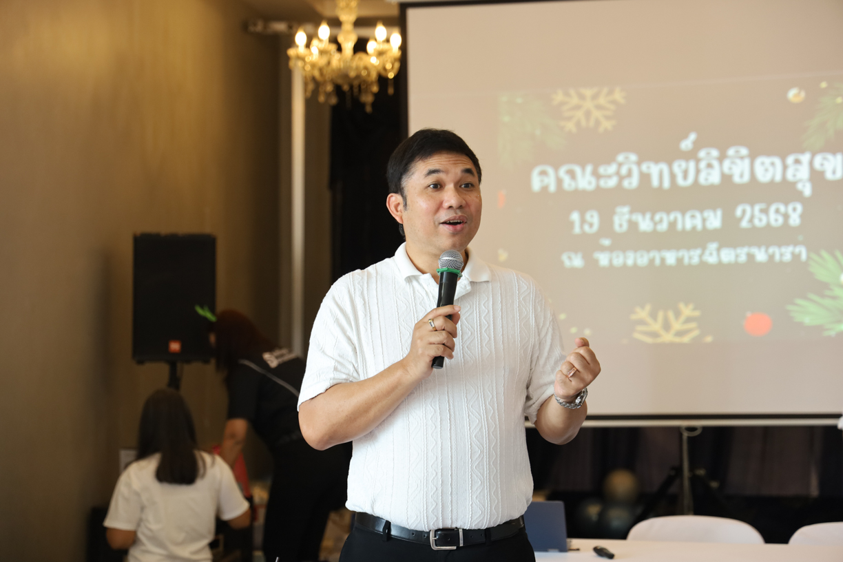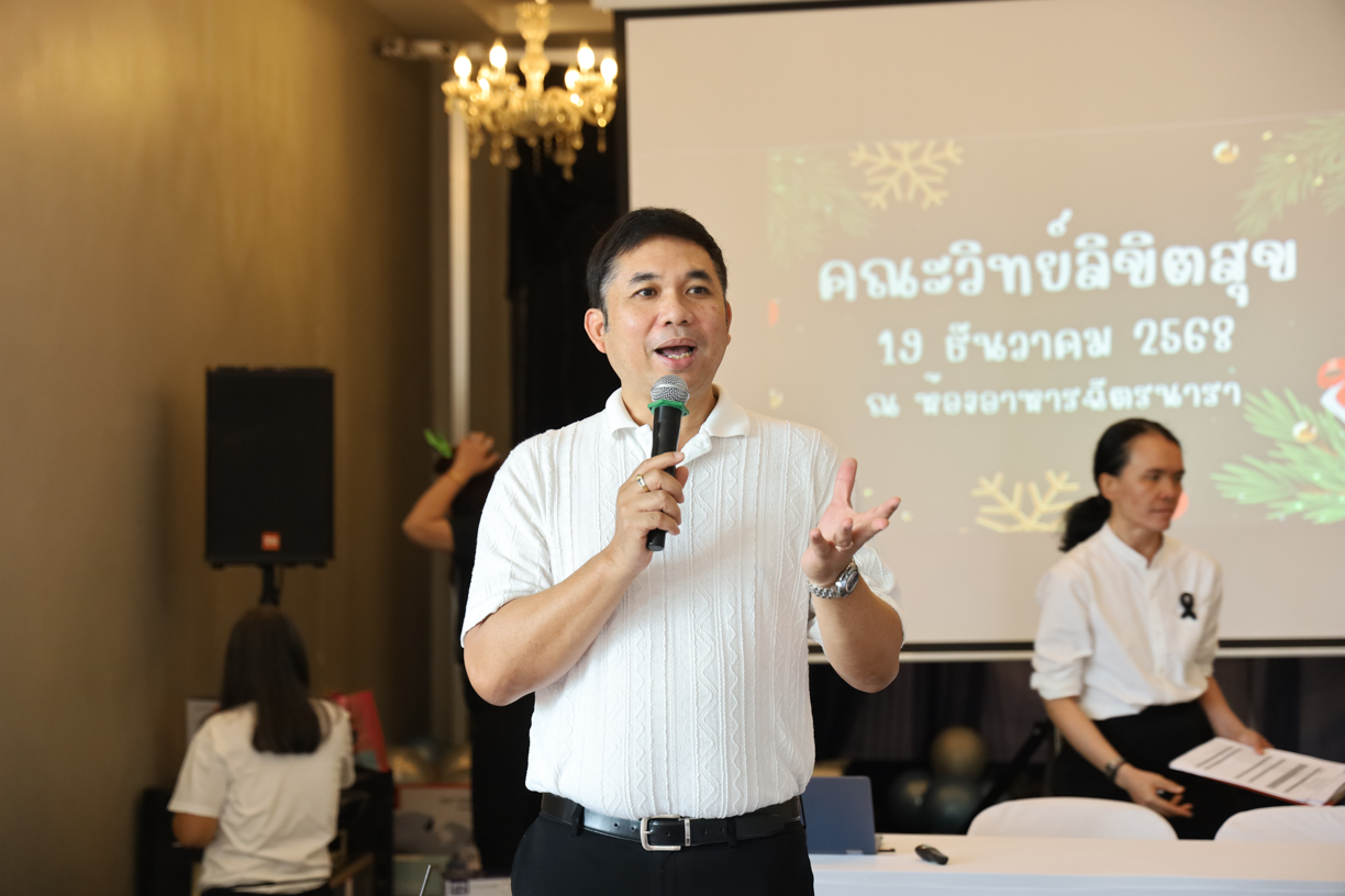 อ.ดร.ศตพล มุ่งค้ำกลาง คณบดีคณะวิทยาศาสตร์และเทคโนโลยี ได้ให้เกียรติเป็นประธานเปิดโครงการ “คณะวิทย์ลิขิตสุข Happy Work Place 2568” ณ ร้านอาหารฉัตรนารา โดยมีคณาจารย์และบุคลากรคณะวิทยาศาสตร์และเทคโนโลยีเข้าร่วมกิจกรรมอย่างพร้อมเพียงกัน วัตถุประสงค์ของการจัดกิจกรรมในครั้งนี้ เพื่อเป็นการสร้างขวัญและกำลังใจให้แก่คณาจารย์และบุคลากร ที่ได้ทุ่มเทแรงกายแรงใจในการปฏิบัติงานตลอดปีที่ผ่านมา โดยทางคณะผู้บริหารให้ความสำคัญกับการสร้างบรรยากาศการทำงานที่มีความสุข และเสริมสร้างความร่วมมือร่วมใจภายในองค์กร พร้อมทั้งมอบของที่ระลึกให้กับบุคลากรที่เกษียณอายุราชการ อีกทั้งบุคลากรที่ได้รับพระราชทานเครื่องราชอิสริยาภรณ์ และ ได้รับตำแหน่งทางวิชาการระดับ “ผู้ช่วยศาสตราจารย์” มีการจัดกิจกรรมจับฉลากมอบรางวัลพิเศษมากมาย เพื่อเป็นการมอบความสุขและของขวัญส่งท้ายปี สร้างรอยยิ้มและความตื่นเต้นให้กับบุคลากรที่เข้าร่วมงาน เปิดโอกาสให้บุคลากรจากภาควิชาและหน่วยงานต่างๆ ได้ร่วมรับประทานอาหารและพูดคุย เพื่อกระชับความสัมพันธ์ให้แน่นแฟ้นยิ่งขึ้น