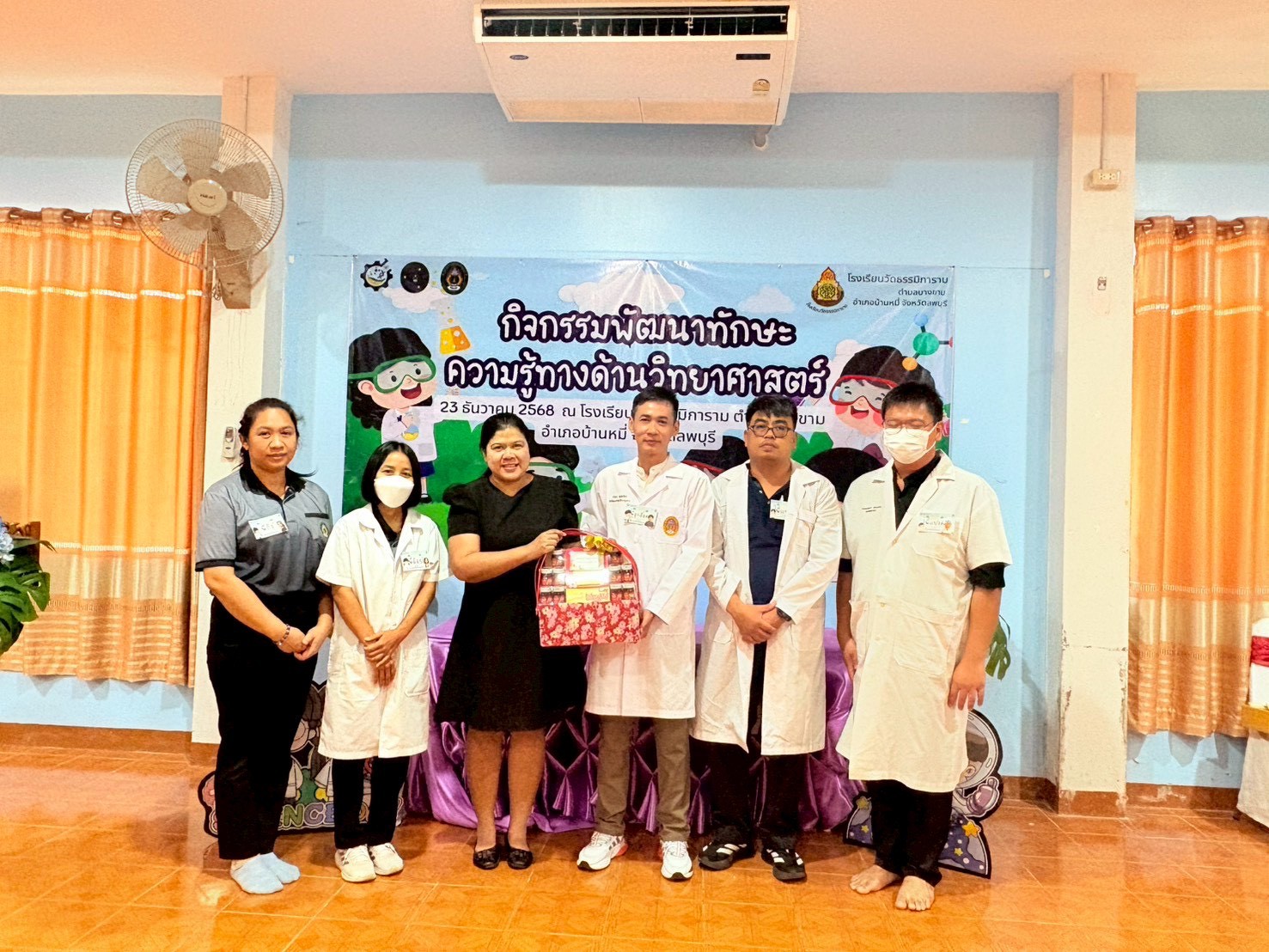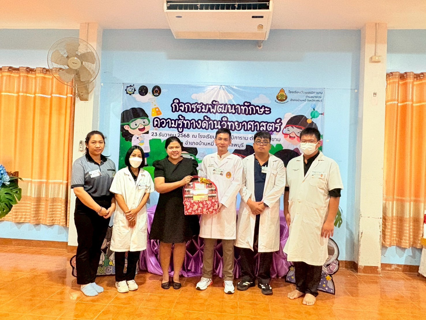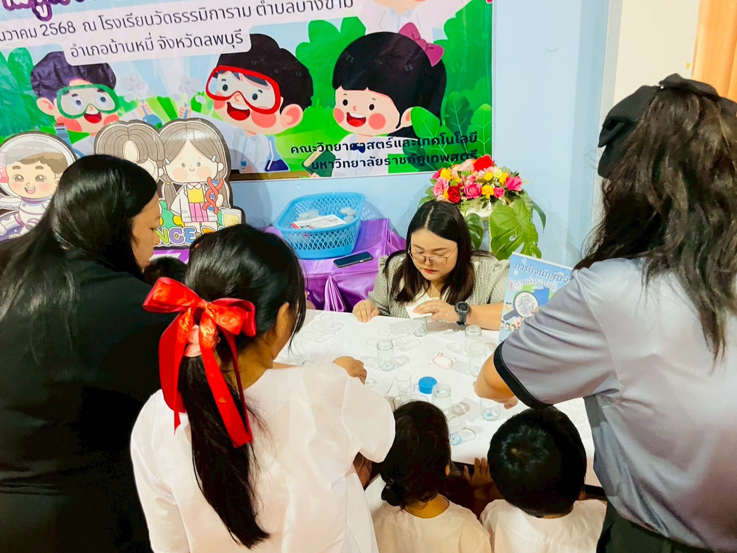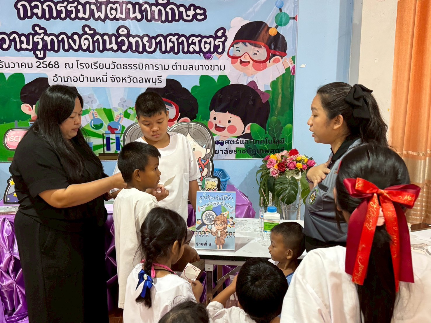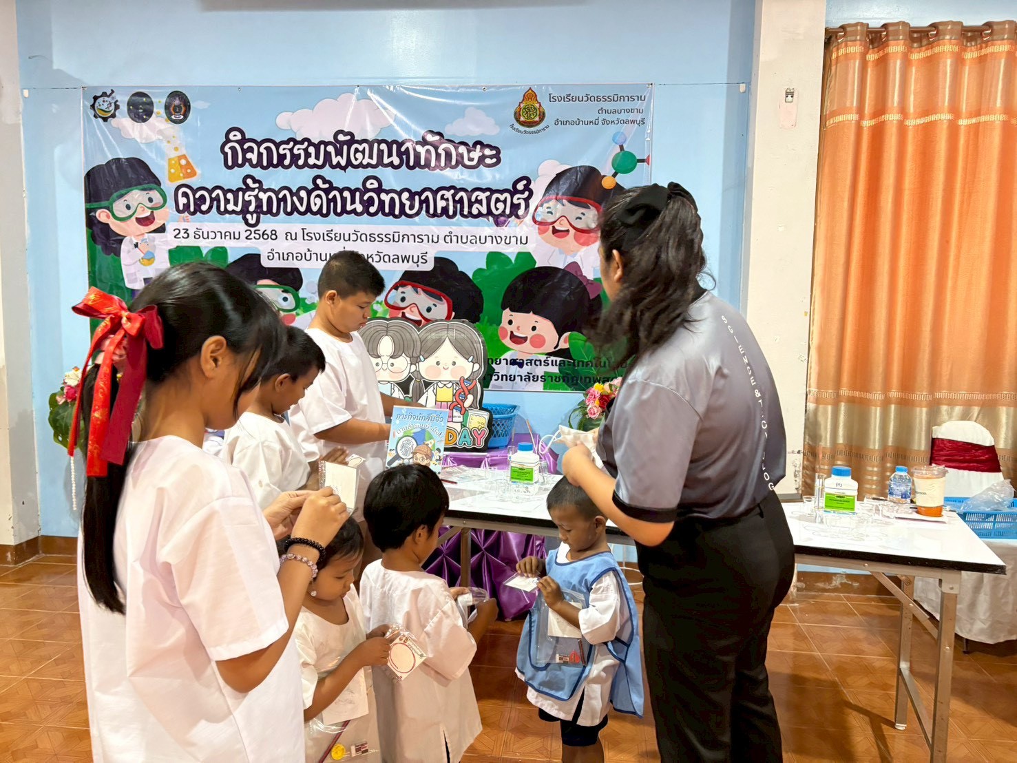 วันที่ 23 ธันวาคม 2568 ส่วนงานห้องปฏิบัติการกลาง คณะวิทยาศาสตร์และเทคโนโลยี มหาวิทยาลัยราชภัฏเทพสตรี ได้เกียรติรับเชิญในการจัดกิจกรรมพัฒนาทักษะความรู้ทางด้านวิทยาศาสตร์ ณ โรงเรียนวัดธรรมิการาม ตำบลบางขาม อำเภอบ้านหมี่ จังหวัดลพบุรี ซึ่งทางส่วนงานห้องปฏิบัติการได้ออกแบบกิจกรรมการเรียนรู้ทางด้านวิทยาศาสตร์ออกเป็น 5 ฐานการเรียนรู้ ได้แก่