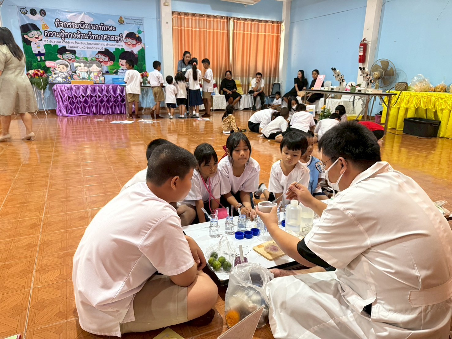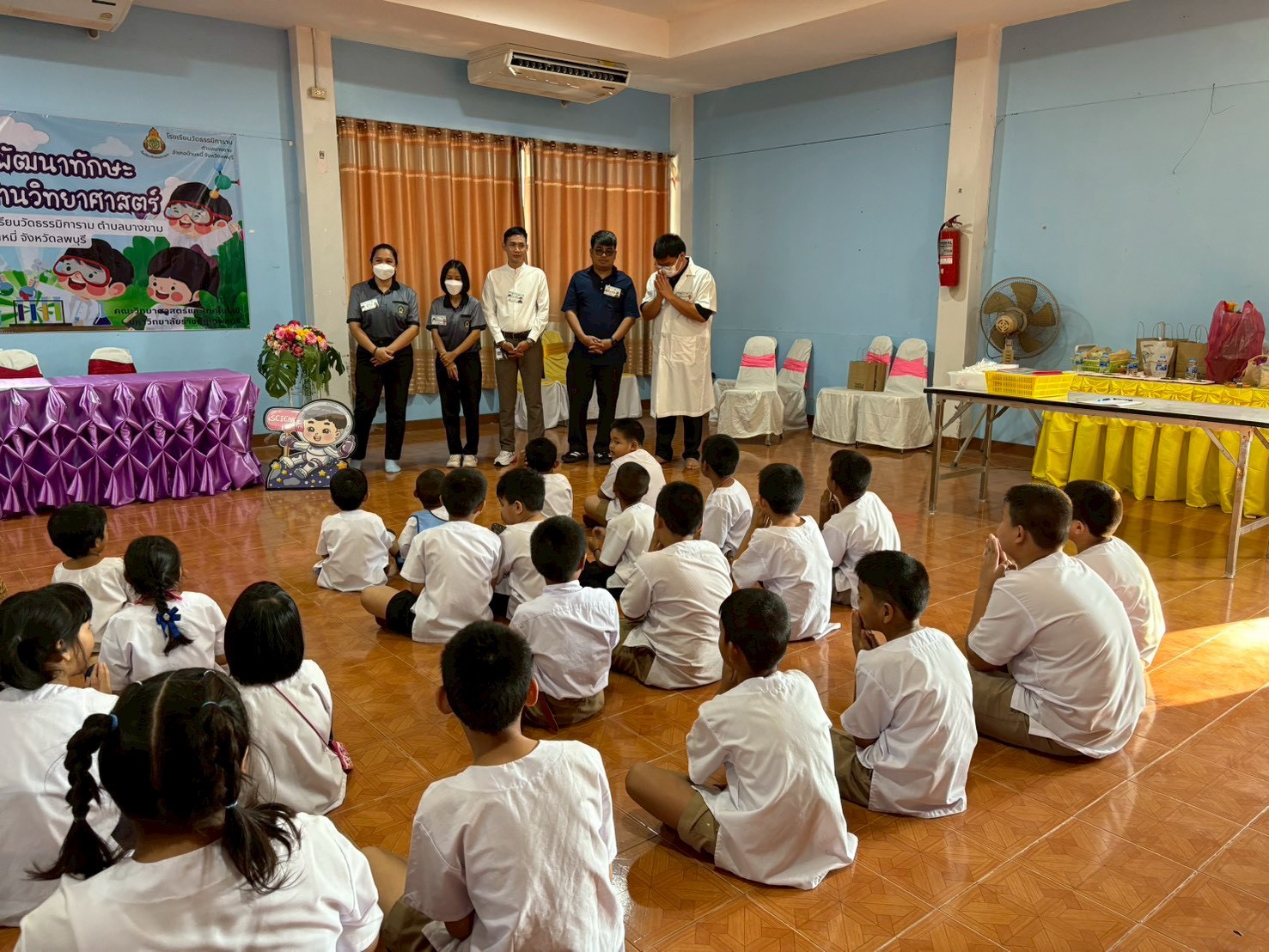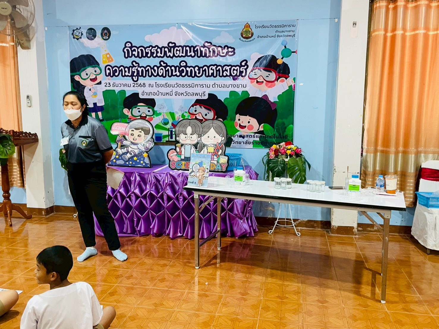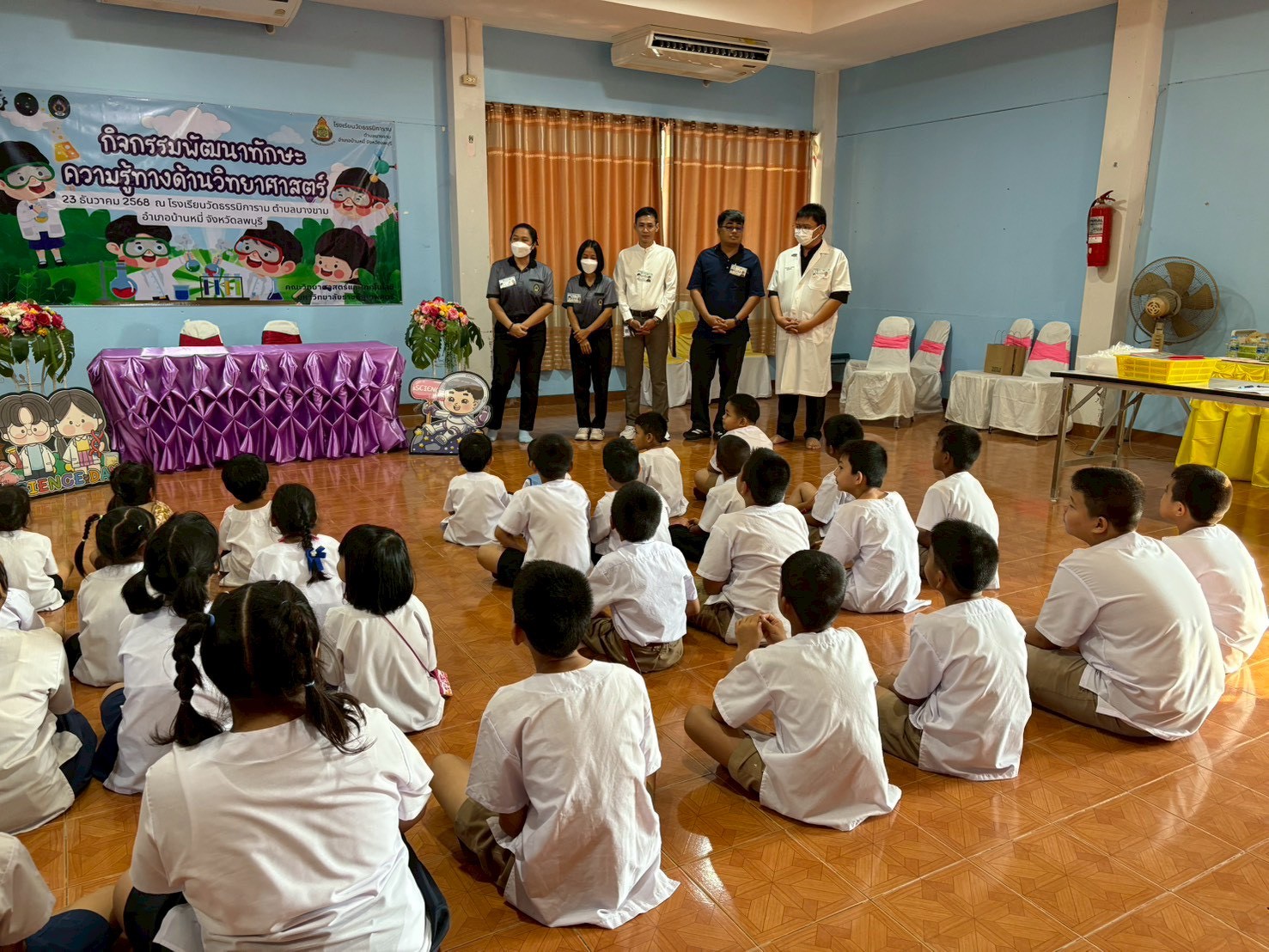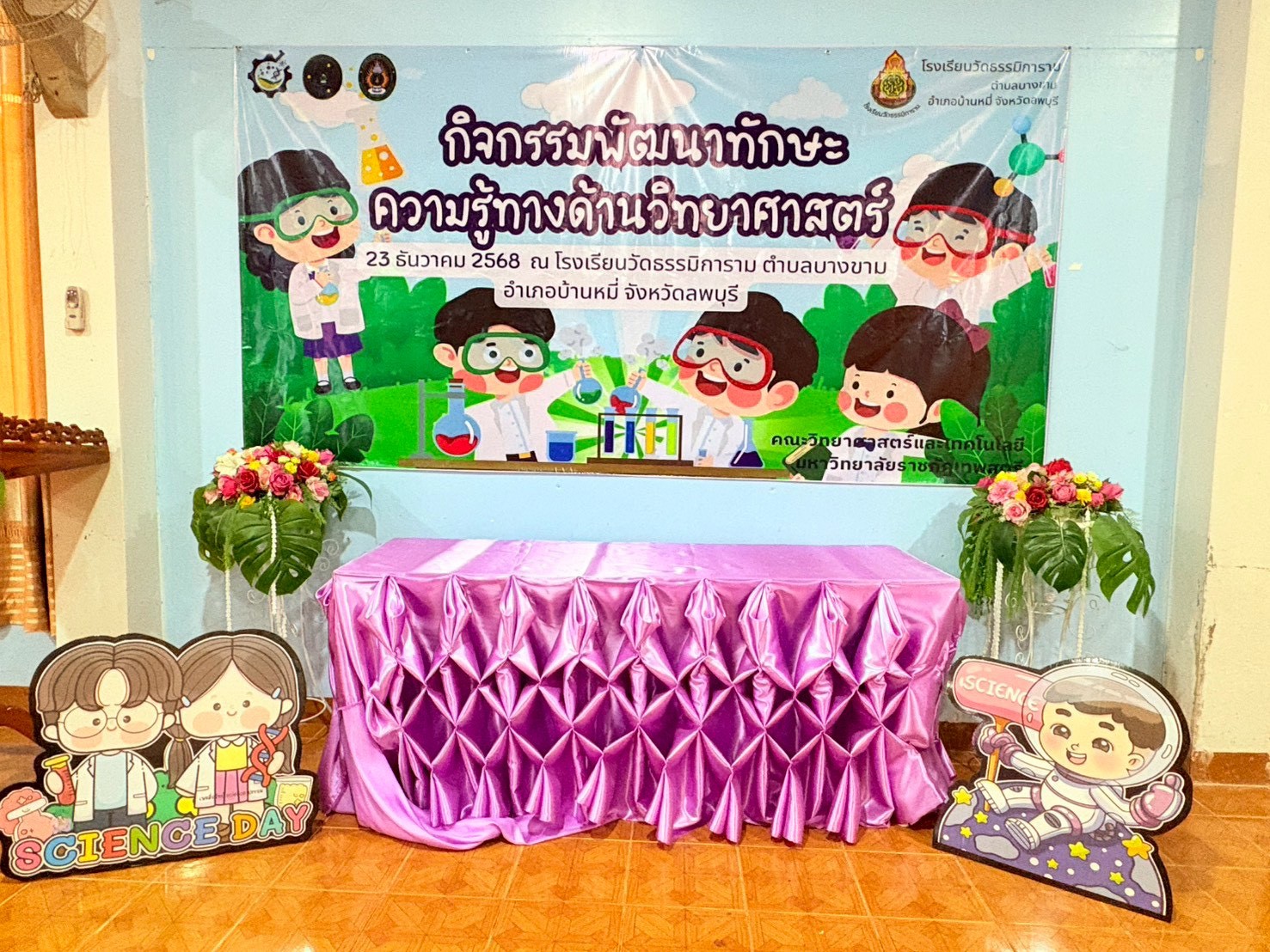 วันที่ 23 ธันวาคม 2568 ส่วนงานห้องปฏิบัติการกลาง คณะวิทยาศาสตร์และเทคโนโลยี มหาวิทยาลัยราชภัฏเทพสตรี ได้เกียรติรับเชิญในการจัดกิจกรรมพัฒนาทักษะความรู้ทางด้านวิทยาศาสตร์ ณ โรงเรียนวัดธรรมิการาม ตำบลบางขาม อำเภอบ้านหมี่ จังหวัดลพบุรี ซึ่งทางส่วนงานห้องปฏิบัติการได้ออกแบบกิจกรรมการเรียนรู้ทางด้านวิทยาศาสตร์ออกเป็น 5 ฐานการเรียนรู้ ได้แก่