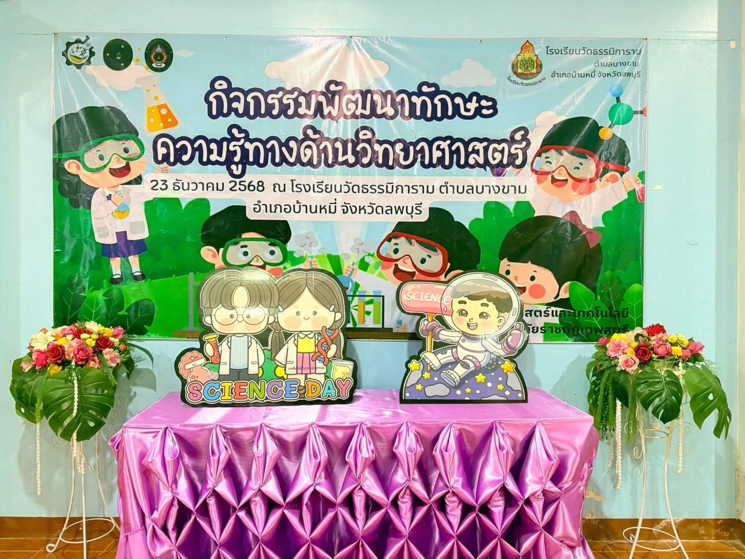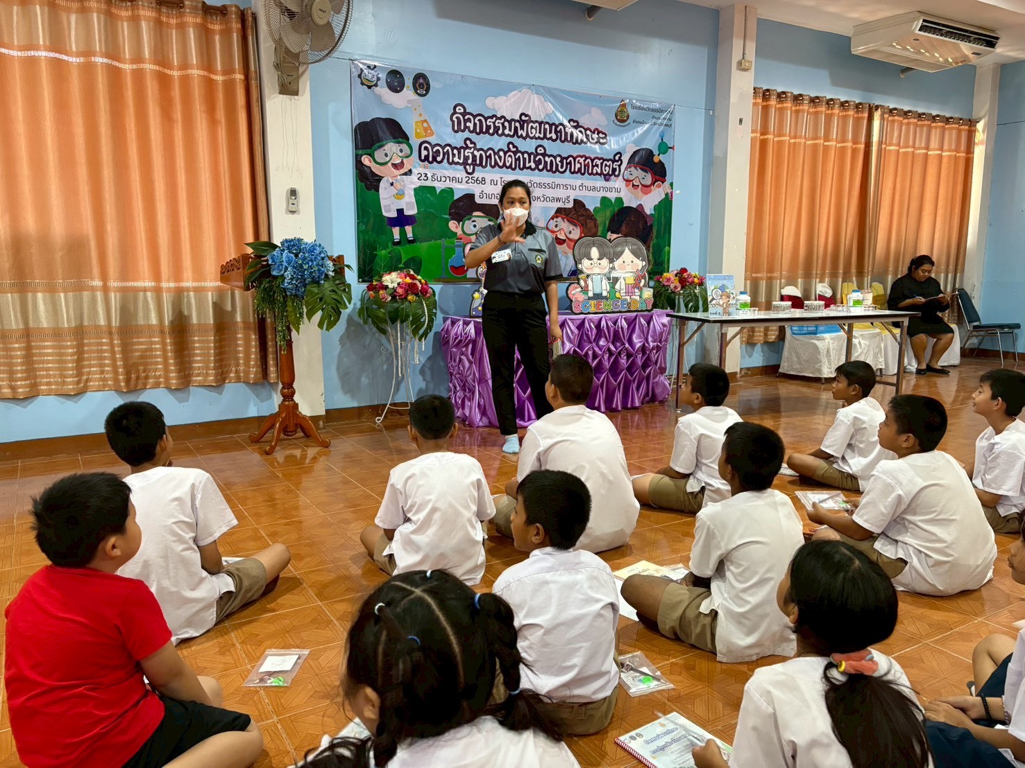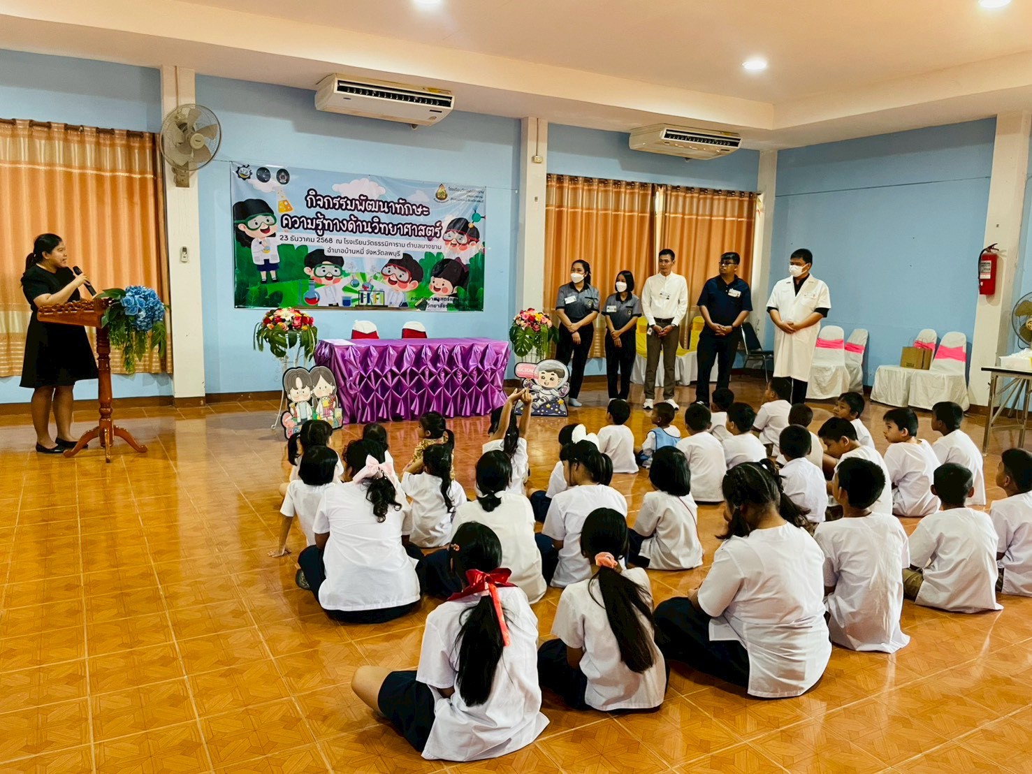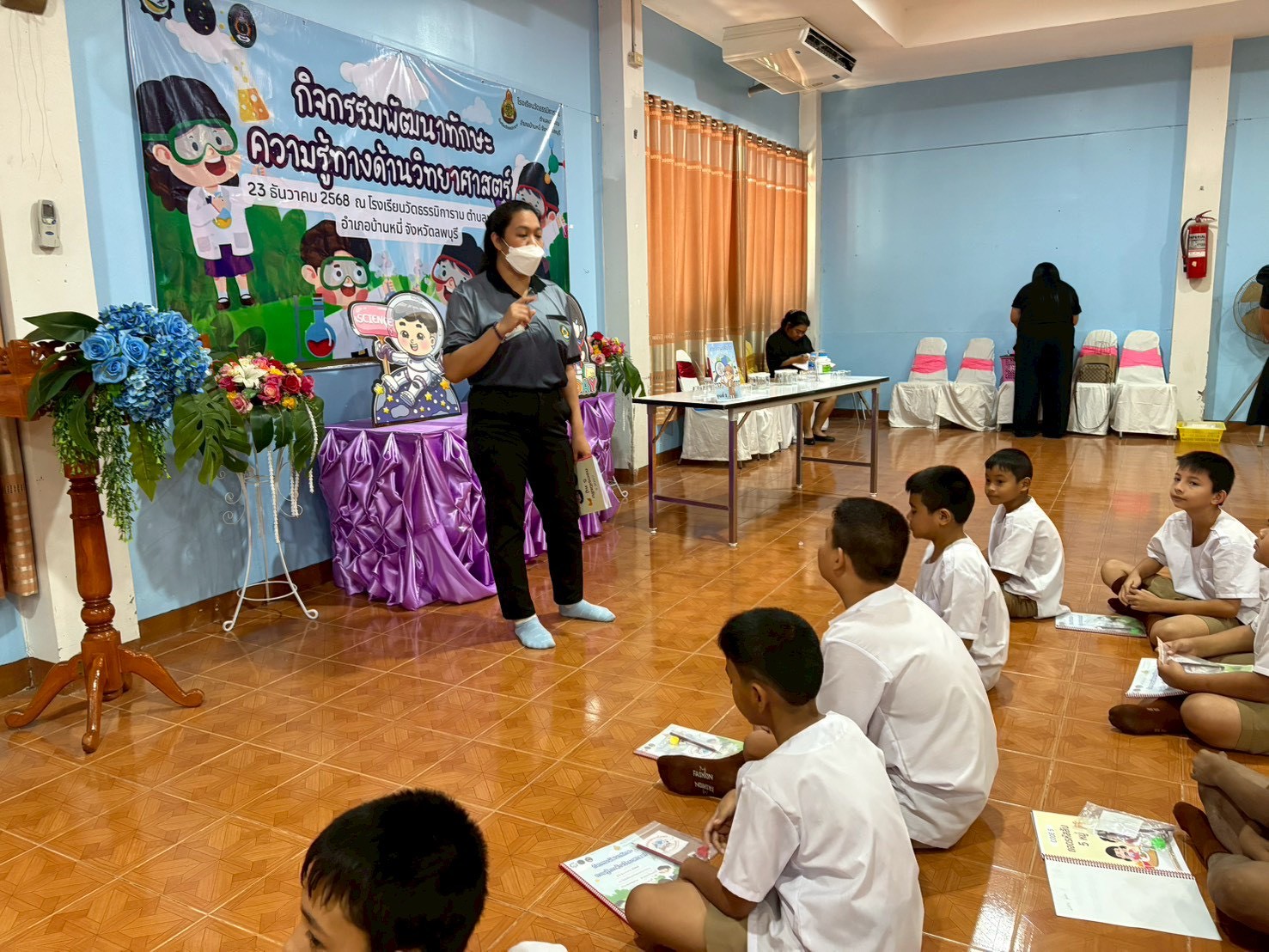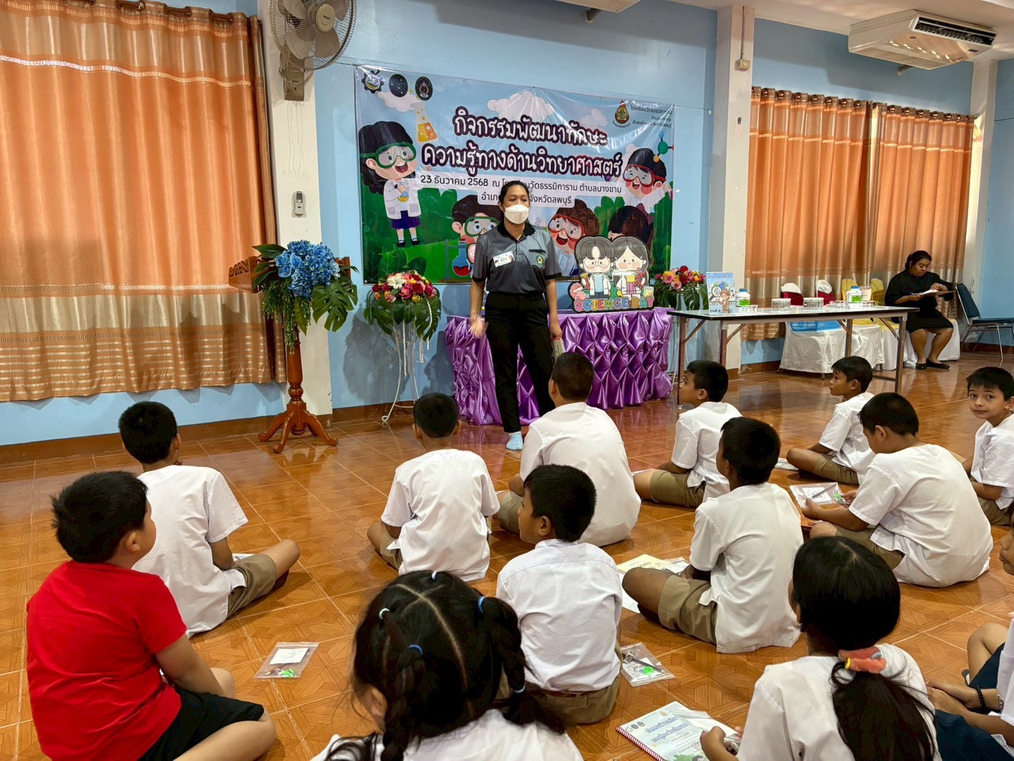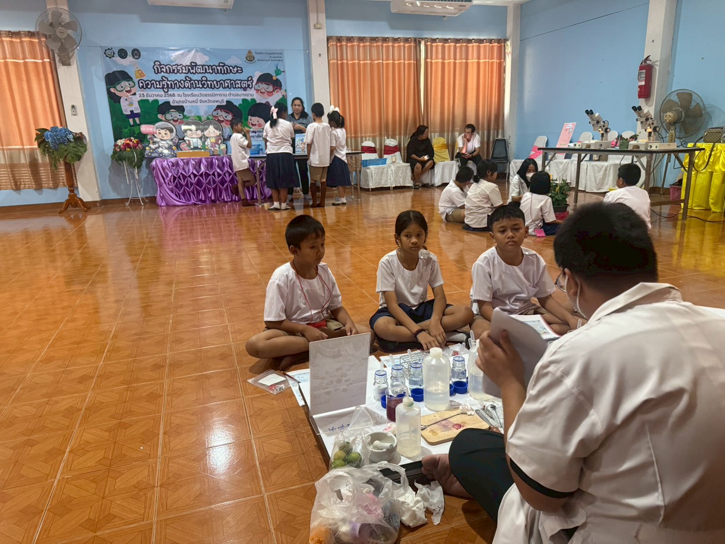 วันที่ 23 ธันวาคม 2568 ส่วนงานห้องปฏิบัติการกลาง คณะวิทยาศาสตร์และเทคโนโลยี มหาวิทยาลัยราชภัฏเทพสตรี ได้เกียรติรับเชิญในการจัดกิจกรรมพัฒนาทักษะความรู้ทางด้านวิทยาศาสตร์ ณ โรงเรียนวัดธรรมิการาม ตำบลบางขาม อำเภอบ้านหมี่ จังหวัดลพบุรี ซึ่งทางส่วนงานห้องปฏิบัติการได้ออกแบบกิจกรรมการเรียนรู้ทางด้านวิทยาศาสตร์ออกเป็น 5 ฐานการเรียนรู้ ได้แก่