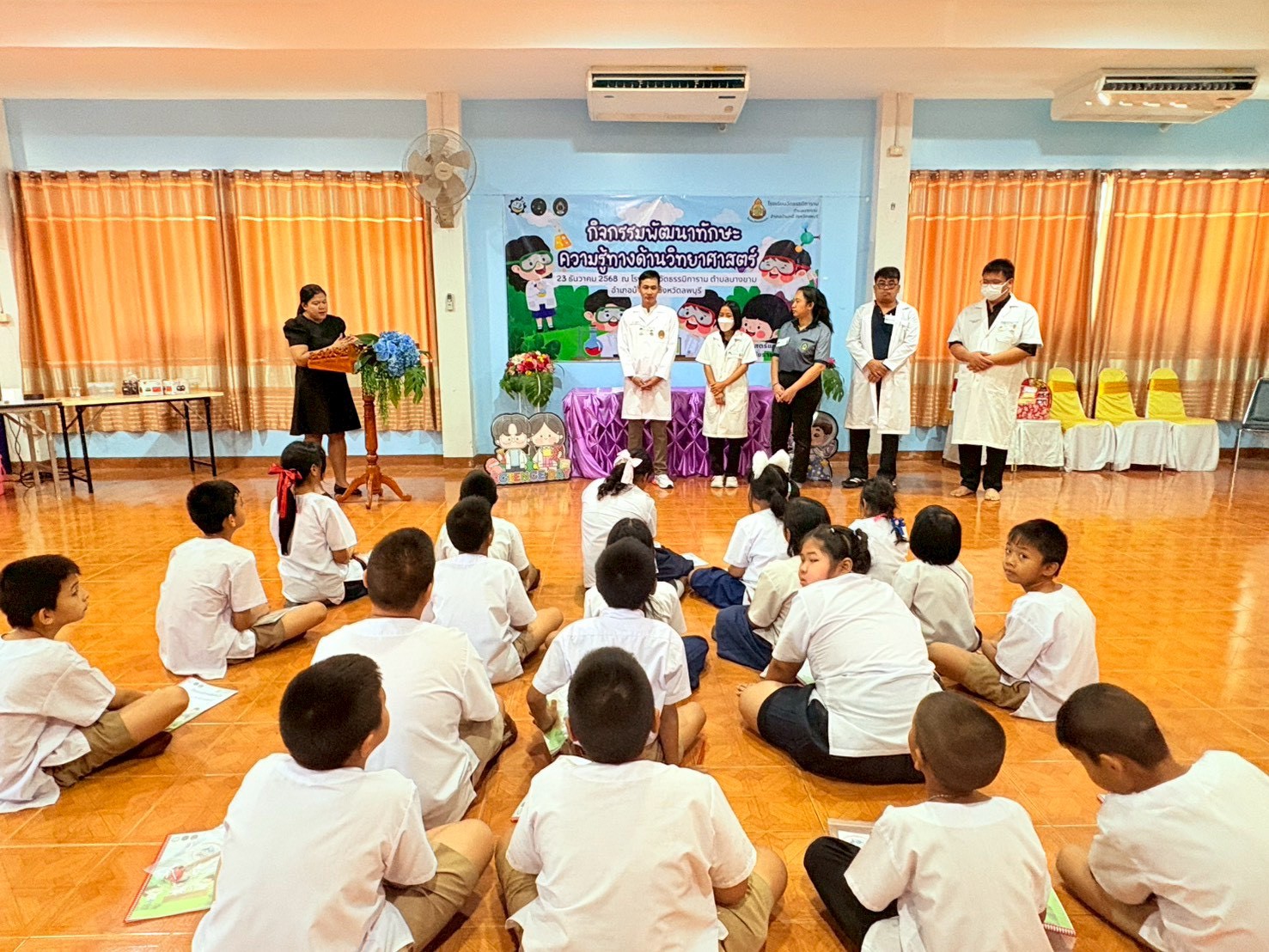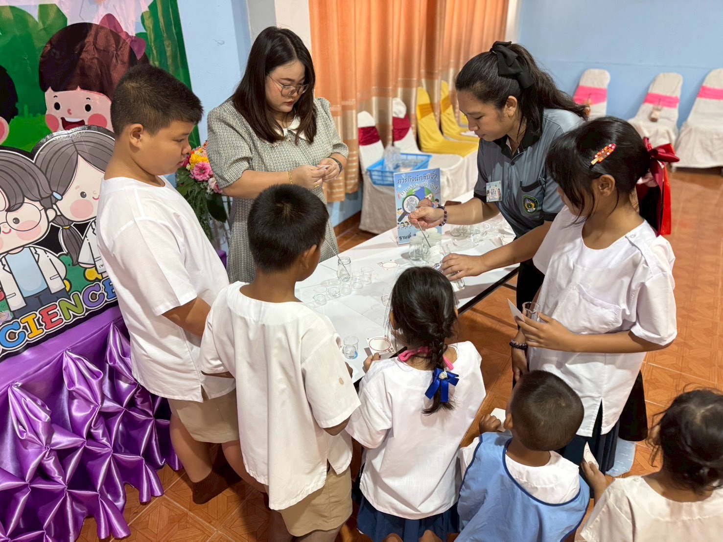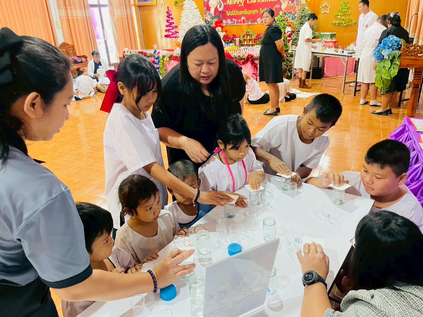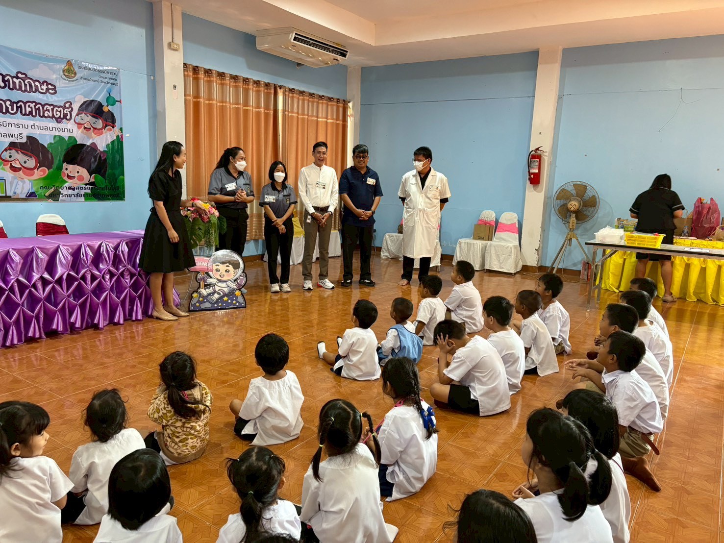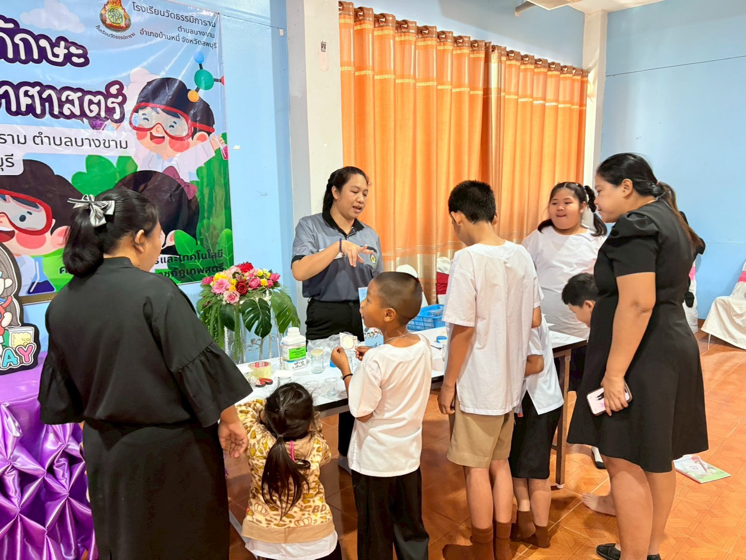 วันที่ 23 ธันวาคม 2568 ส่วนงานห้องปฏิบัติการกลาง คณะวิทยาศาสตร์และเทคโนโลยี มหาวิทยาลัยราชภัฏเทพสตรี ได้เกียรติรับเชิญในการจัดกิจกรรมพัฒนาทักษะความรู้ทางด้านวิทยาศาสตร์ ณ โรงเรียนวัดธรรมิการาม ตำบลบางขาม อำเภอบ้านหมี่ จังหวัดลพบุรี ซึ่งทางส่วนงานห้องปฏิบัติการได้ออกแบบกิจกรรมการเรียนรู้ทางด้านวิทยาศาสตร์ออกเป็น 5 ฐานการเรียนรู้ ได้แก่