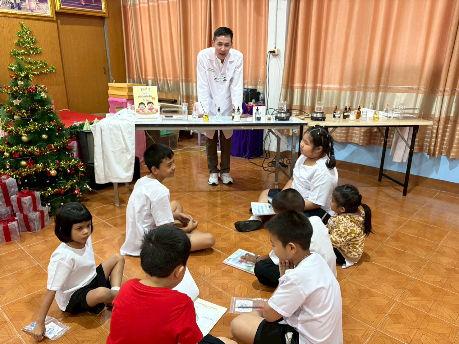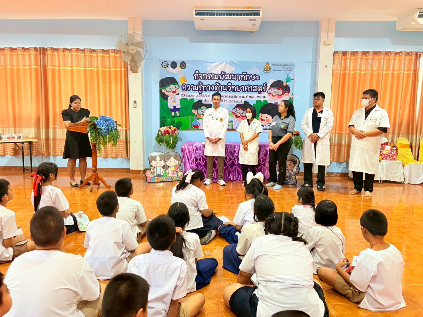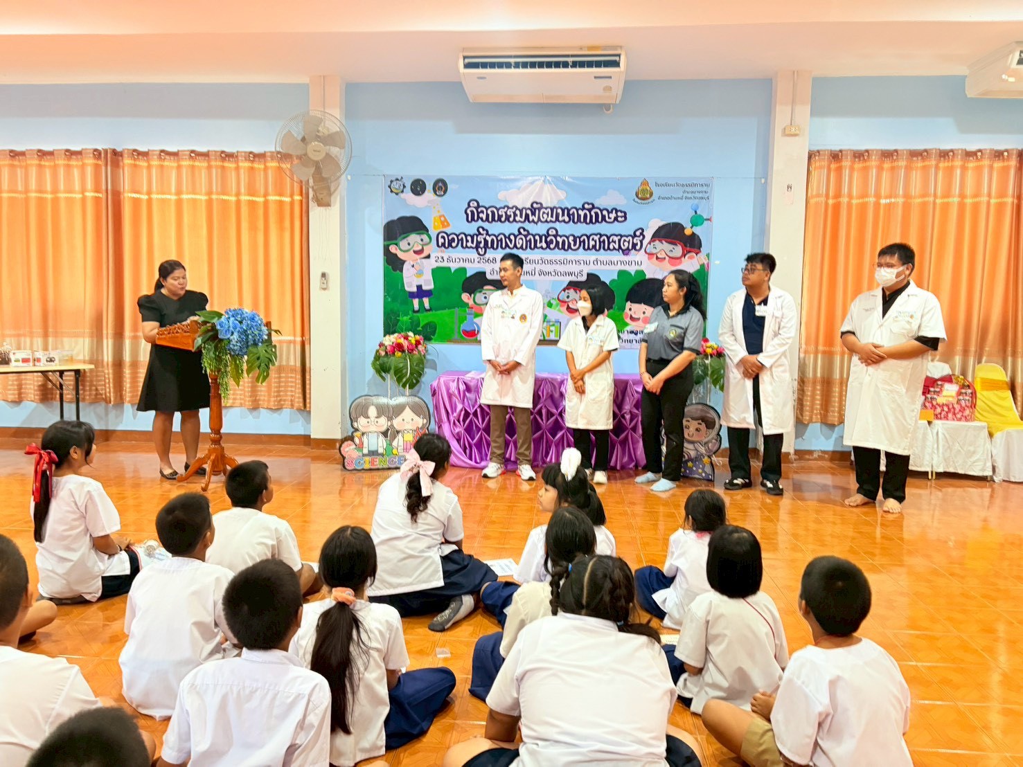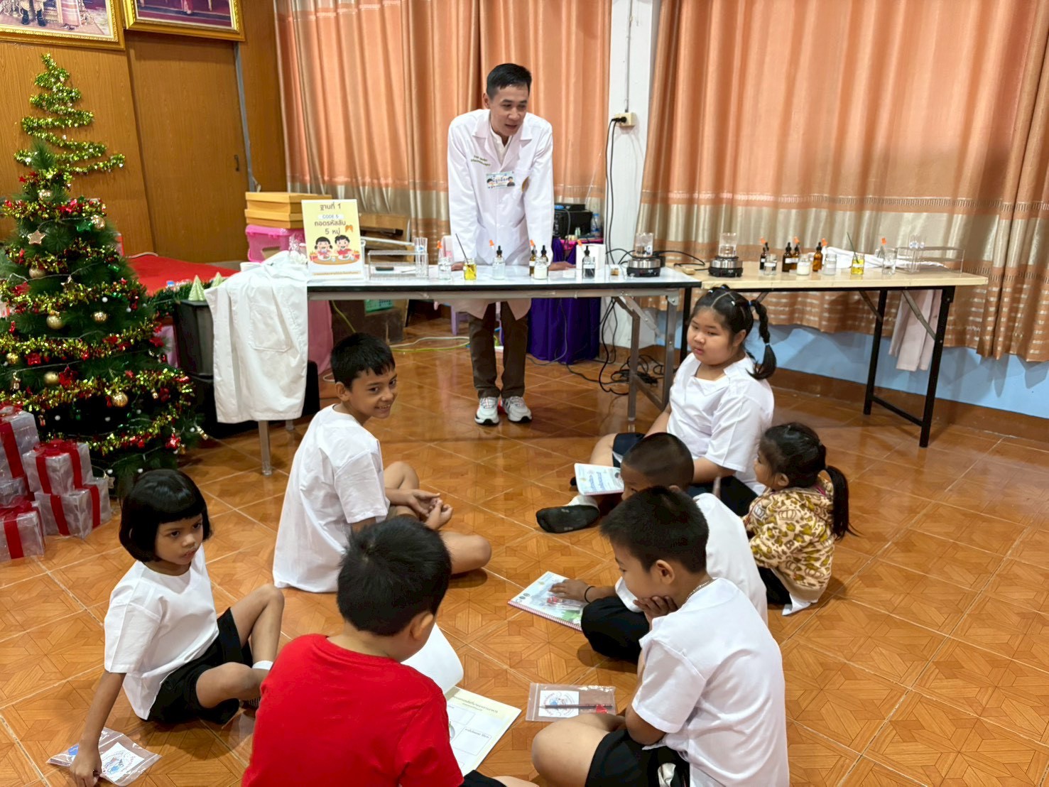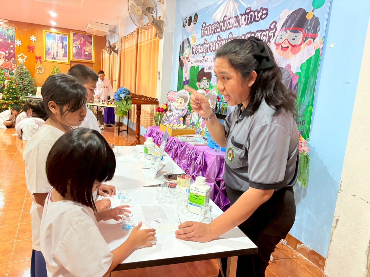 วันที่ 23 ธันวาคม 2568 ส่วนงานห้องปฏิบัติการกลาง คณะวิทยาศาสตร์และเทคโนโลยี มหาวิทยาลัยราชภัฏเทพสตรี ได้เกียรติรับเชิญในการจัดกิจกรรมพัฒนาทักษะความรู้ทางด้านวิทยาศาสตร์ ณ โรงเรียนวัดธรรมิการาม ตำบลบางขาม อำเภอบ้านหมี่ จังหวัดลพบุรี ซึ่งทางส่วนงานห้องปฏิบัติการได้ออกแบบกิจกรรมการเรียนรู้ทางด้านวิทยาศาสตร์ออกเป็น 5 ฐานการเรียนรู้ ได้แก่