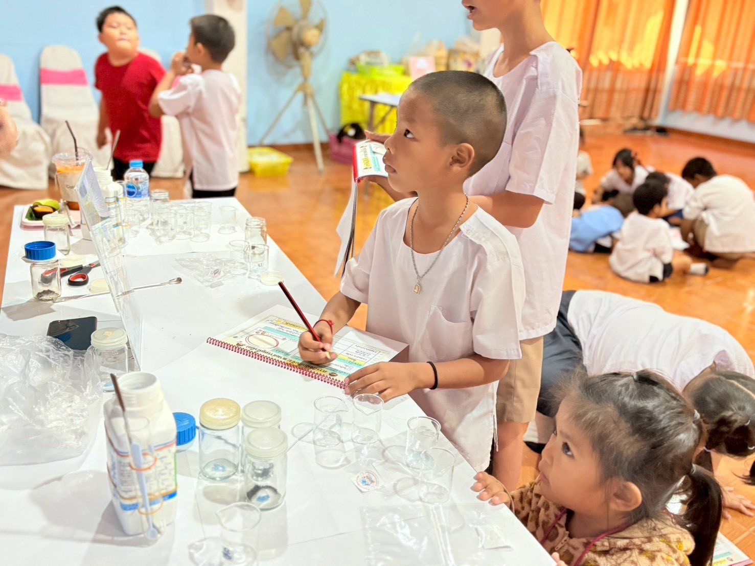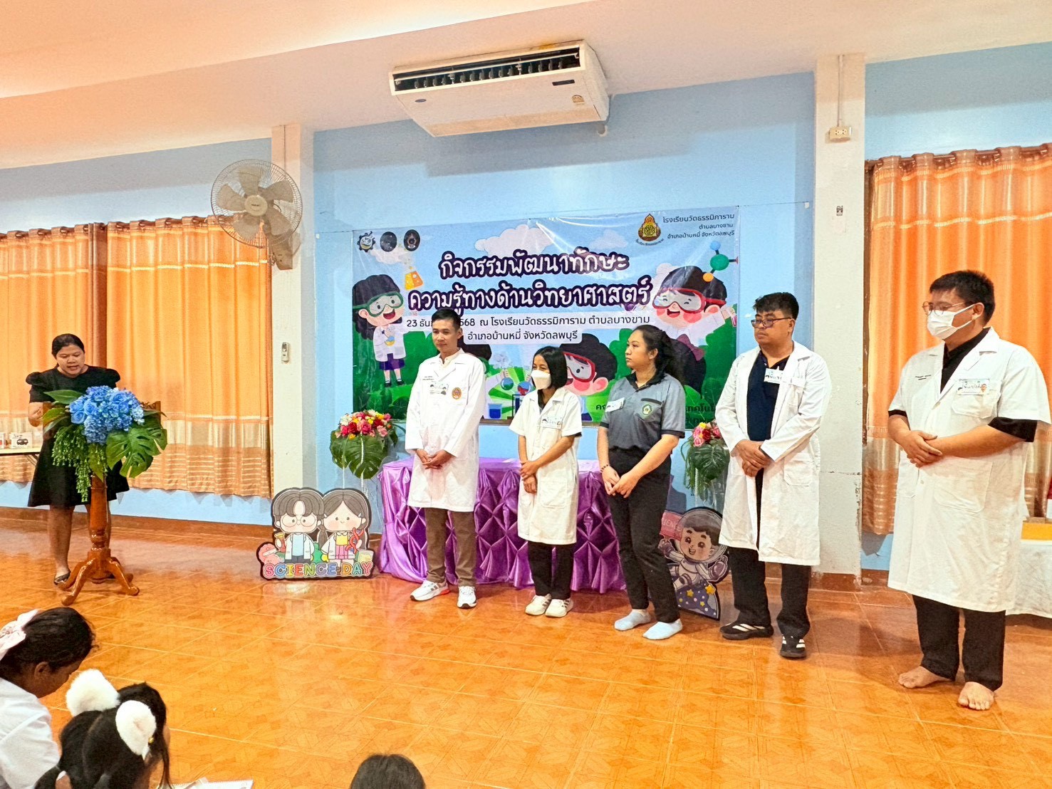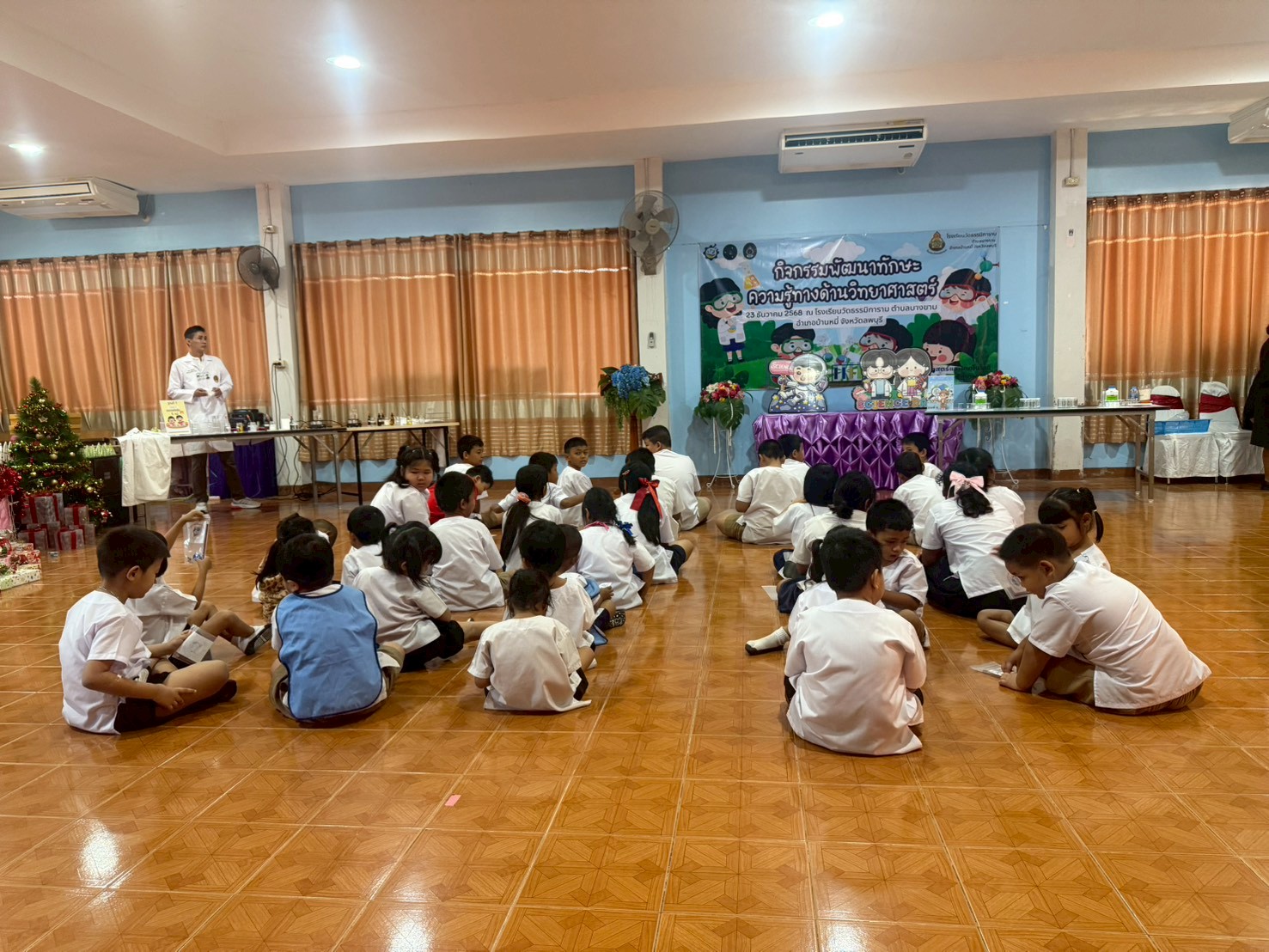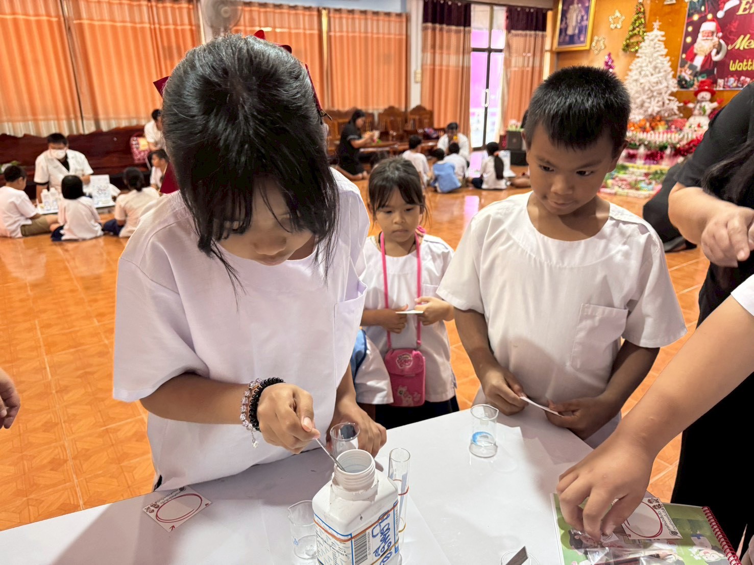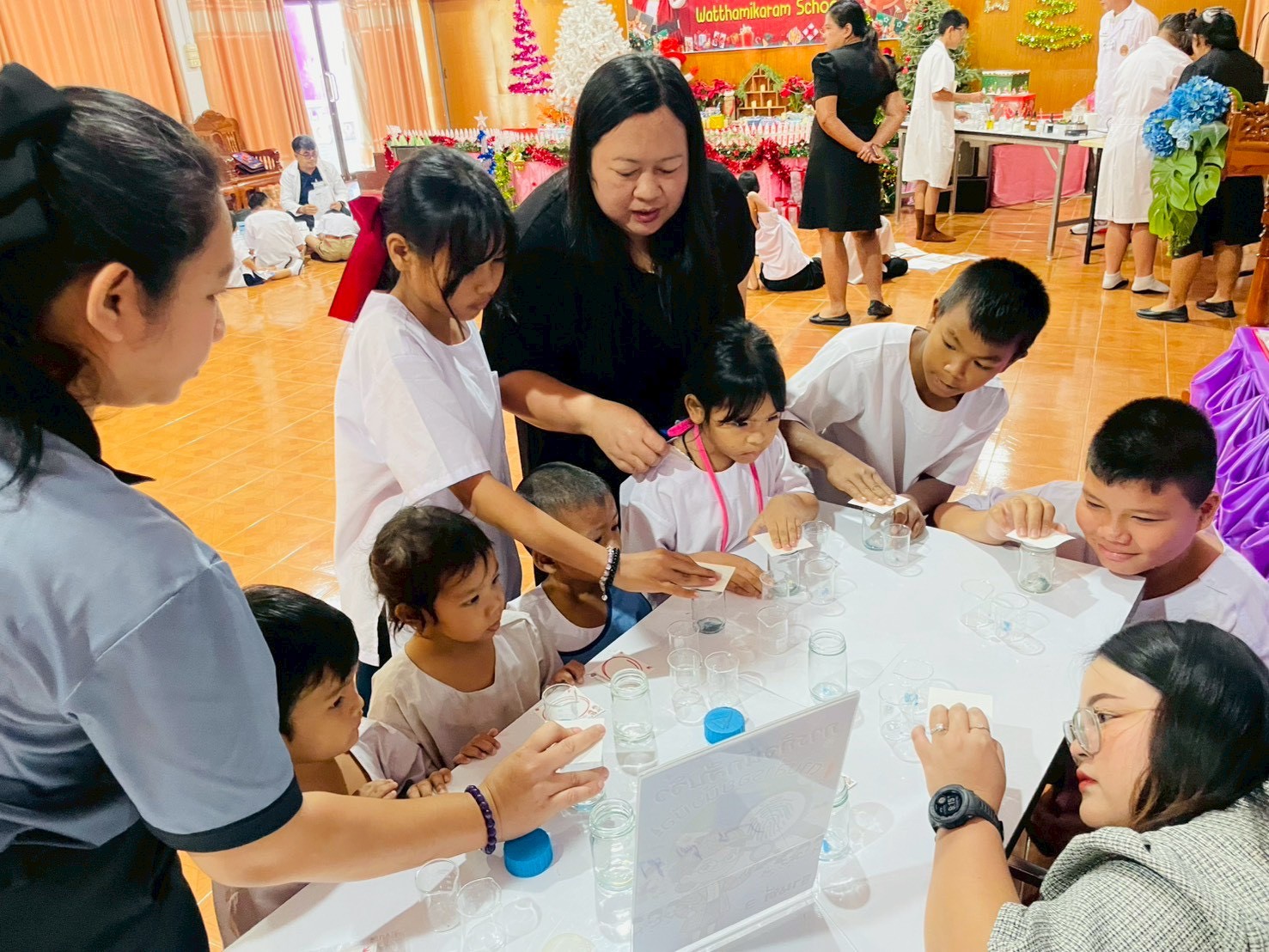 วันที่ 23 ธันวาคม 2568 ส่วนงานห้องปฏิบัติการกลาง คณะวิทยาศาสตร์และเทคโนโลยี มหาวิทยาลัยราชภัฏเทพสตรี ได้เกียรติรับเชิญในการจัดกิจกรรมพัฒนาทักษะความรู้ทางด้านวิทยาศาสตร์ ณ โรงเรียนวัดธรรมิการาม ตำบลบางขาม อำเภอบ้านหมี่ จังหวัดลพบุรี ซึ่งทางส่วนงานห้องปฏิบัติการได้ออกแบบกิจกรรมการเรียนรู้ทางด้านวิทยาศาสตร์ออกเป็น 5 ฐานการเรียนรู้ ได้แก่