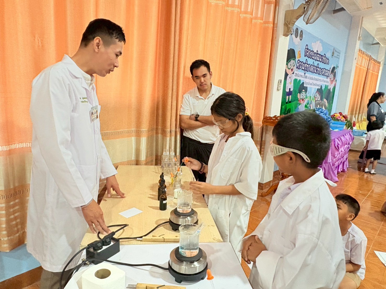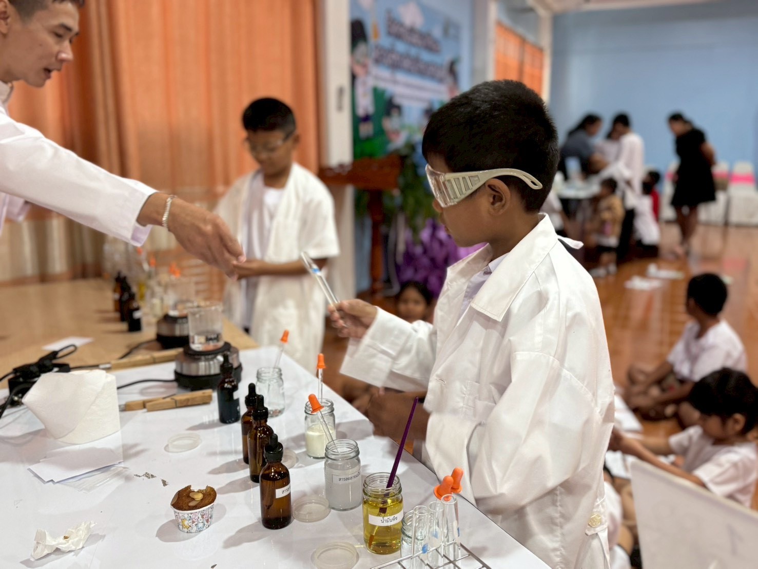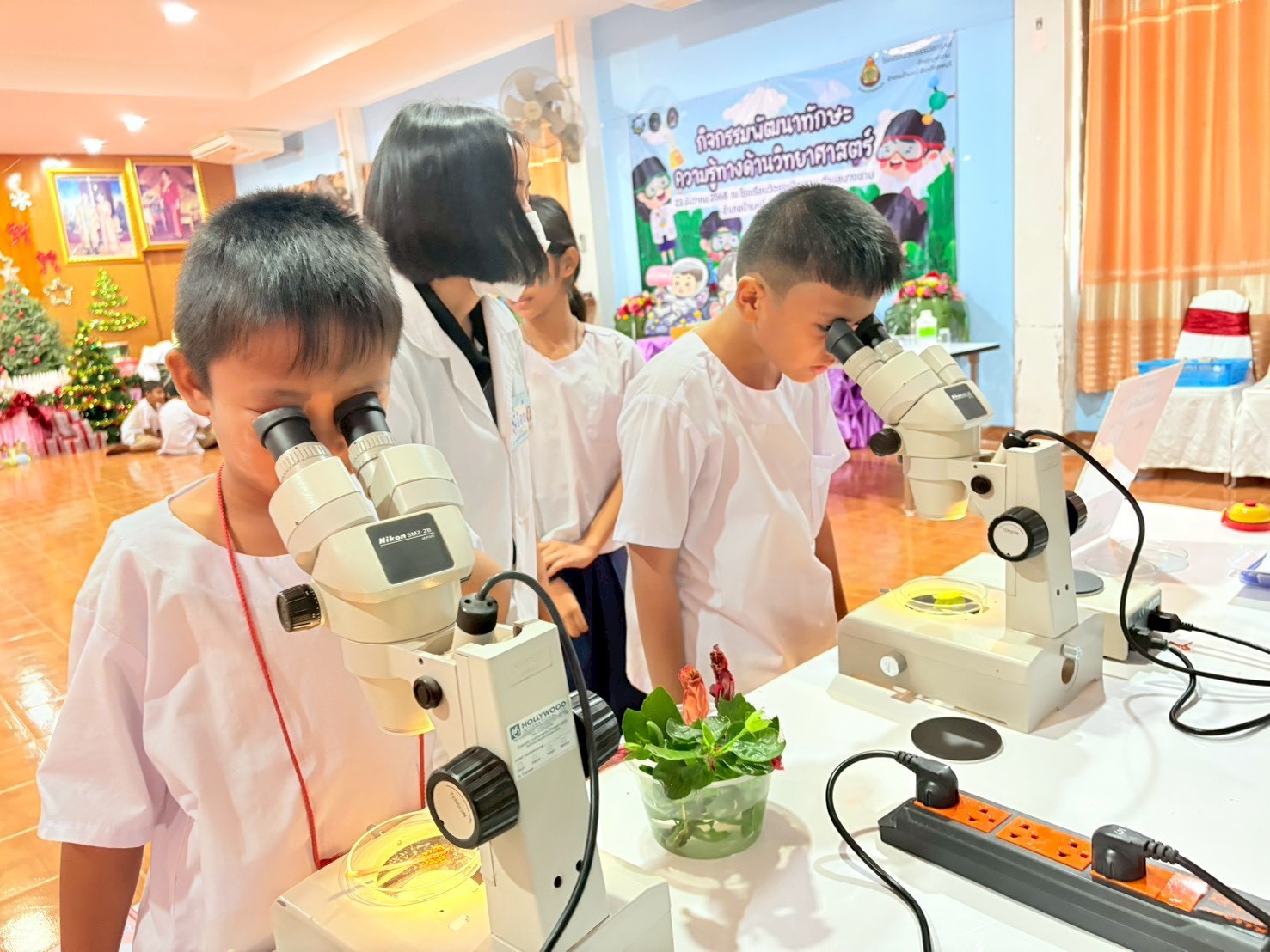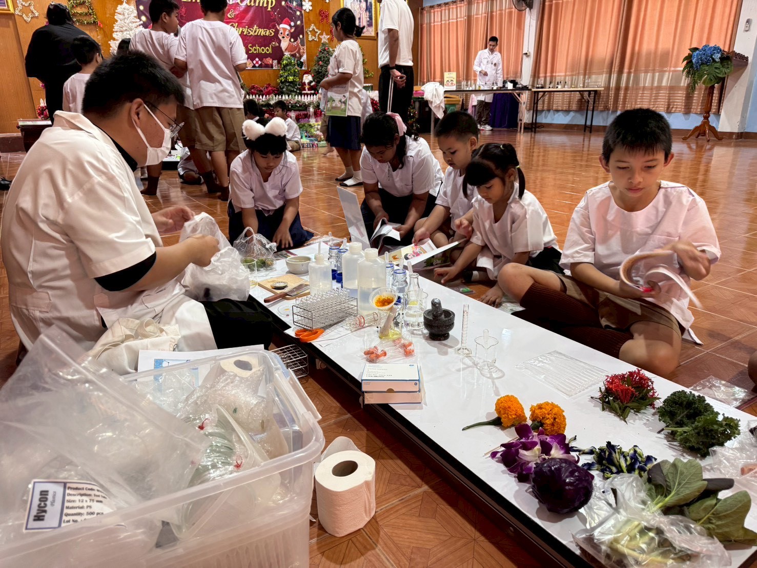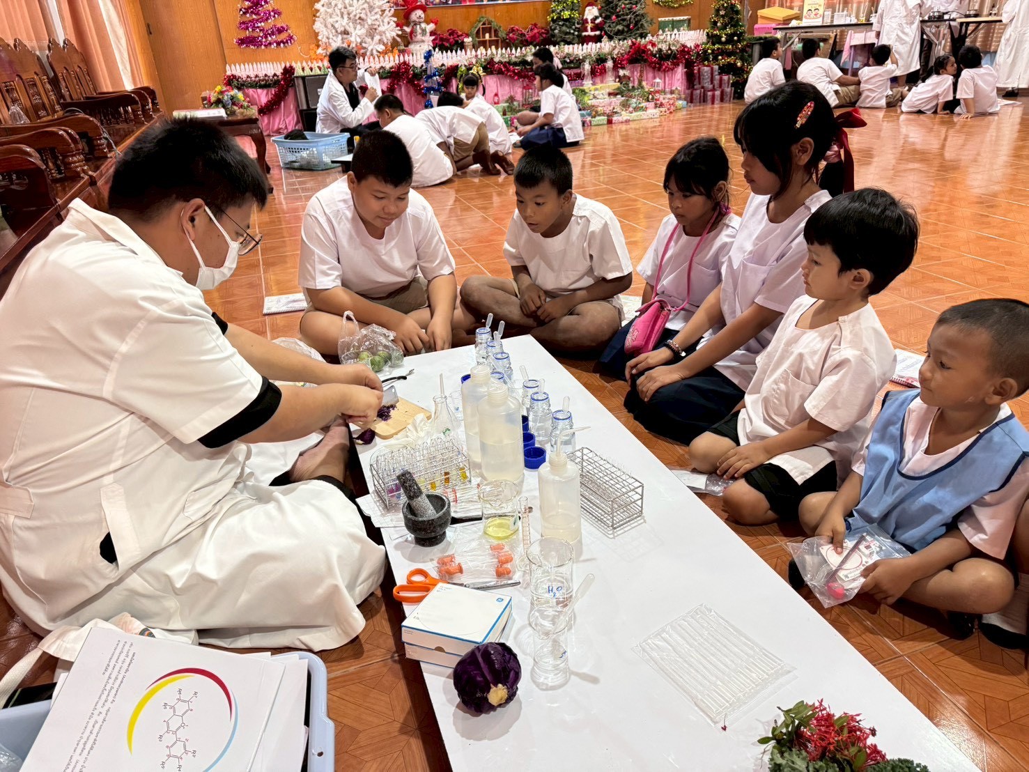 วันที่ 23 ธันวาคม 2568 ส่วนงานห้องปฏิบัติการกลาง คณะวิทยาศาสตร์และเทคโนโลยี มหาวิทยาลัยราชภัฏเทพสตรี ได้เกียรติรับเชิญในการจัดกิจกรรมพัฒนาทักษะความรู้ทางด้านวิทยาศาสตร์ ณ โรงเรียนวัดธรรมิการาม ตำบลบางขาม อำเภอบ้านหมี่ จังหวัดลพบุรี ซึ่งทางส่วนงานห้องปฏิบัติการได้ออกแบบกิจกรรมการเรียนรู้ทางด้านวิทยาศาสตร์ออกเป็น 5 ฐานการเรียนรู้ ได้แก่