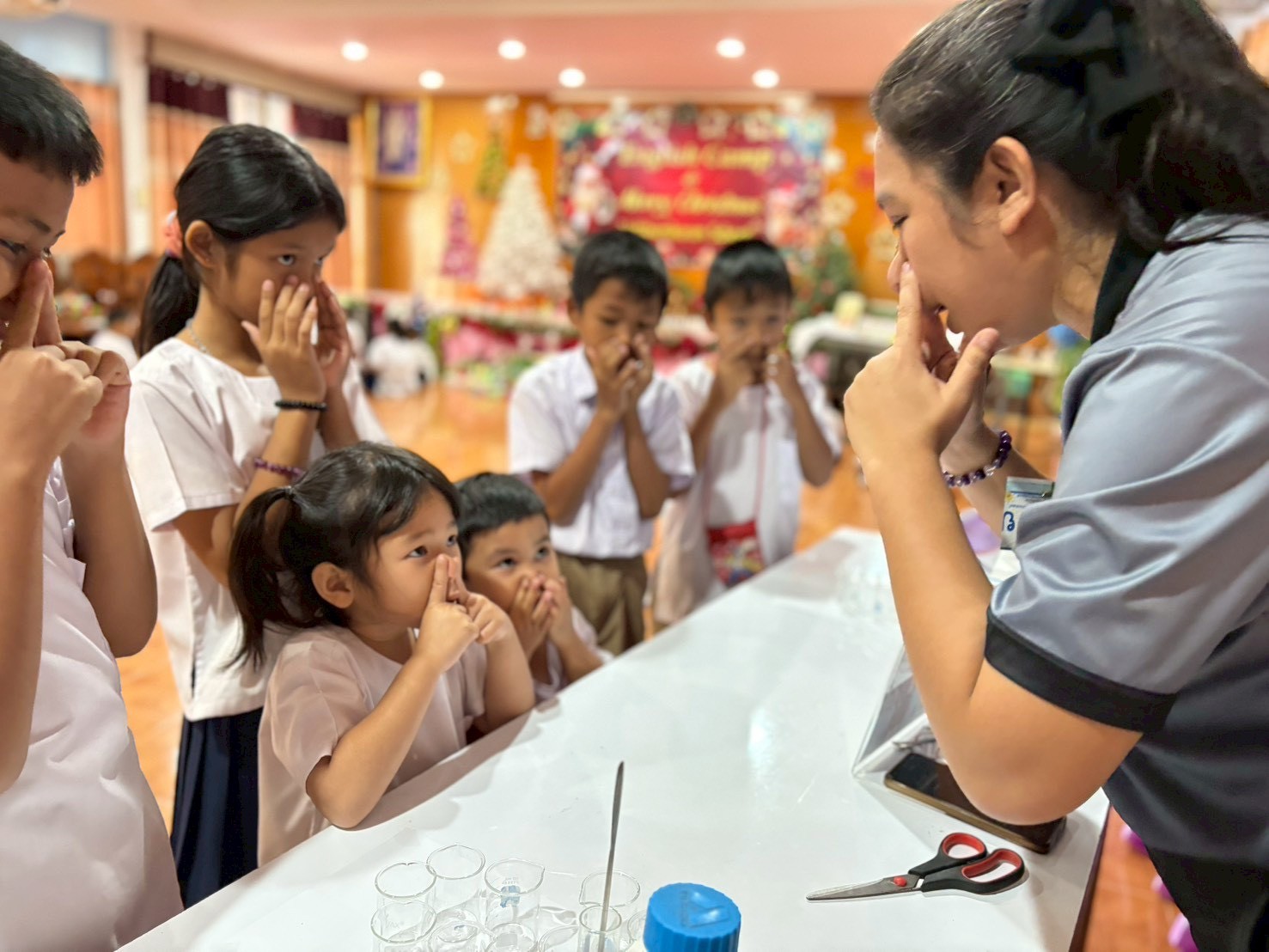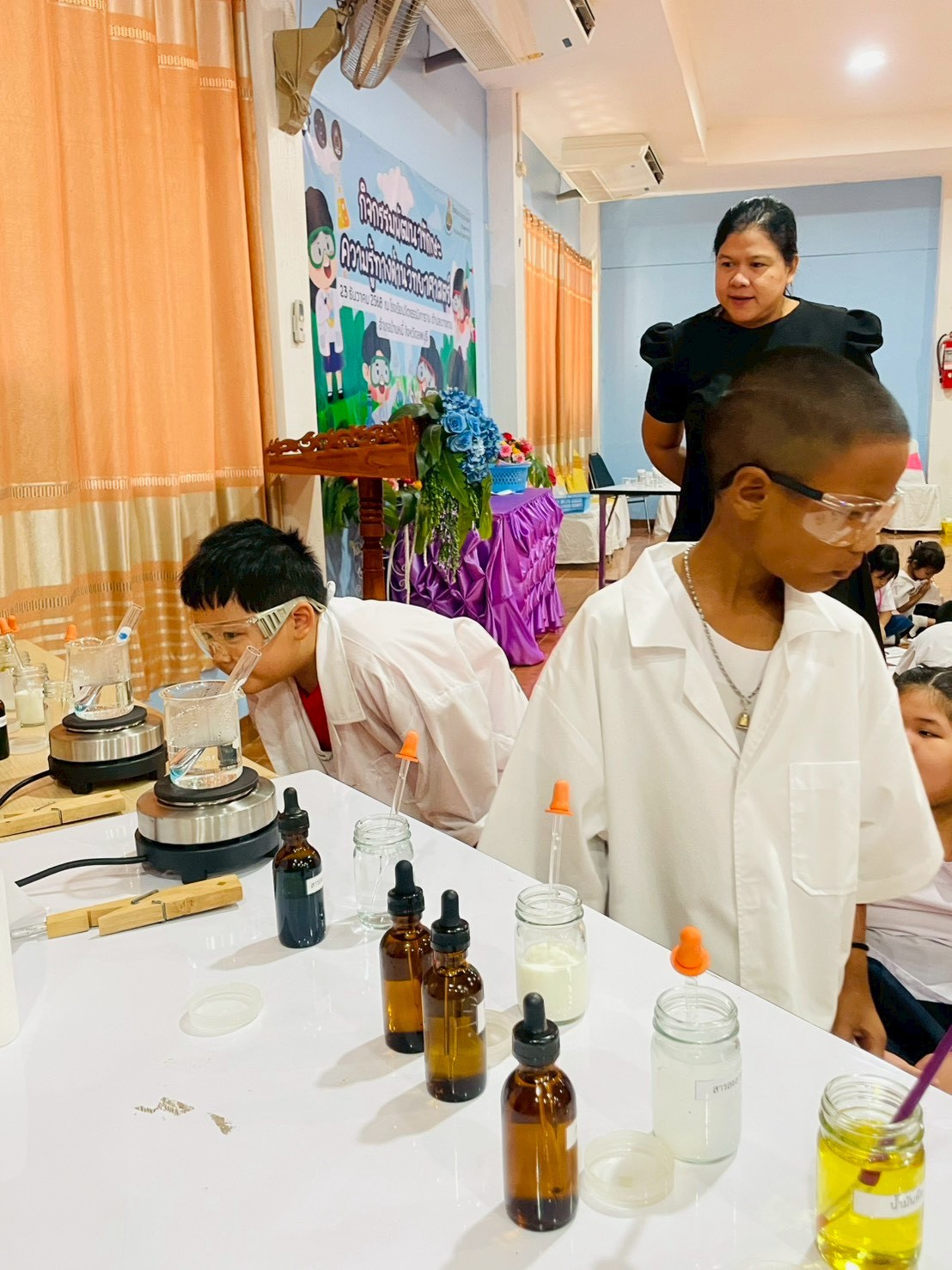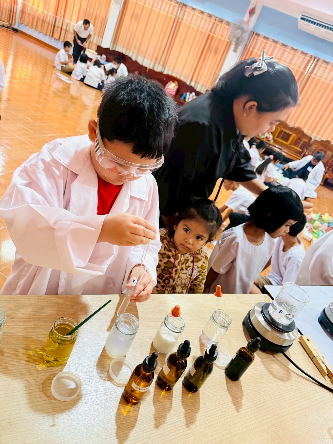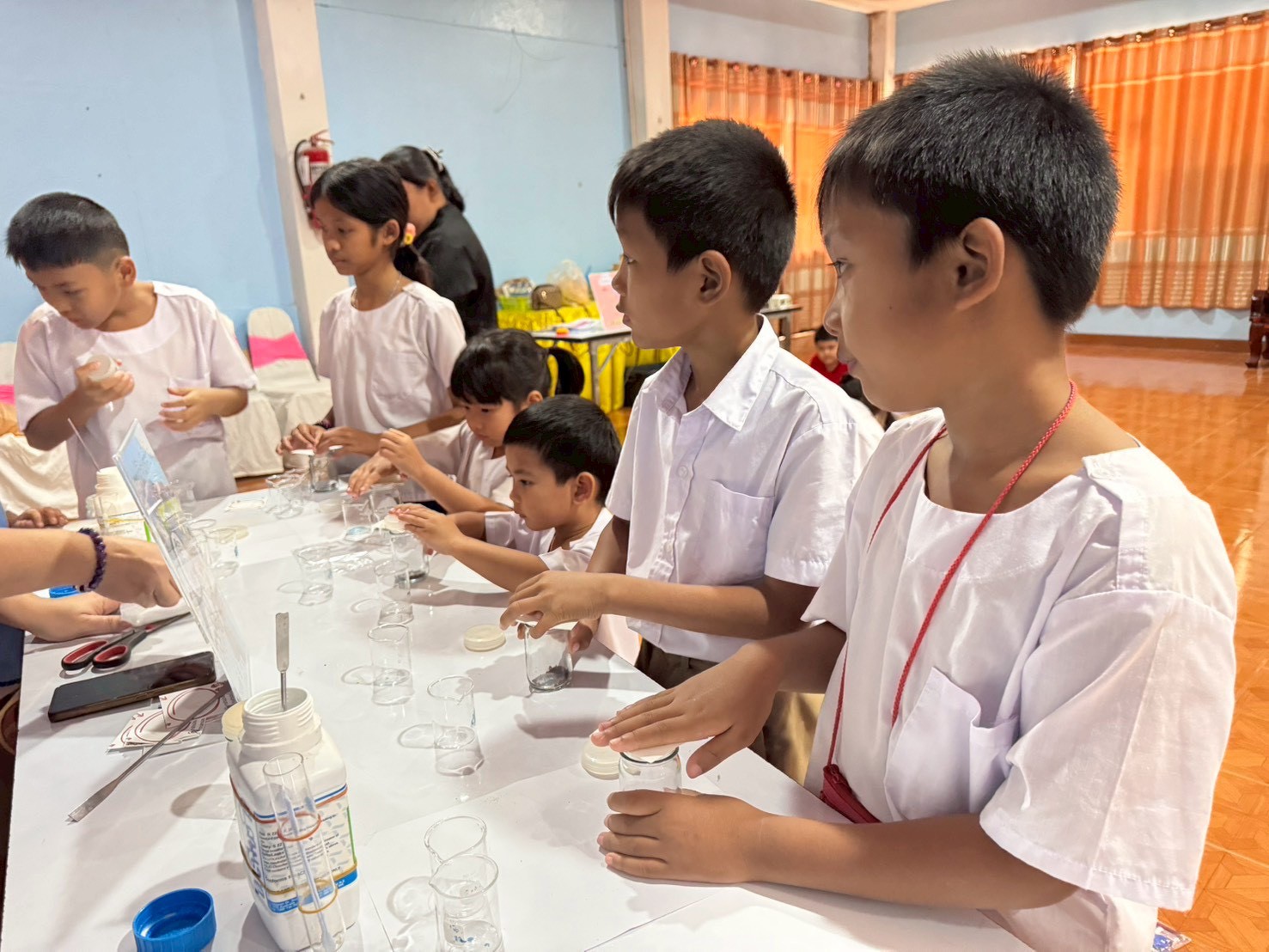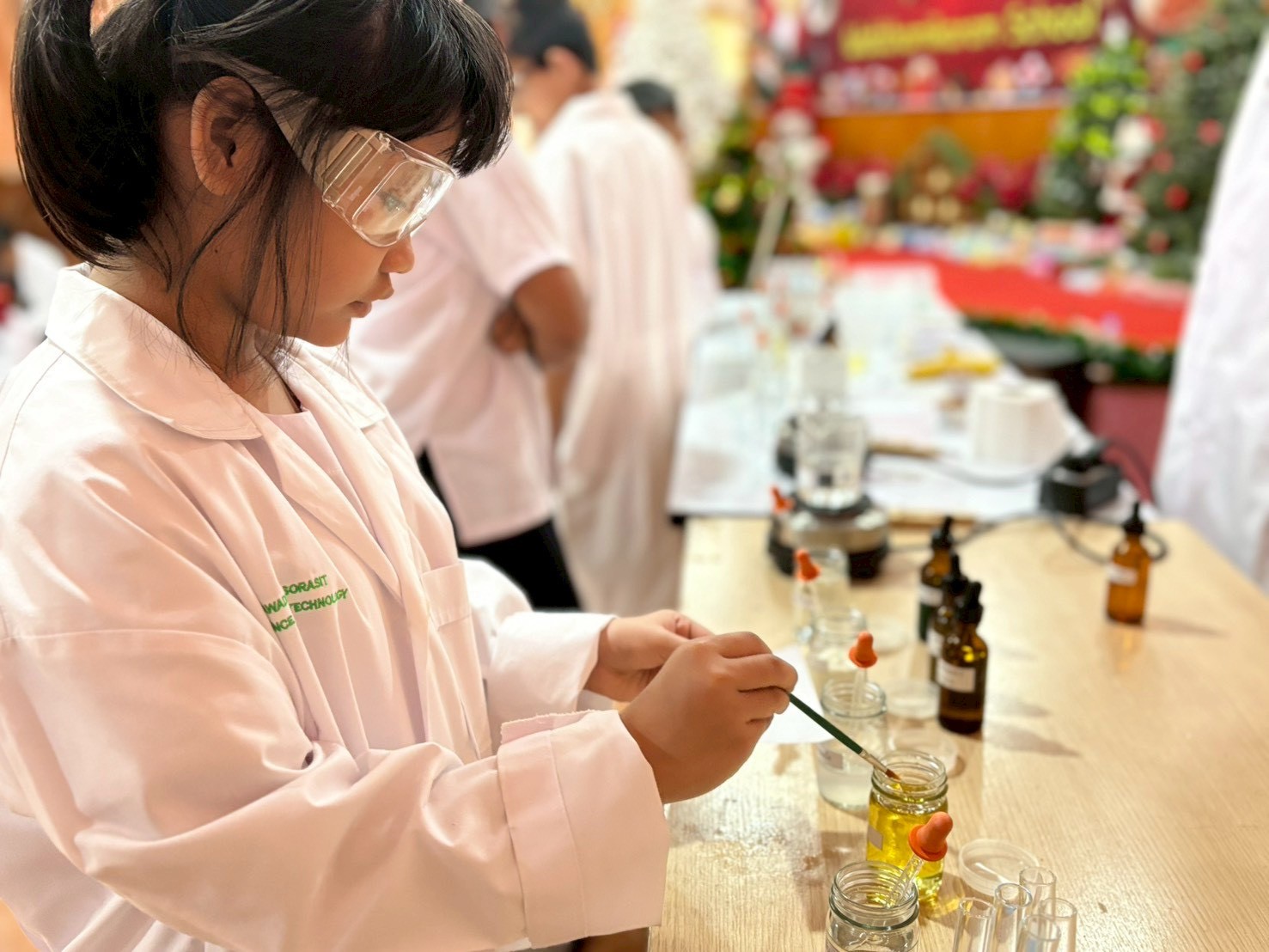 วันที่ 23 ธันวาคม 2568 ส่วนงานห้องปฏิบัติการกลาง คณะวิทยาศาสตร์และเทคโนโลยี มหาวิทยาลัยราชภัฏเทพสตรี ได้เกียรติรับเชิญในการจัดกิจกรรมพัฒนาทักษะความรู้ทางด้านวิทยาศาสตร์ ณ โรงเรียนวัดธรรมิการาม ตำบลบางขาม อำเภอบ้านหมี่ จังหวัดลพบุรี ซึ่งทางส่วนงานห้องปฏิบัติการได้ออกแบบกิจกรรมการเรียนรู้ทางด้านวิทยาศาสตร์ออกเป็น 5 ฐานการเรียนรู้ ได้แก่