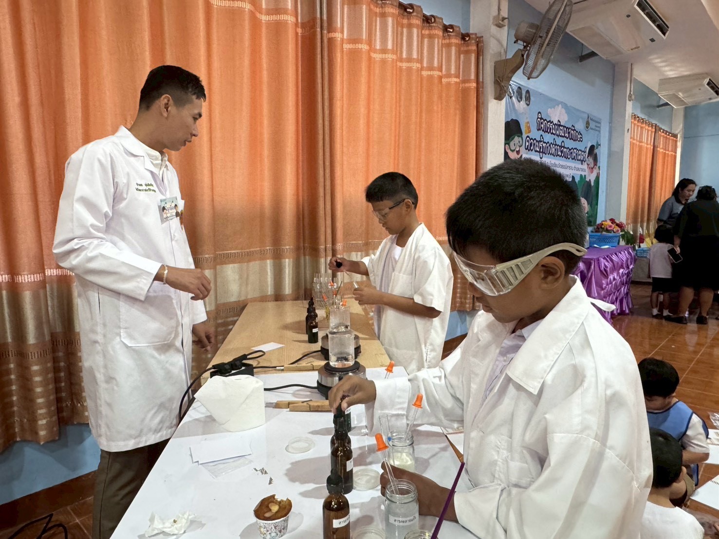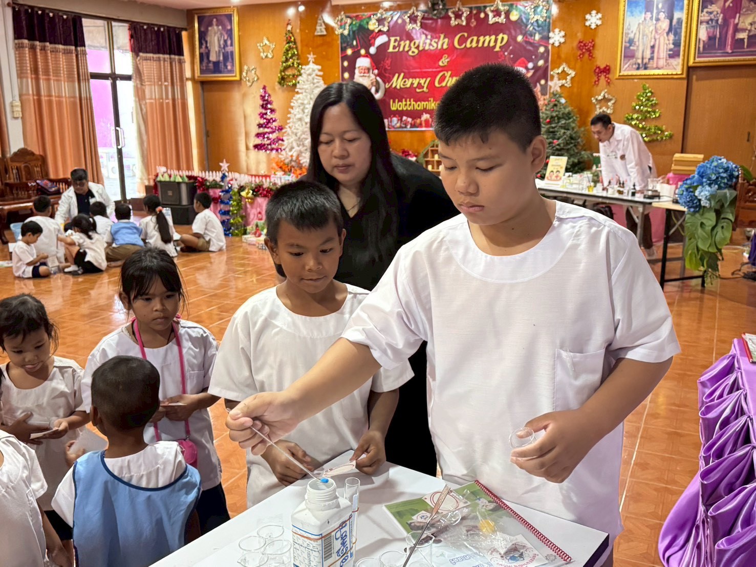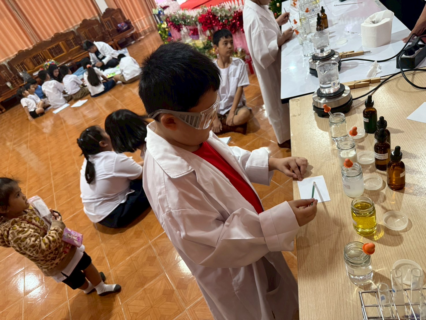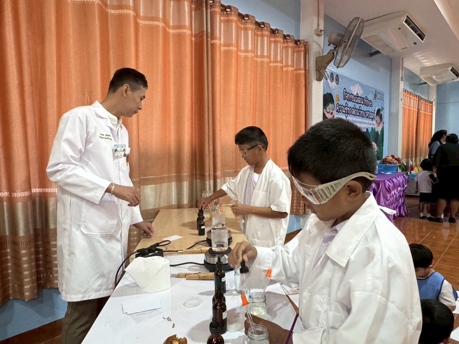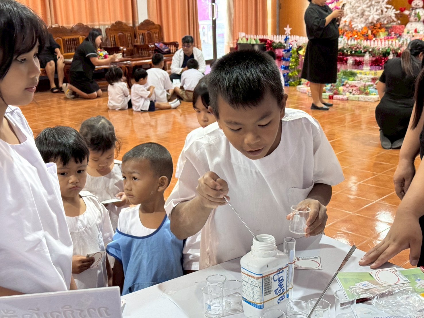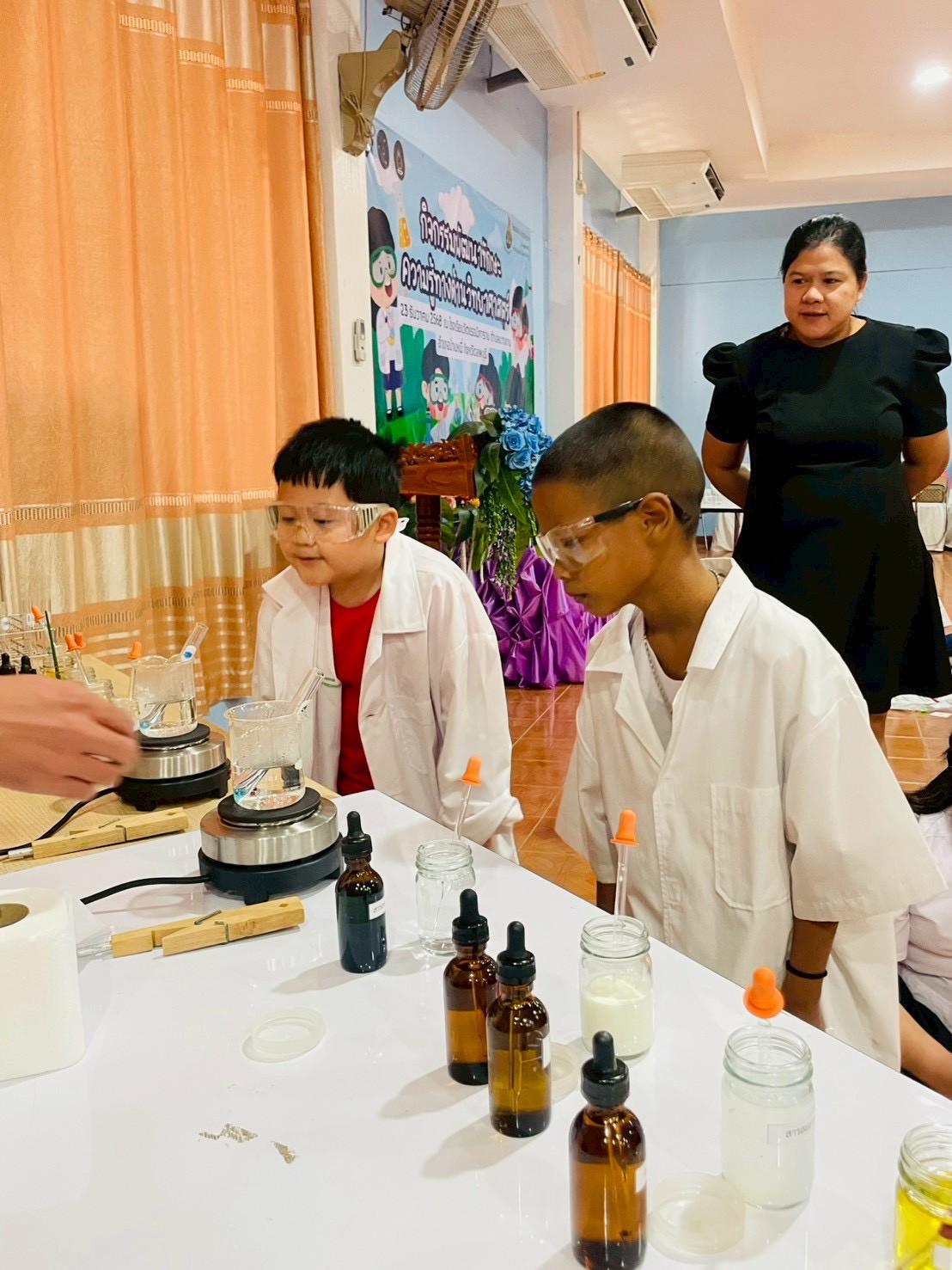 วันที่ 23 ธันวาคม 2568 ส่วนงานห้องปฏิบัติการกลาง คณะวิทยาศาสตร์และเทคโนโลยี มหาวิทยาลัยราชภัฏเทพสตรี ได้เกียรติรับเชิญในการจัดกิจกรรมพัฒนาทักษะความรู้ทางด้านวิทยาศาสตร์ ณ โรงเรียนวัดธรรมิการาม ตำบลบางขาม อำเภอบ้านหมี่ จังหวัดลพบุรี ซึ่งทางส่วนงานห้องปฏิบัติการได้ออกแบบกิจกรรมการเรียนรู้ทางด้านวิทยาศาสตร์ออกเป็น 5 ฐานการเรียนรู้ ได้แก่