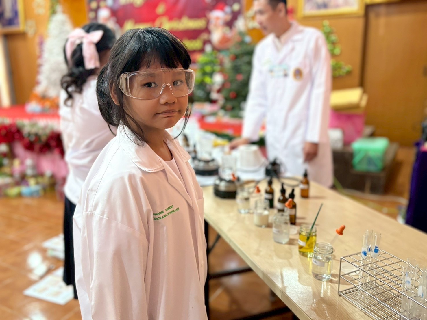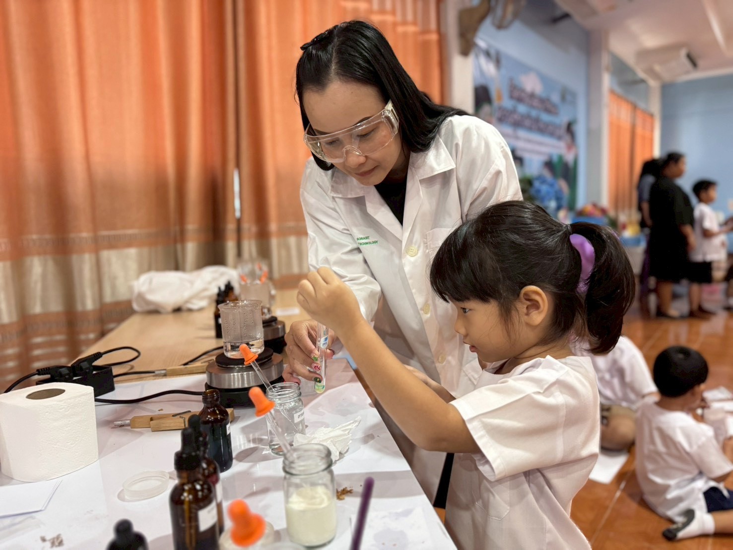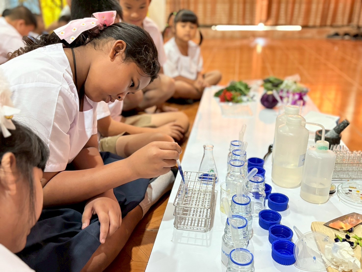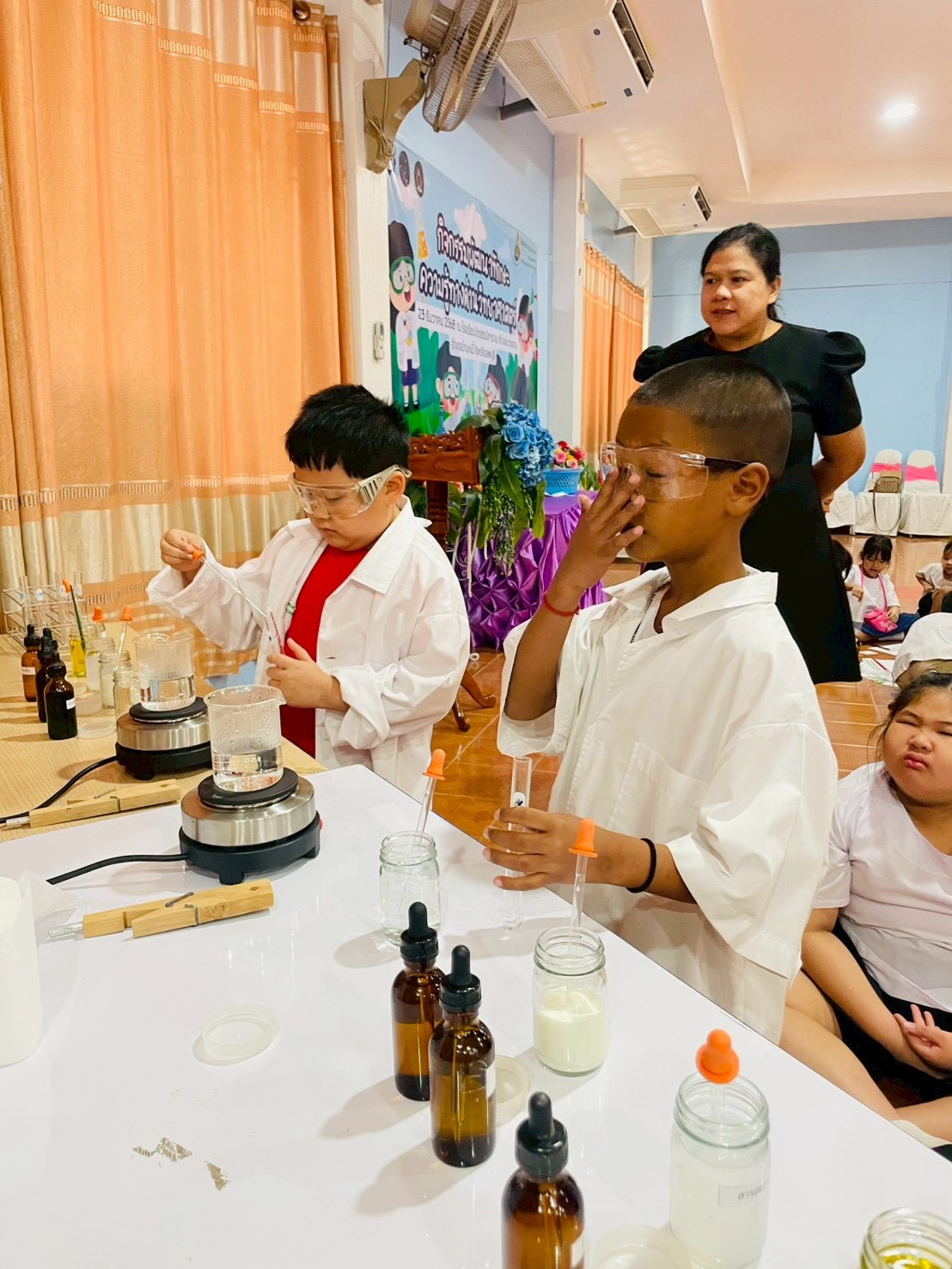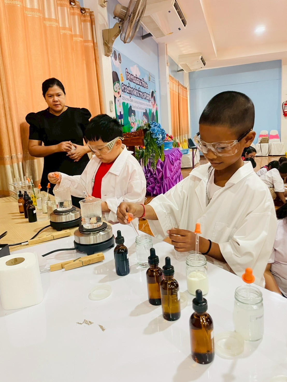 วันที่ 23 ธันวาคม 2568 ส่วนงานห้องปฏิบัติการกลาง คณะวิทยาศาสตร์และเทคโนโลยี มหาวิทยาลัยราชภัฏเทพสตรี ได้เกียรติรับเชิญในการจัดกิจกรรมพัฒนาทักษะความรู้ทางด้านวิทยาศาสตร์ ณ โรงเรียนวัดธรรมิการาม ตำบลบางขาม อำเภอบ้านหมี่ จังหวัดลพบุรี ซึ่งทางส่วนงานห้องปฏิบัติการได้ออกแบบกิจกรรมการเรียนรู้ทางด้านวิทยาศาสตร์ออกเป็น 5 ฐานการเรียนรู้ ได้แก่