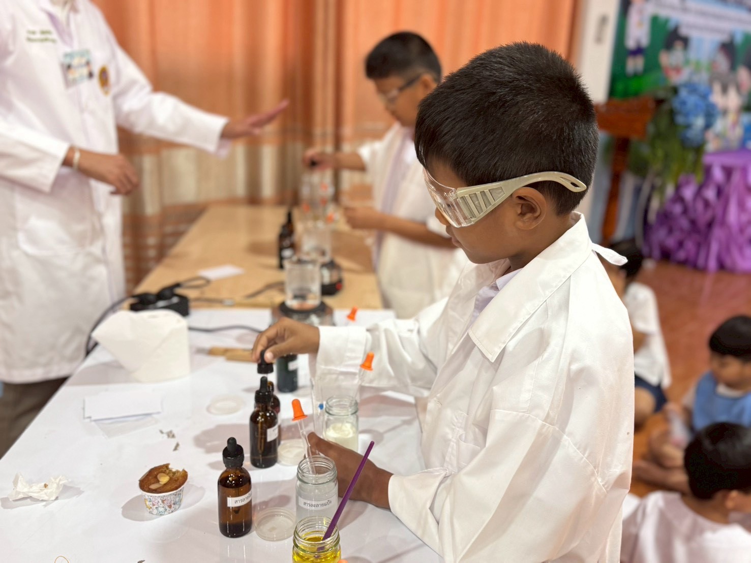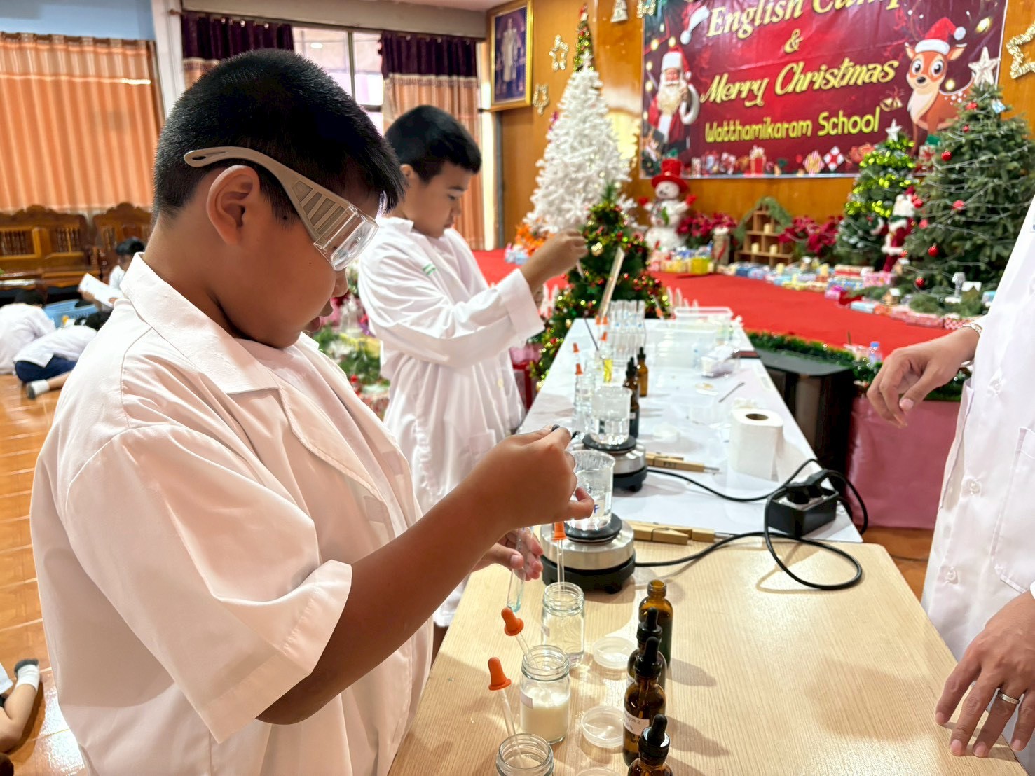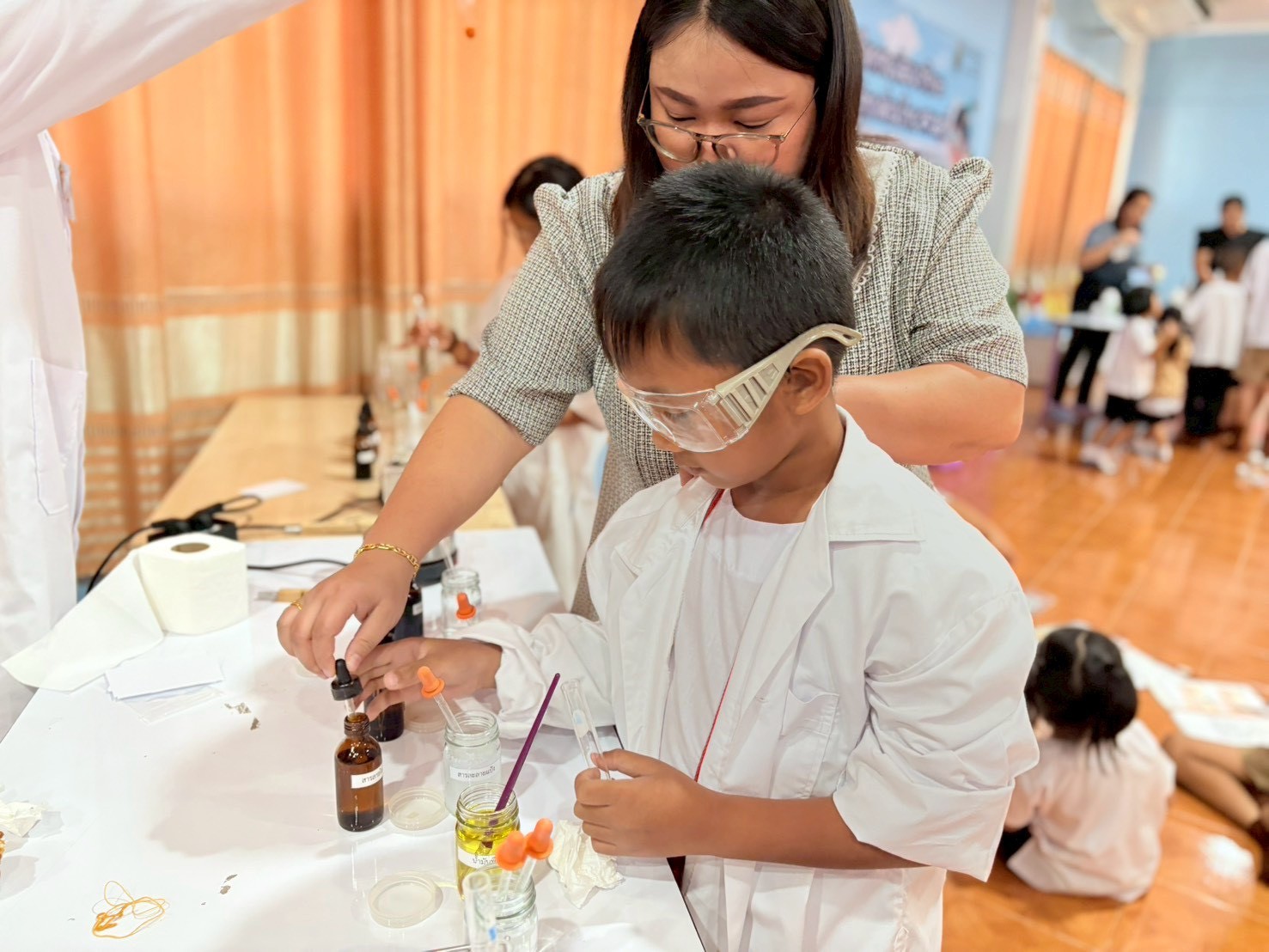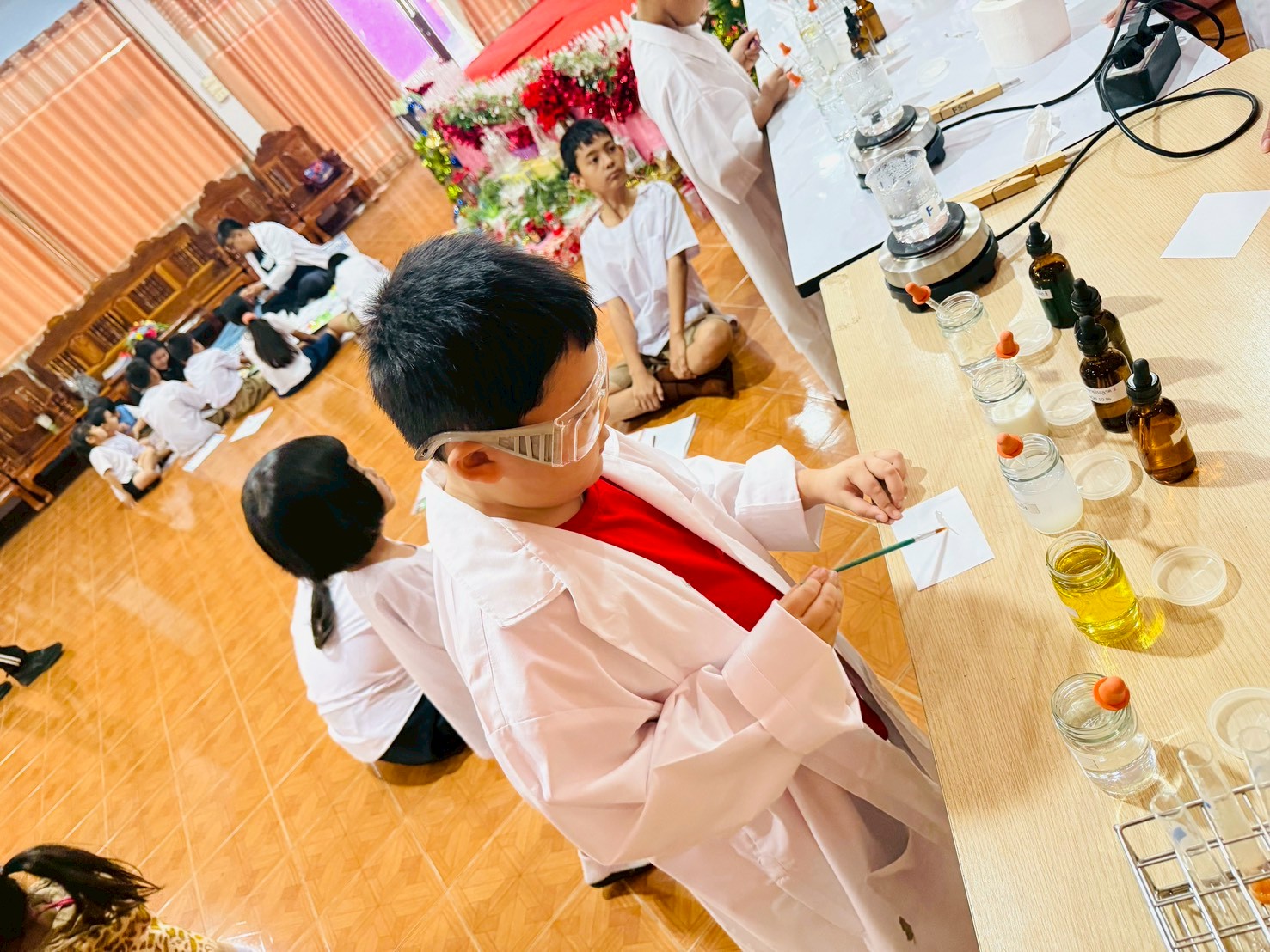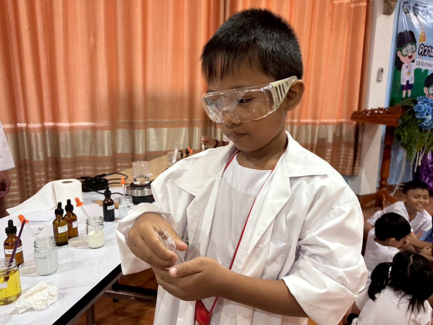 วันที่ 23 ธันวาคม 2568 ส่วนงานห้องปฏิบัติการกลาง คณะวิทยาศาสตร์และเทคโนโลยี มหาวิทยาลัยราชภัฏเทพสตรี ได้เกียรติรับเชิญในการจัดกิจกรรมพัฒนาทักษะความรู้ทางด้านวิทยาศาสตร์ ณ โรงเรียนวัดธรรมิการาม ตำบลบางขาม อำเภอบ้านหมี่ จังหวัดลพบุรี ซึ่งทางส่วนงานห้องปฏิบัติการได้ออกแบบกิจกรรมการเรียนรู้ทางด้านวิทยาศาสตร์ออกเป็น 5 ฐานการเรียนรู้ ได้แก่