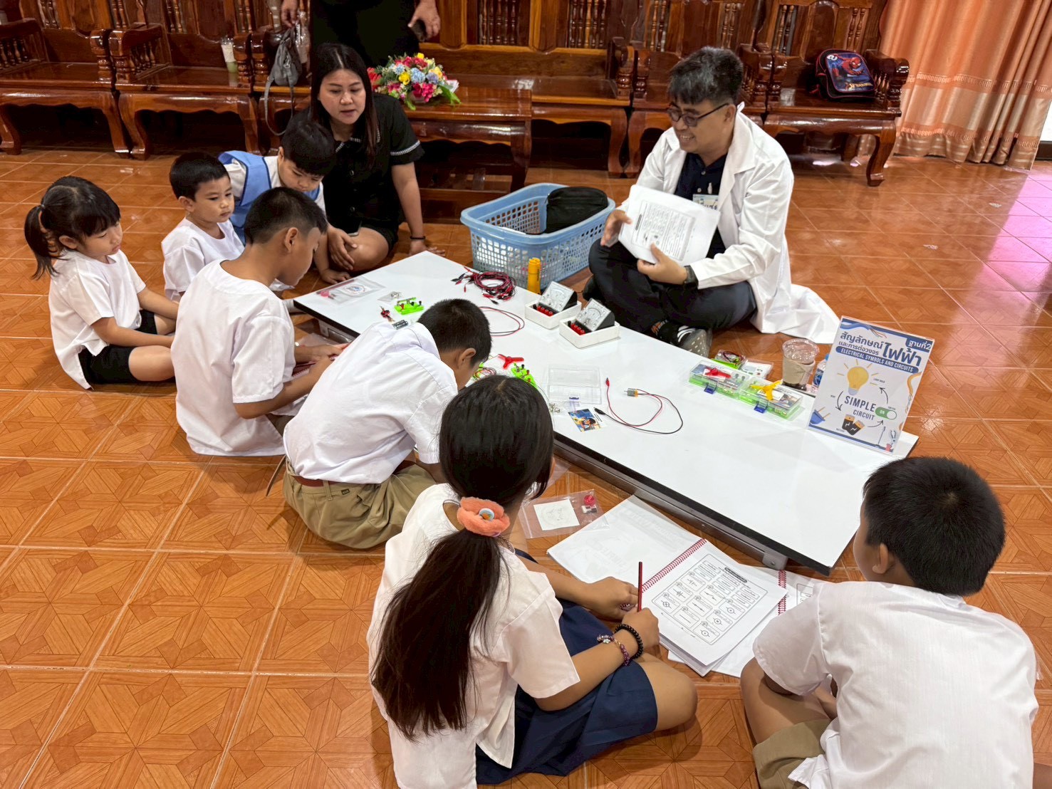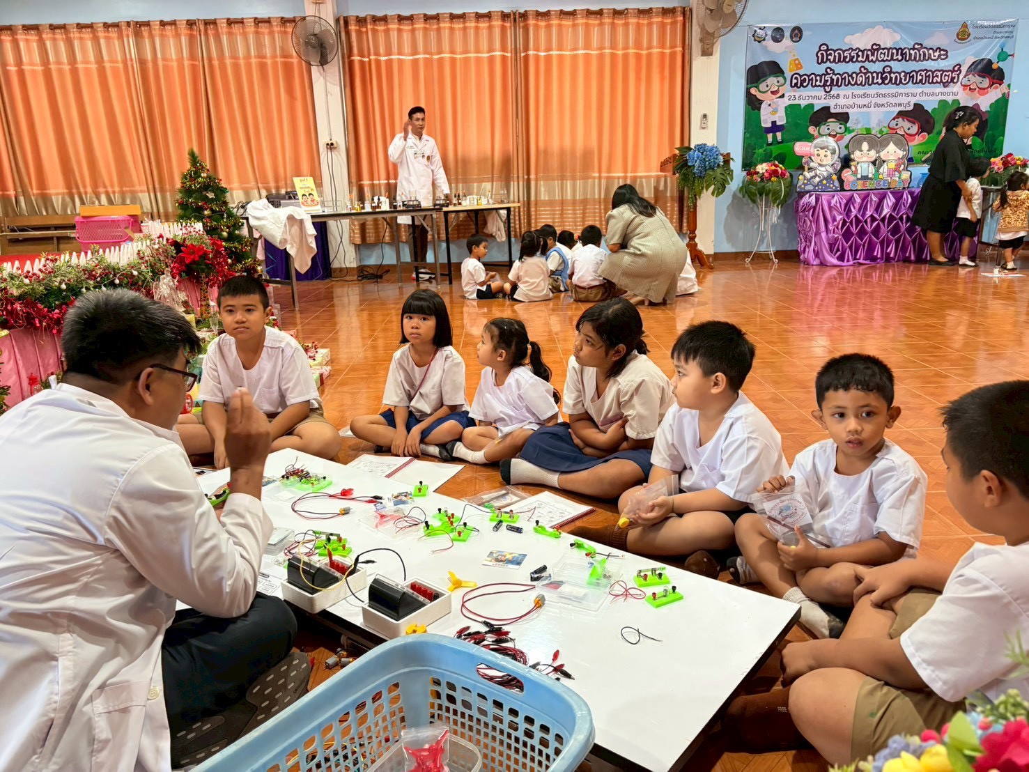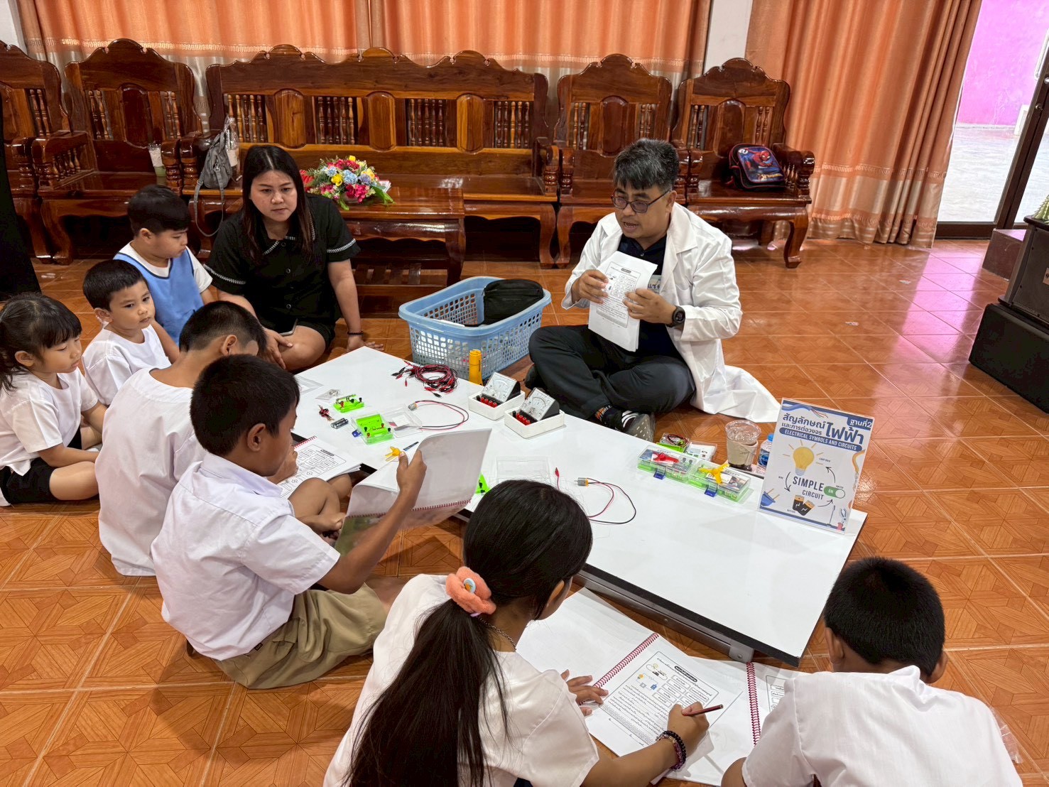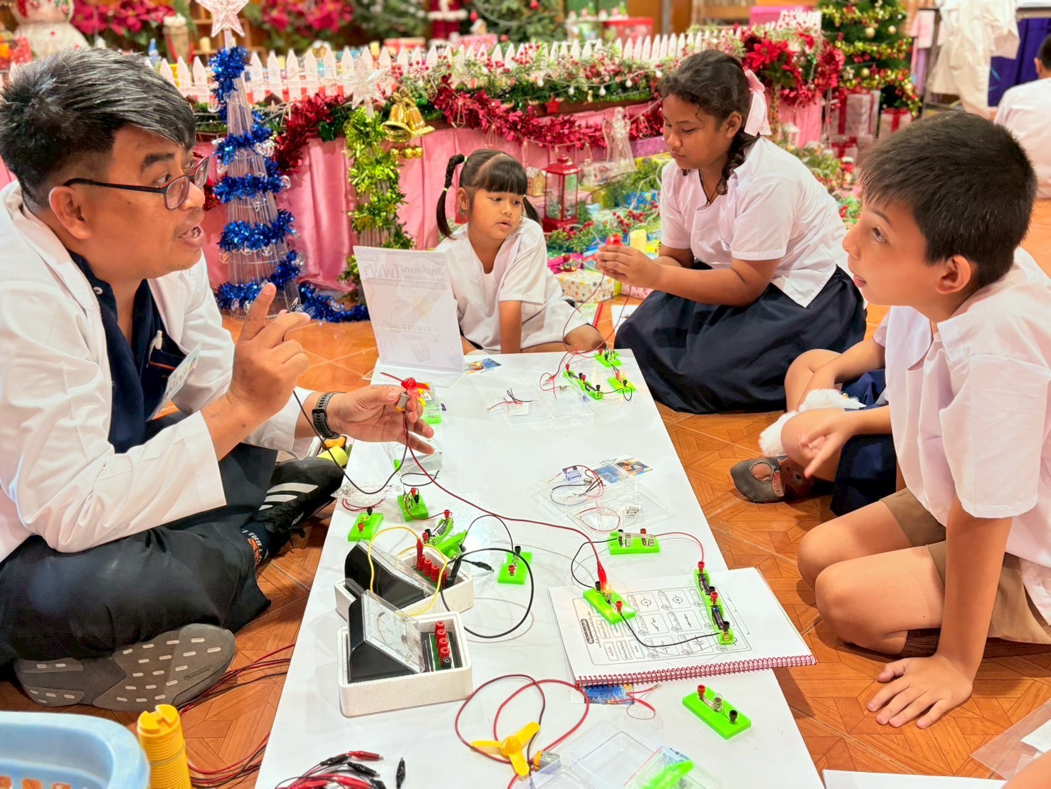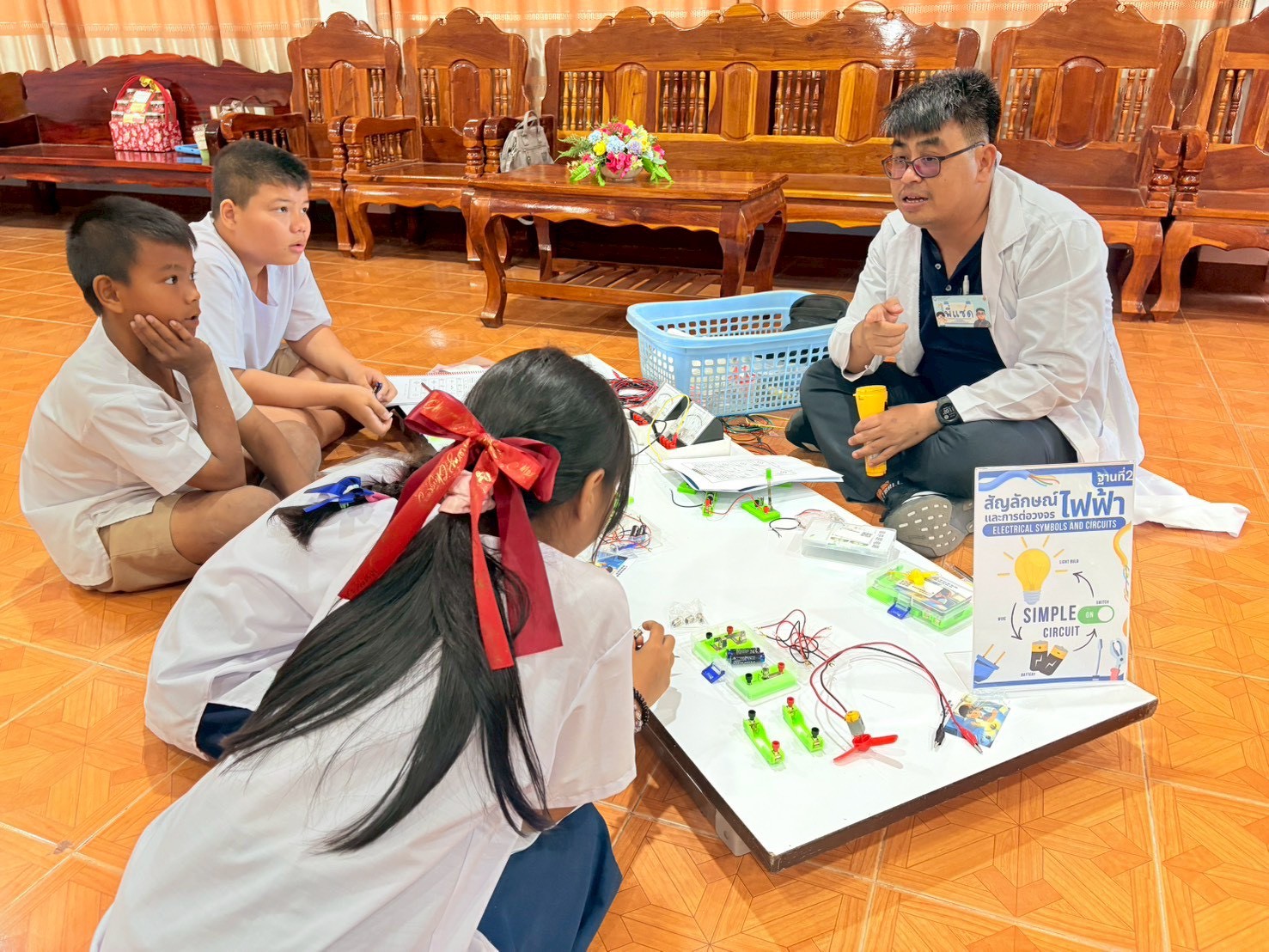 ฐานที่ 2 กิจกรรม สัญลักษณ์และการต่อวงจรไฟฟ้า ผู้รับผิดชอบกิจกรรมคือ นายพรชัย ใจดี นักวิทยาศาสตร์ชำนาญการ