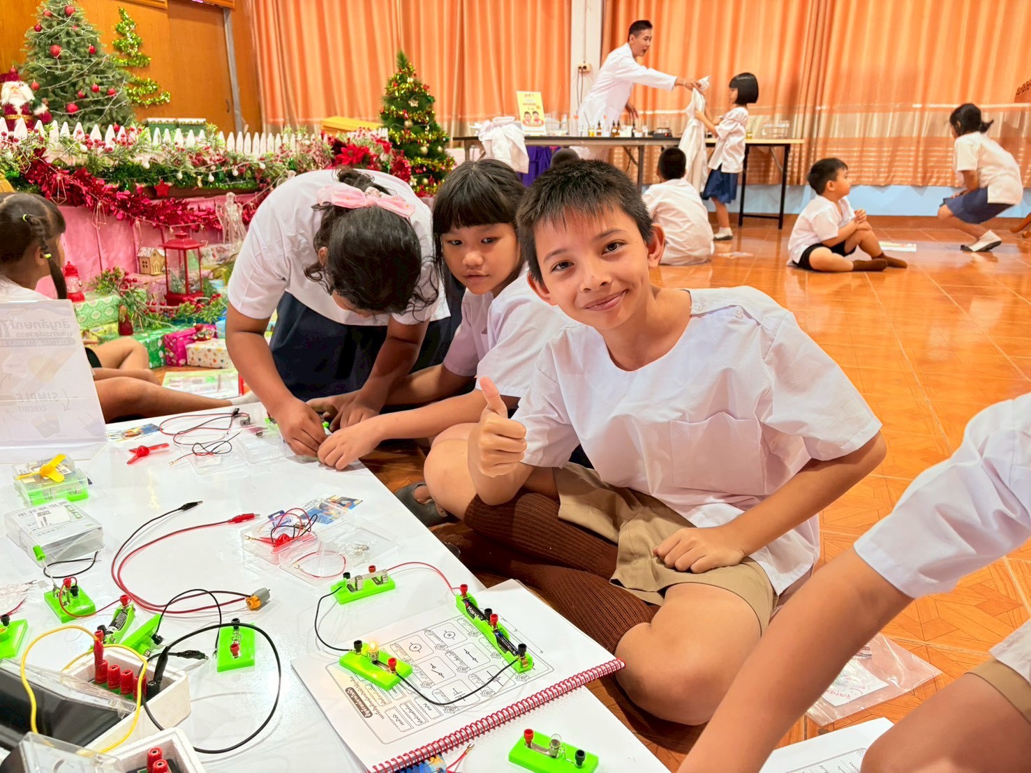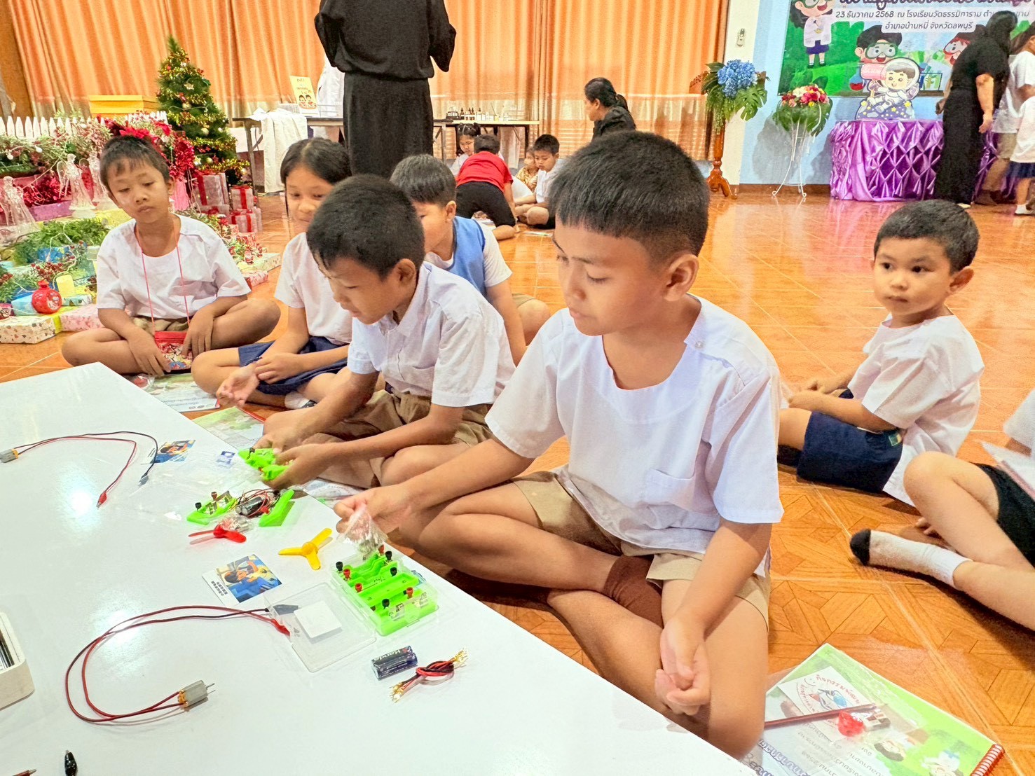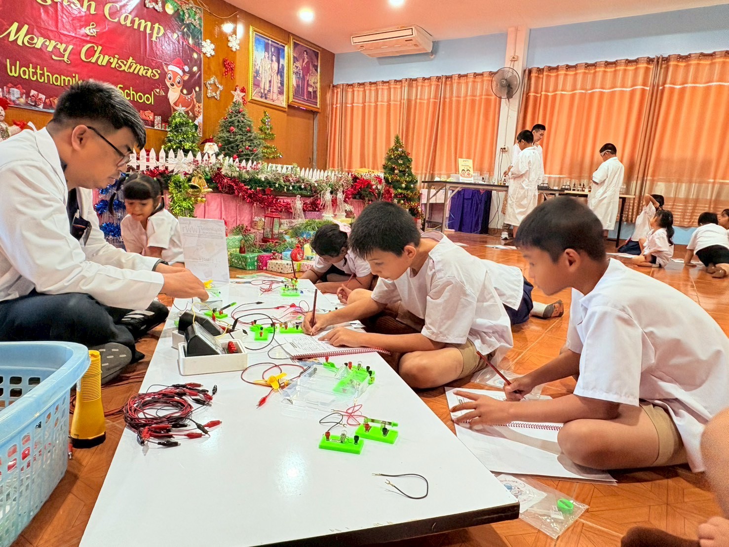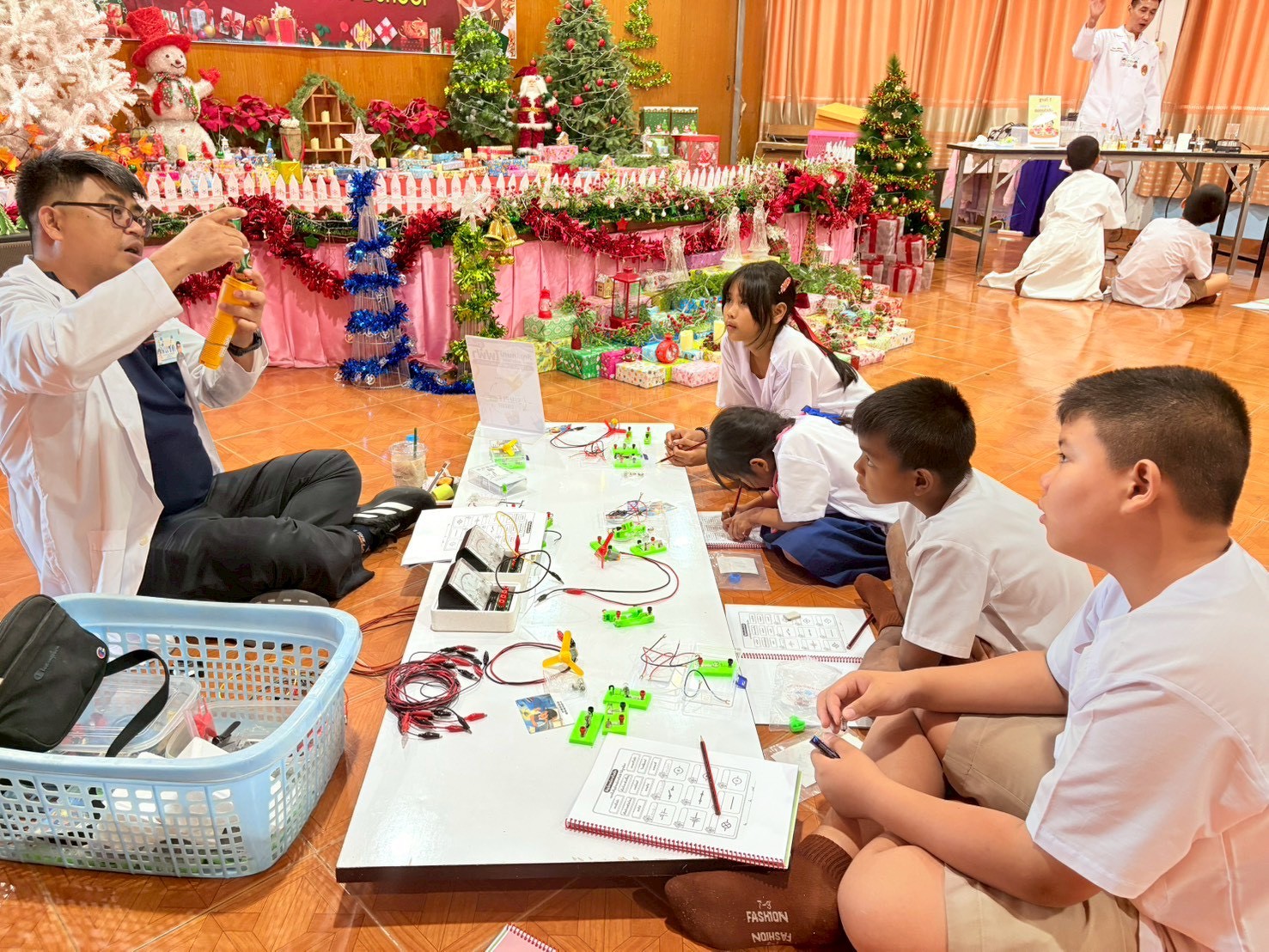 ฐานที่ 2 กิจกรรม สัญลักษณ์และการต่อวงจรไฟฟ้า ผู้รับผิดชอบกิจกรรมคือ นายพรชัย ใจดี นักวิทยาศาสตร์ชำนาญการ