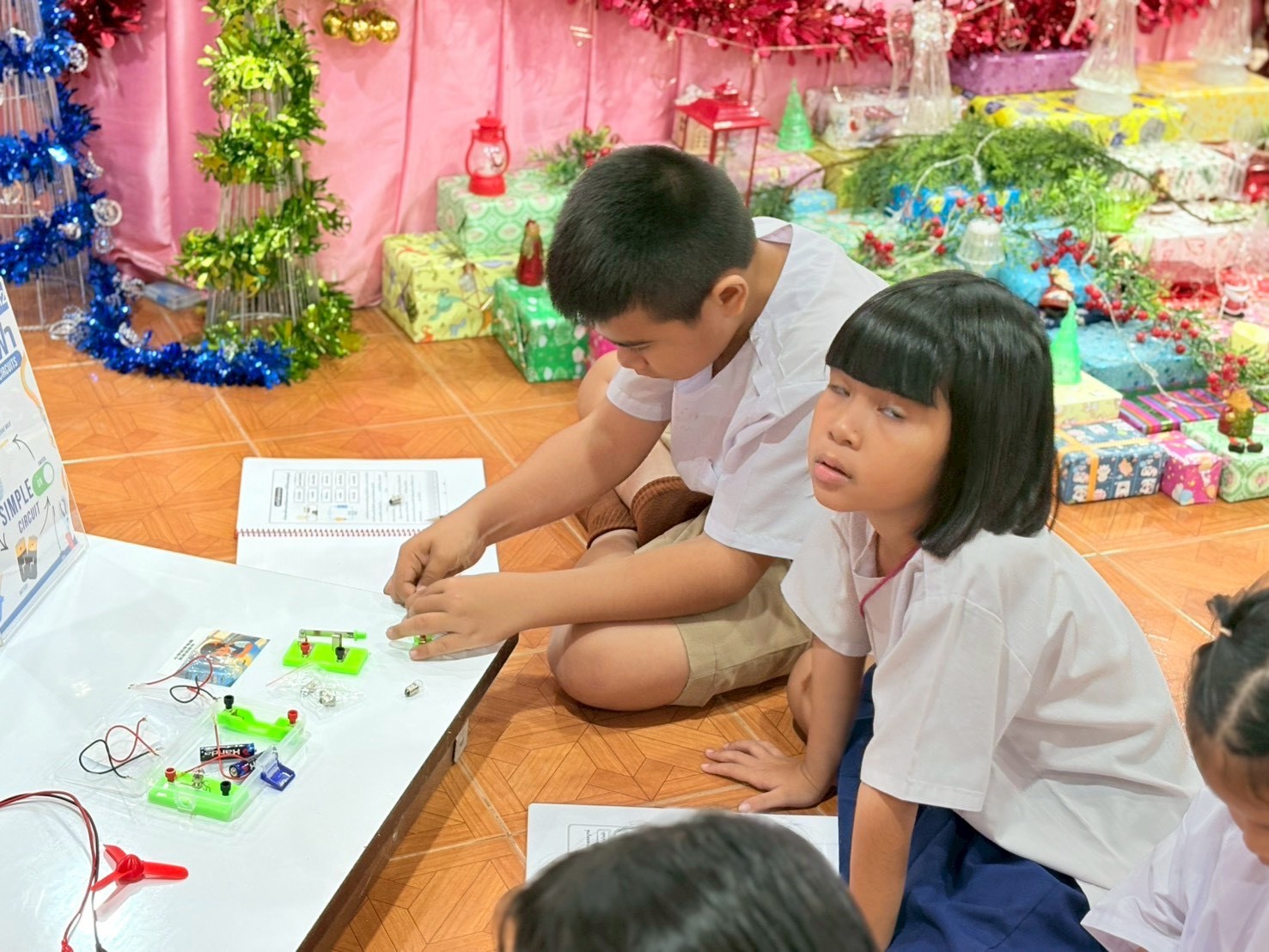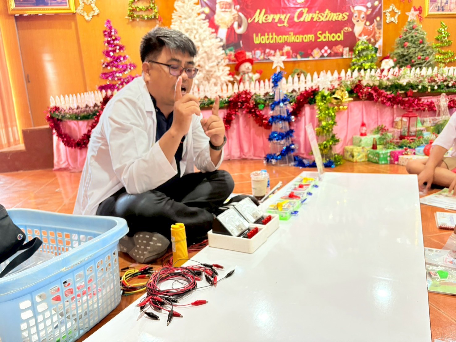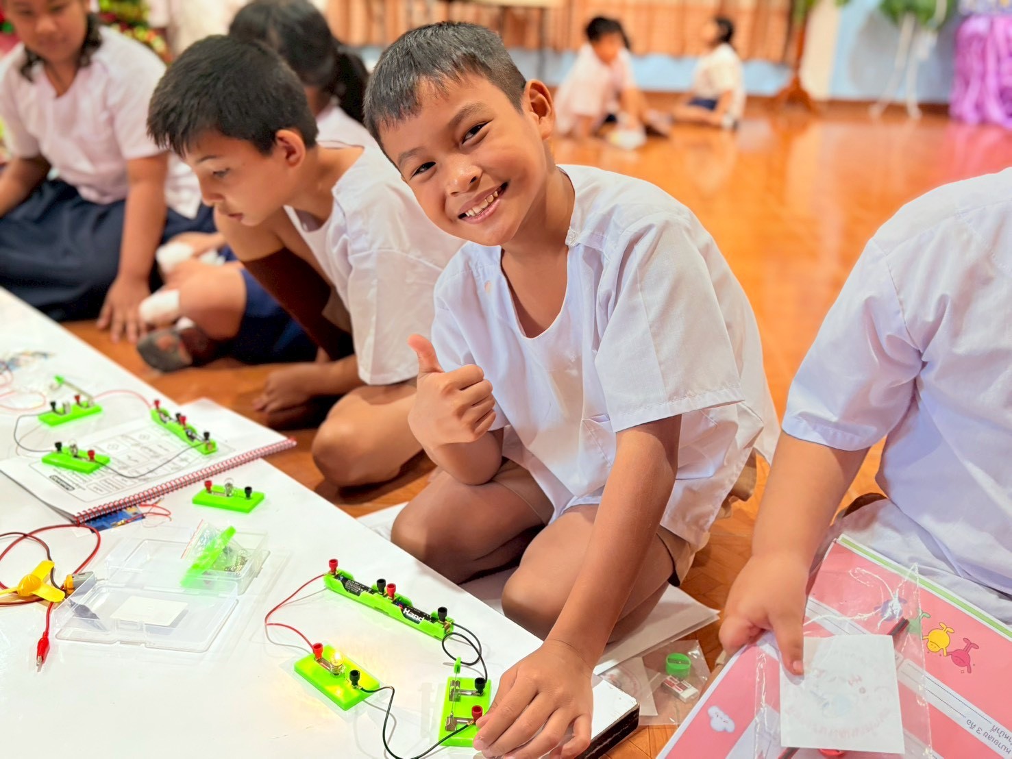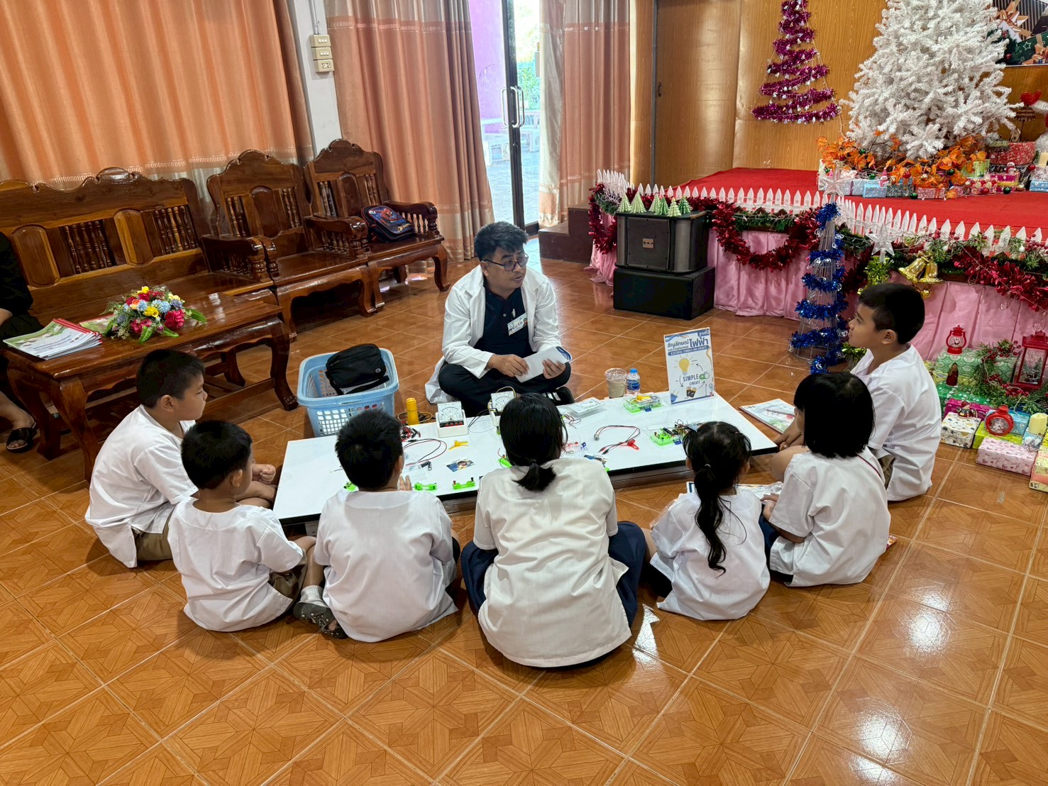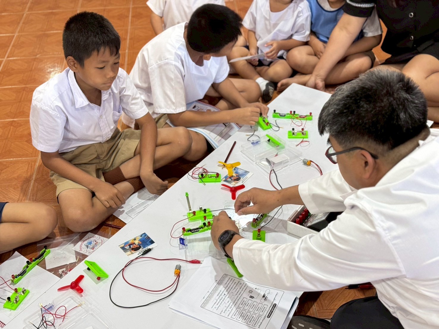 ฐานที่ 2 กิจกรรม สัญลักษณ์และการต่อวงจรไฟฟ้า ผู้รับผิดชอบกิจกรรมคือ นายพรชัย ใจดี นักวิทยาศาสตร์ชำนาญการ