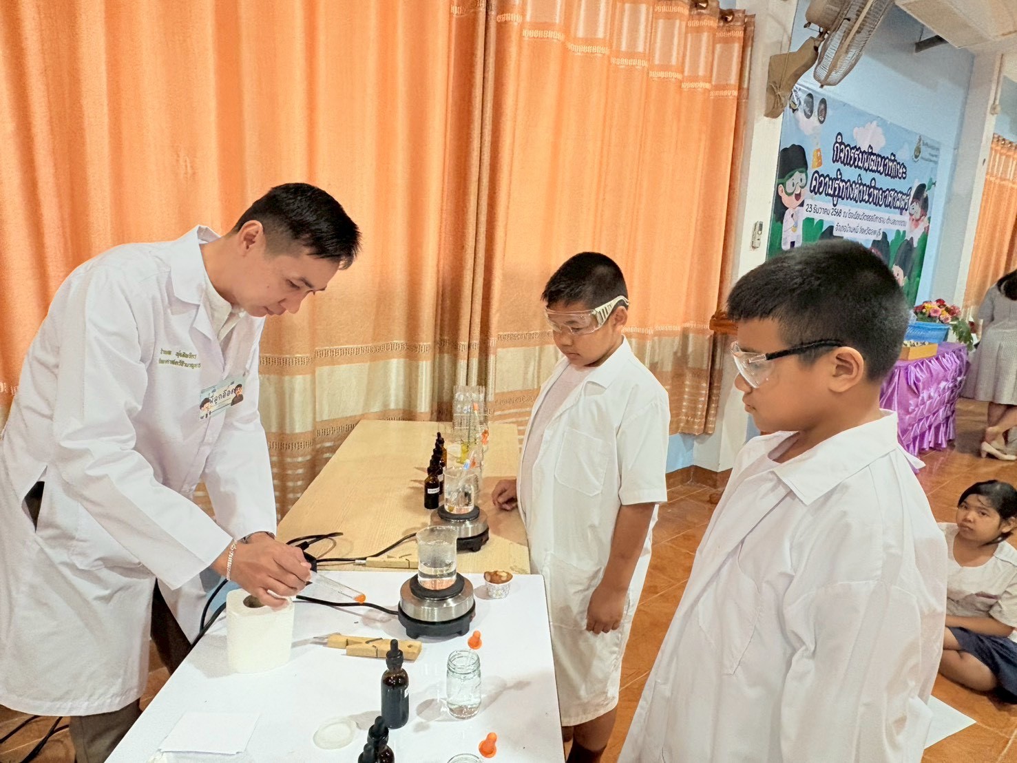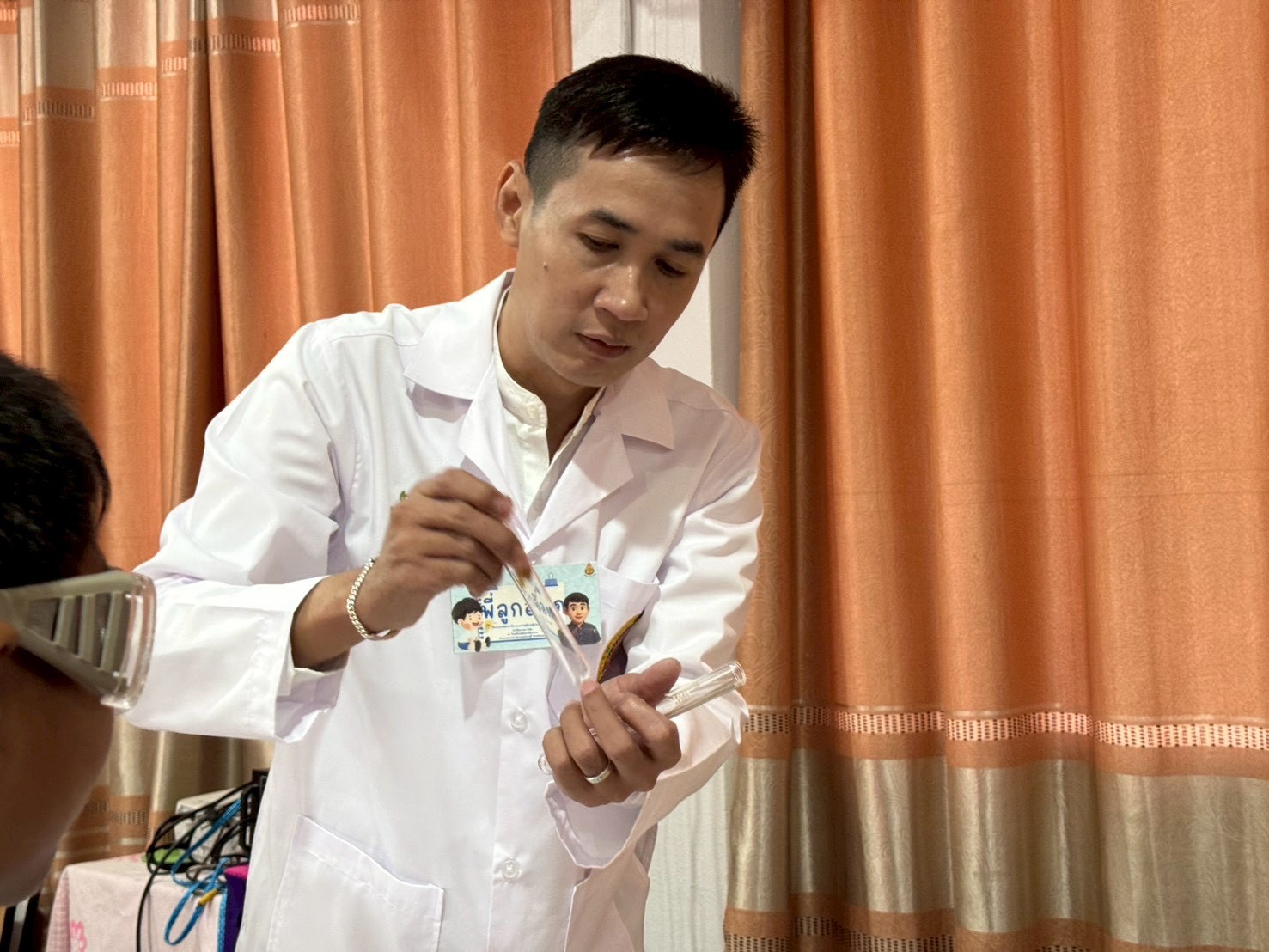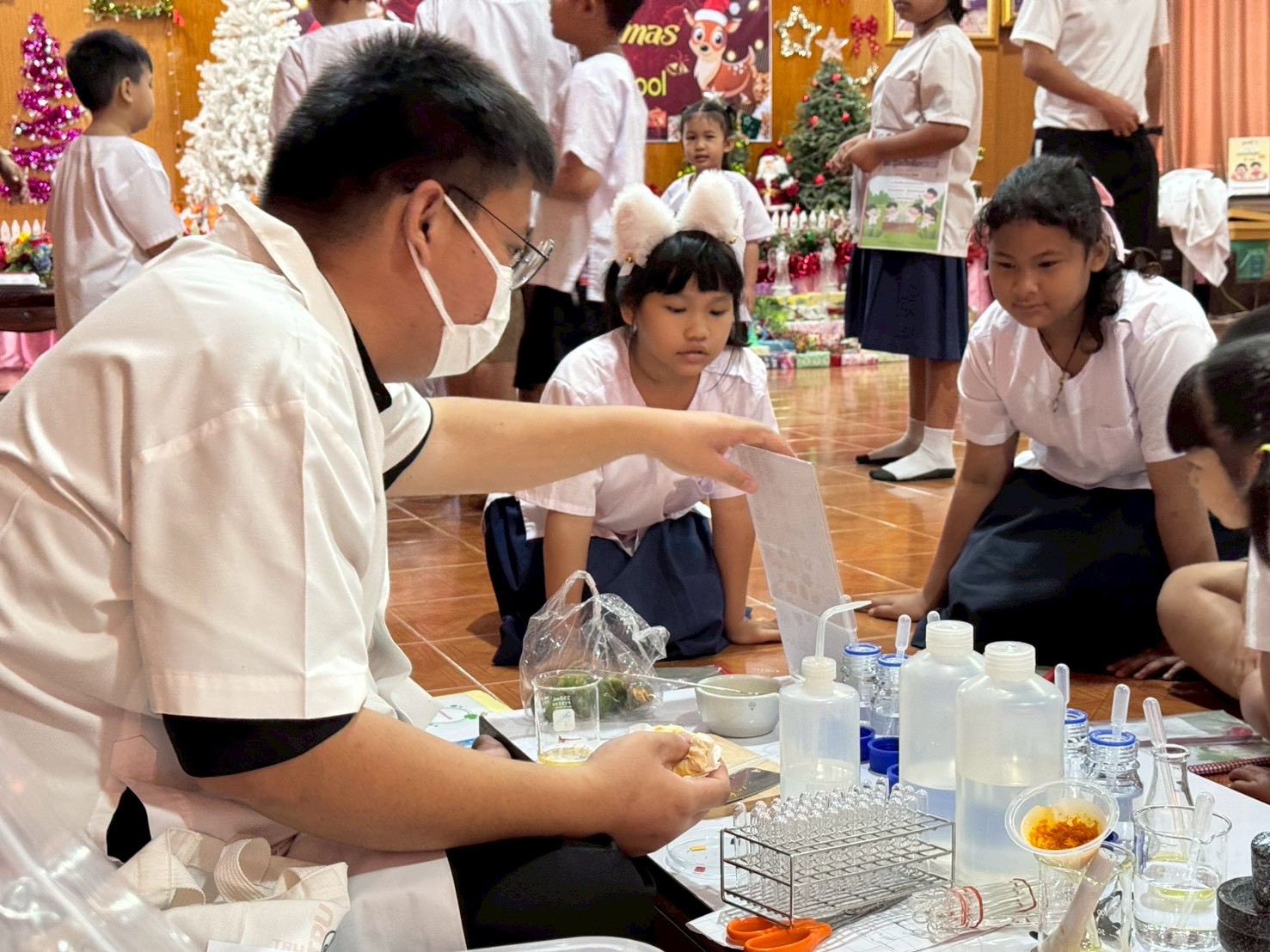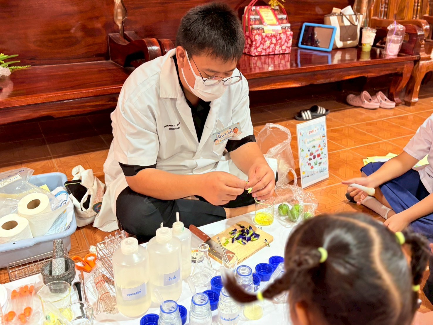 ฐานที่ 4 กิจกรรมสีสันแห่งธรรมชาติ ผู้รับผิดชอบกิจกรรมคือ นายธนวัฒน์ ชัยทาน นักวิทยาศาสตร์