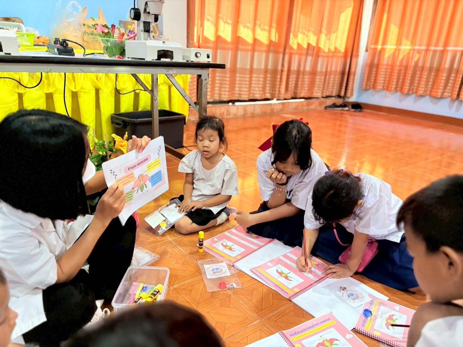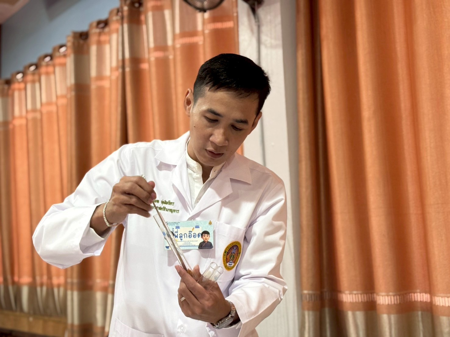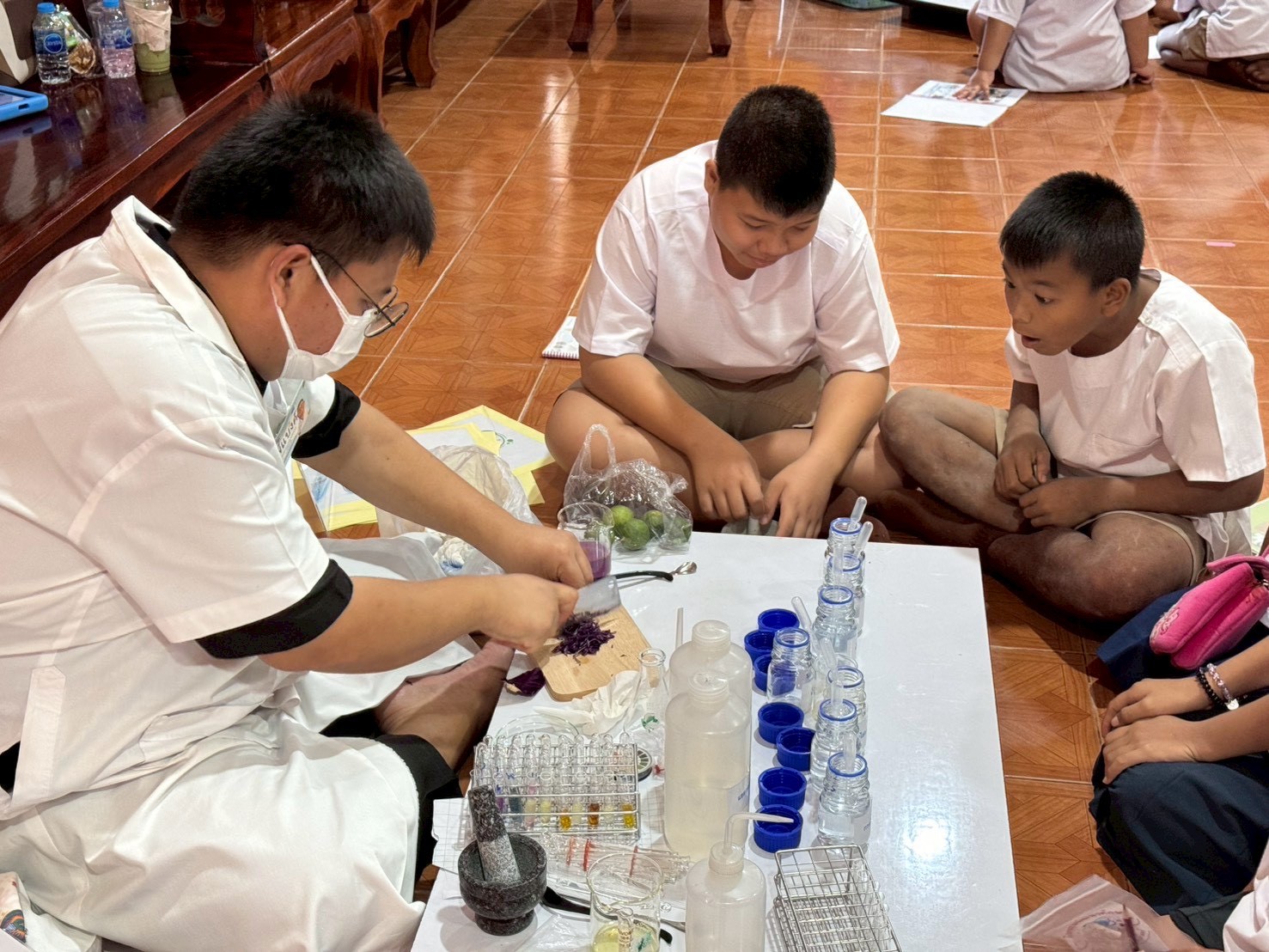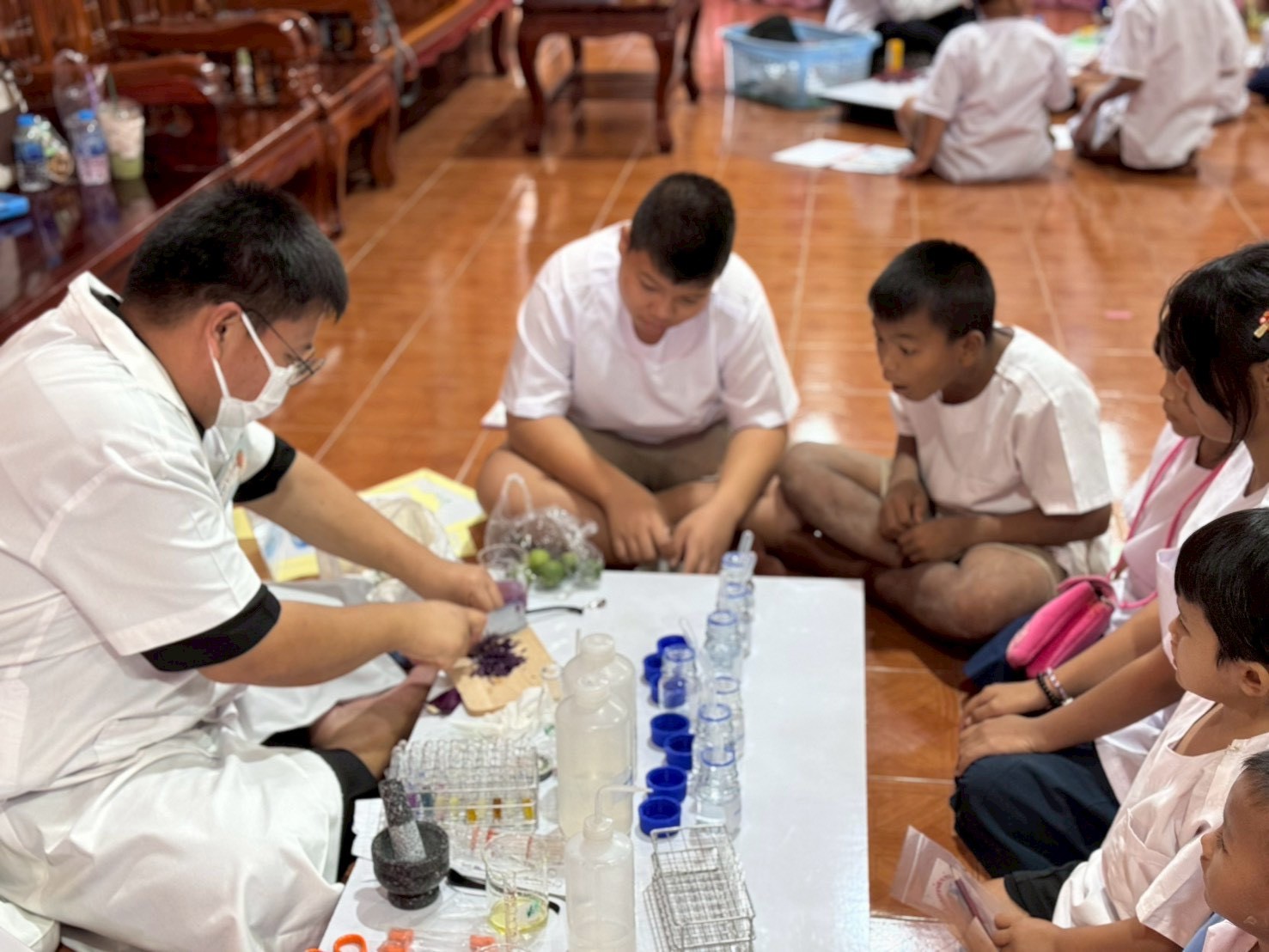 ฐานที่ 4 กิจกรรมสีสันแห่งธรรมชาติ ผู้รับผิดชอบกิจกรรมคือ นายธนวัฒน์ ชัยทาน นักวิทยาศาสตร์