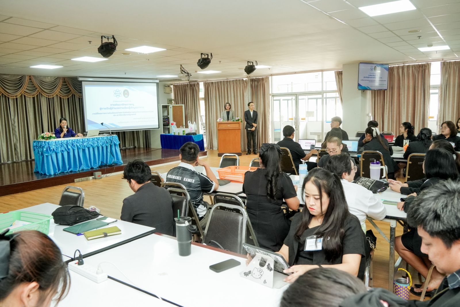 เมื่อวันที่ 23 เมษายน พ.ศ. 2569 ณ ห้องประชุม ชั้น 3 อาคาร 80 ปีฯ ผศ.ดร.กันยา บาร์นท์ อธิการบดีมหาวิทยาลัยราชภัฏเทพสตรี เป็นประธานพิธีเปิดการอบรมเชิงปฏิบัติการ “การพัฒนาศักยภาพครูสู่การเป็นผู้อำนวยการเรียนรู้เชิงบูรณาการ (Integrated Learning Facilitator)” ซึ่งเป็นโครงการภายใต้ความร่วมมือระหว่างสถาบันส่งเสริมการสอนวิทยาศาสตร์และเทคโนโลยี (สสวท.) กับ มหาวิทยาลัยราชภัฏเทพสตรี ที่ได้จัดกิจกรรมต่อเนื่องเป็นปีที่ 2 สำหรับการอบรมครั้งนี้มุ่งเน้นให้ครูผู้สอนระดับชั้นมัธยมศึกษาตอนต้น ในกลุ่มสาระการเรียนรู้วิทยาศาสตร์ คณิตศาสตร์ และเทคโนโลยี จากสถานศึกษาในจังหวัดลพบุรี สิงห์บุรี และสระบุรี ที่เข้าร่วมการอบรม จำนวน 154 คน ได้มีความรู้ความเข้าใจในการจัดการเรียนที่มุ่งเน้นผู้เรียนเป็นสำคัญ สามารถจัดการเรียนรู้เชิงรุกได้อย่างมีประสิทธิภาพ เกิดการพัฒนาทักษะและเทคนิคของครูให้สามารถปรับบทบาทจาก “ผู้ถ่ายทอดความรู้” ไปสู่ “ผู้อำนวยการเรียนรู้” ซึ่งสอดคล้องกับการปฏิรูปการศึกษาในศตวรรษที่ 21 โดยมี ทีมคณาจารย์จากคณะวิทยาศาสตร์และเทคโนโลยี มหาวิทยาลัยราชภัฏเทพสตรี เป็นวิทยากรการอบรม