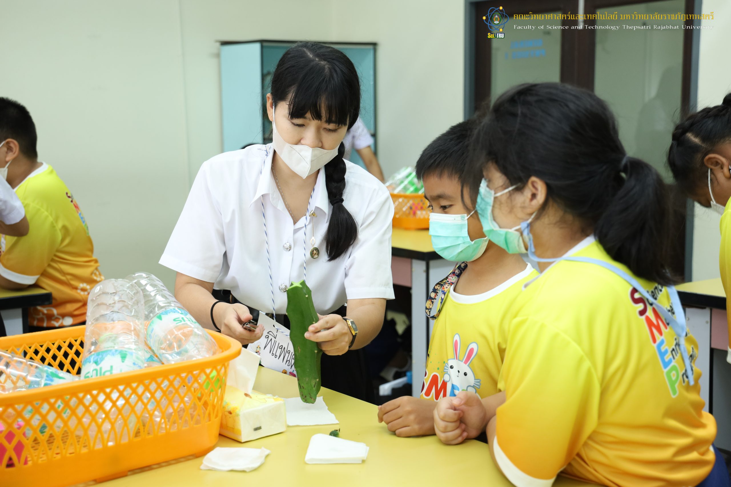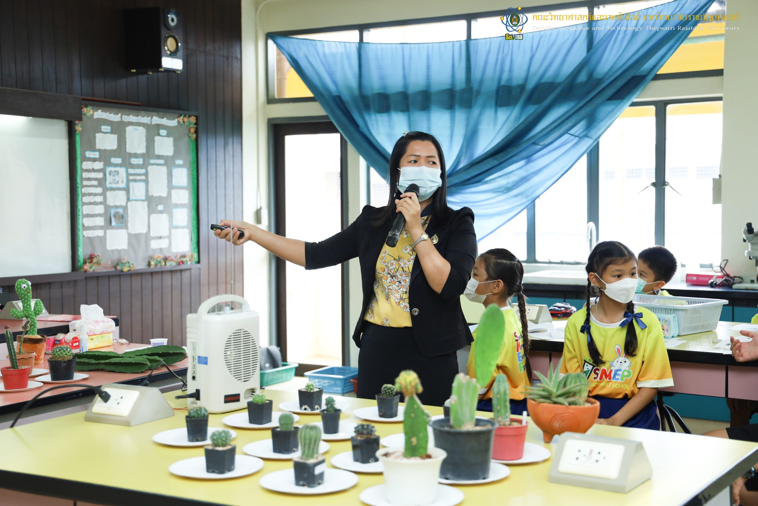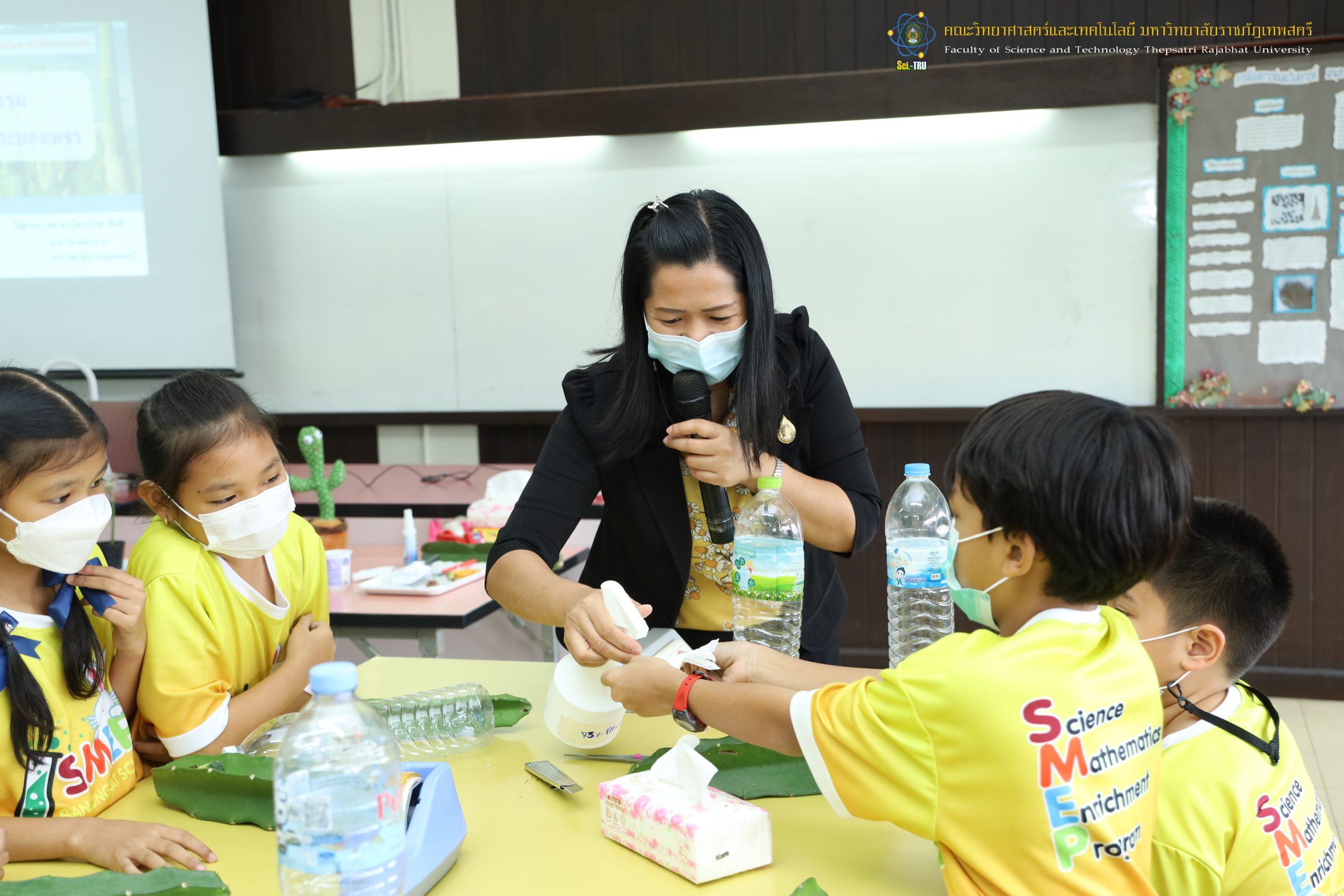 คณะวิทยาศาสตร์และเทคโนโลยี มหาวิทยาลัยราชภัฏเทพสตรีร่วมกับโรงเรียนบรรจงรัตน์ “โครงการ SMEP ” ในวันที่ 5 สิงหาคม 2565 เป็นการจัดกิจกรรมให้กับ นักเรียนชั้นประถมศึกษาปีที่ 4 กิจกรรมที่ 3 กิจกรรมการตัดต่อกระบองเพชร วิทยากรได้รับเกียรติจาก ผศ.ดร.ปิยวรรณ พันสี อาจารย์ประจำสาขาวิชาเคมี ค.บ. คณะวิทยาศาสตร์และเทคโนโลยี มหาวิทยาลัยราชภัฏเทพสตรี ณ ห้อง 9/201 ศูนย์วิทยาศาสตร์