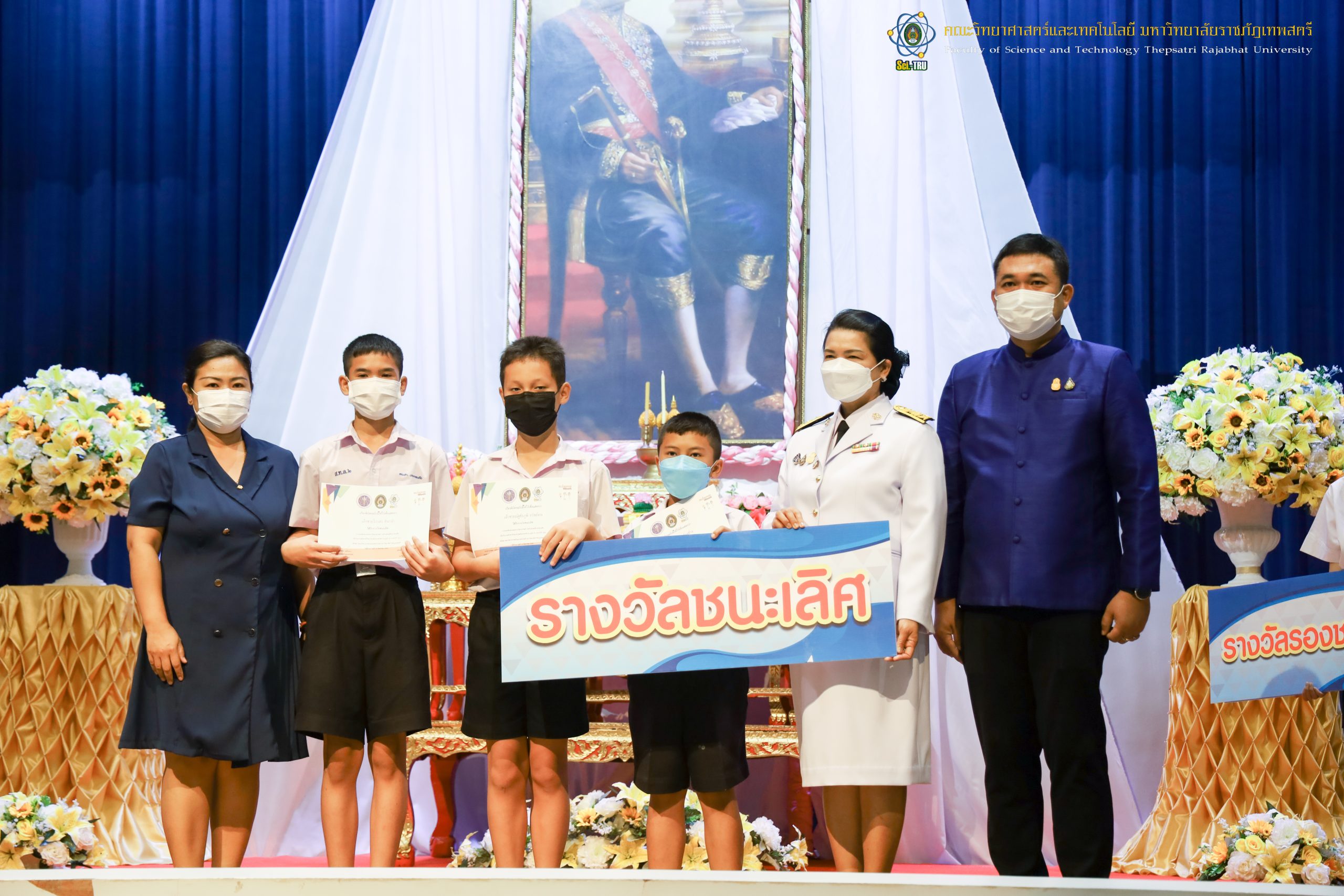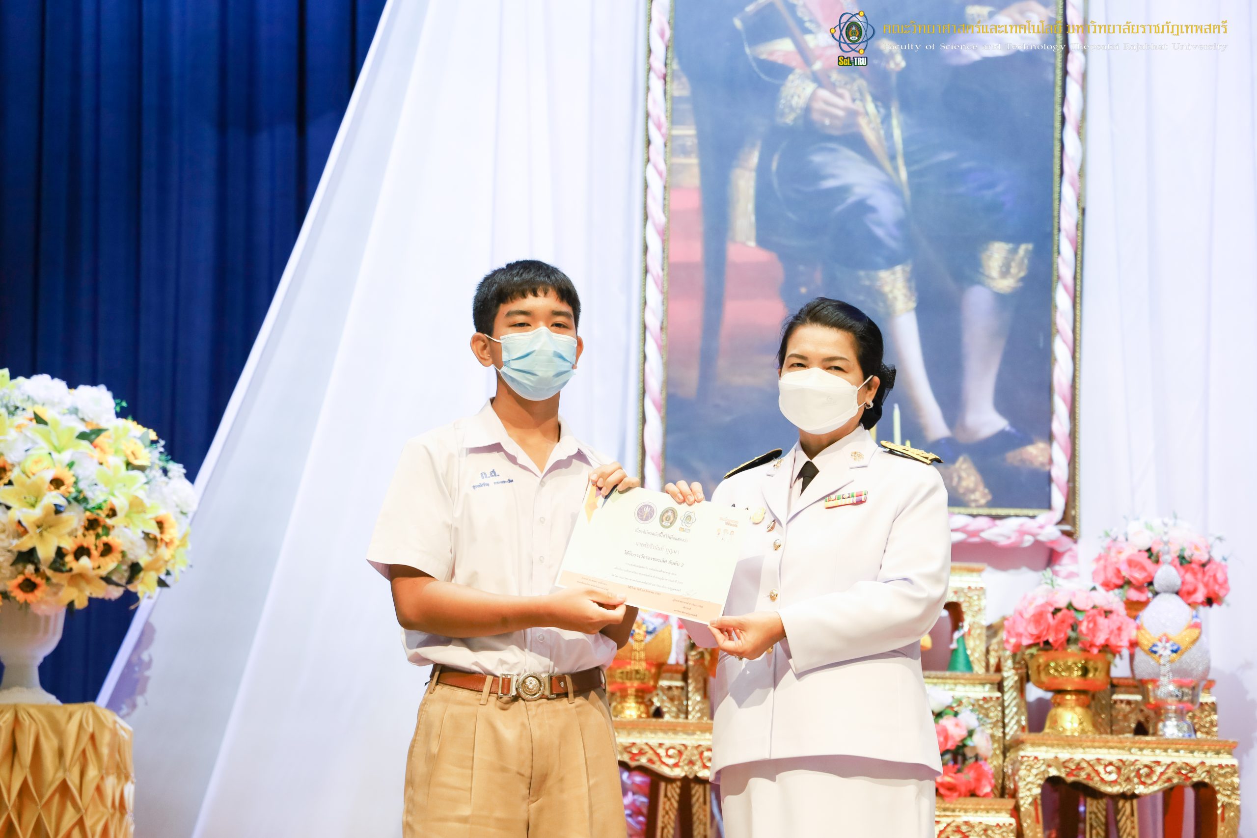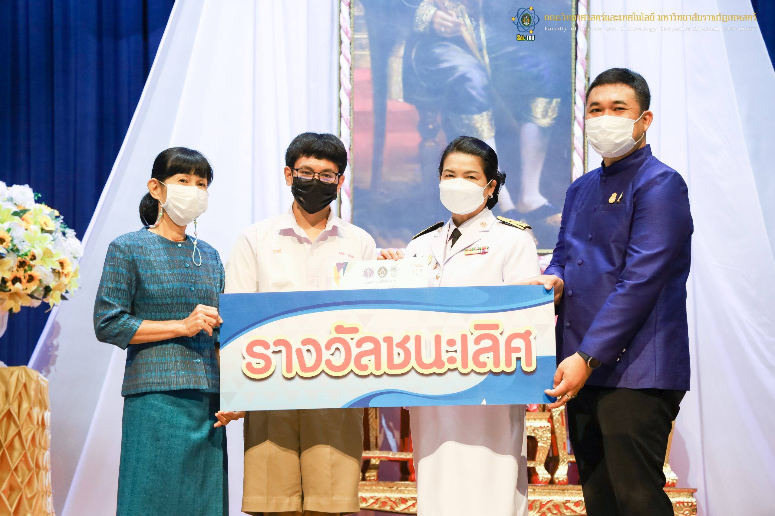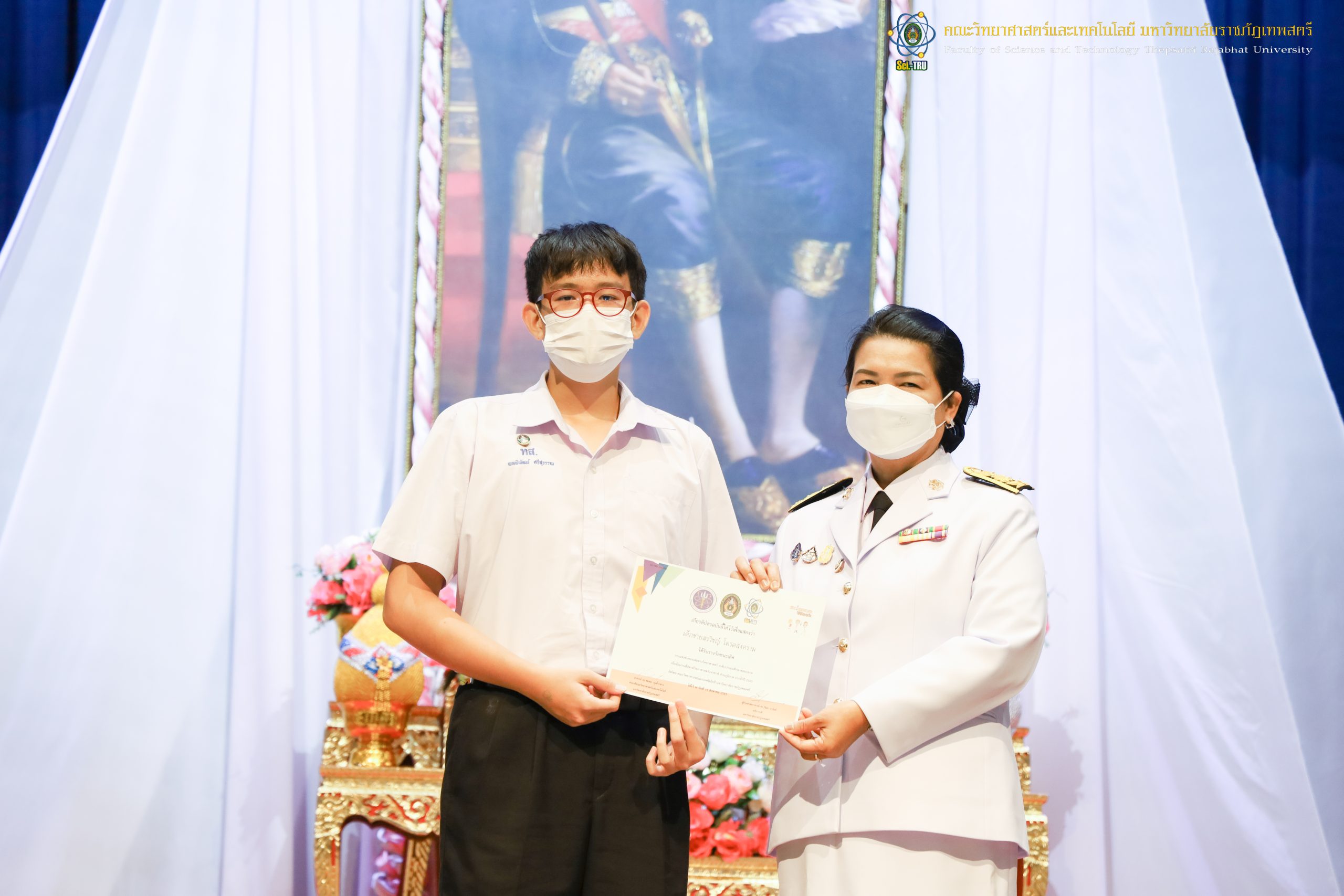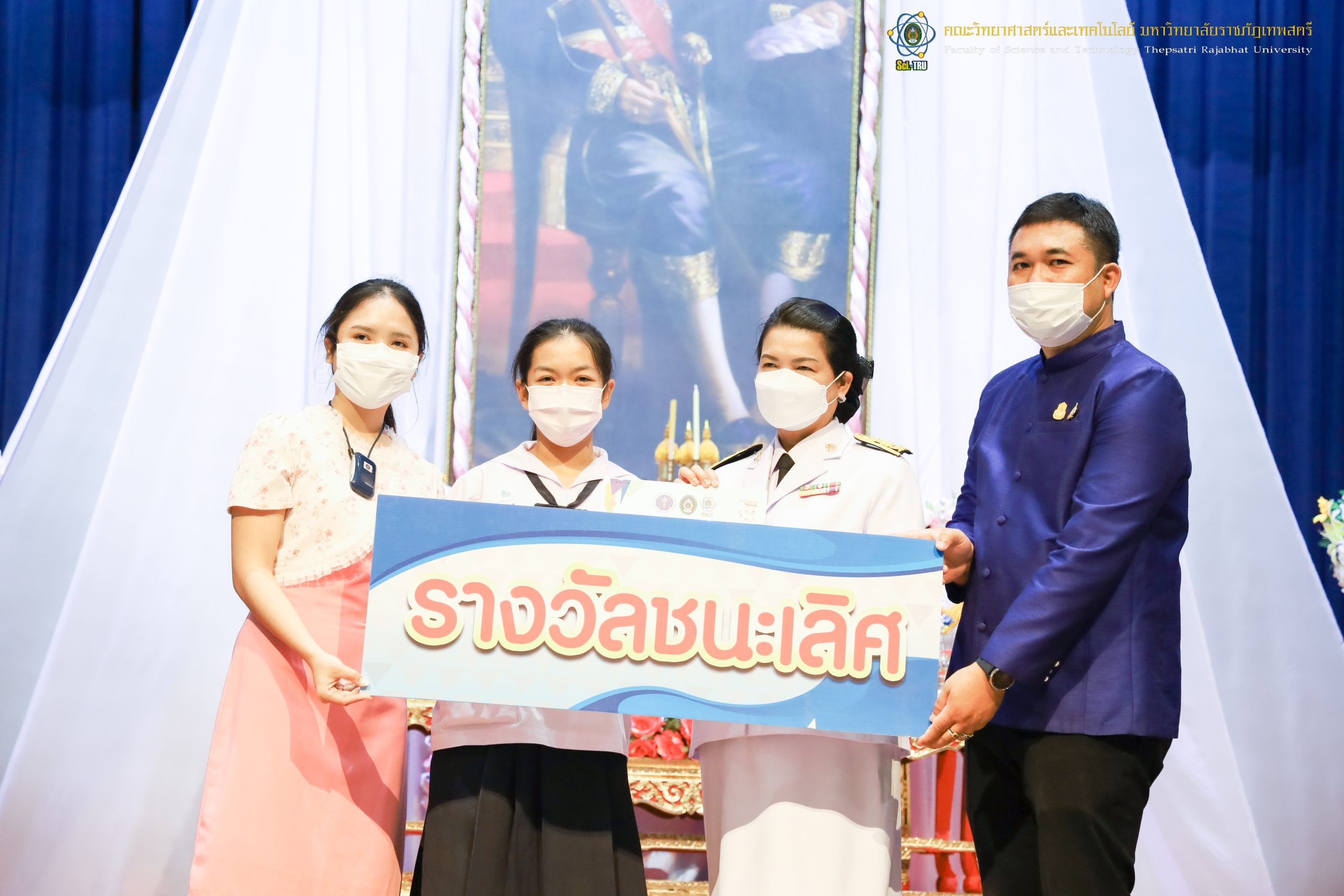 จากนั้น ผศ.ดร.กันยา บาร์นท์ อธิการบดีมหาวิทยาลัยราชภัฏเทพสตรี ได้ให้เกียรติเป็นประธานในพิธีมอบประกาศนียบัตรแก่นักเรียนที่ได้รับรางวัลจากการประกวดแข่งขันประเภทต่าง ๆ ในงานสัปดาห์วิทยาศาสตร์แห่งชาติ ส่วนภูมิภาค ประจำปี 2565 ด้วย