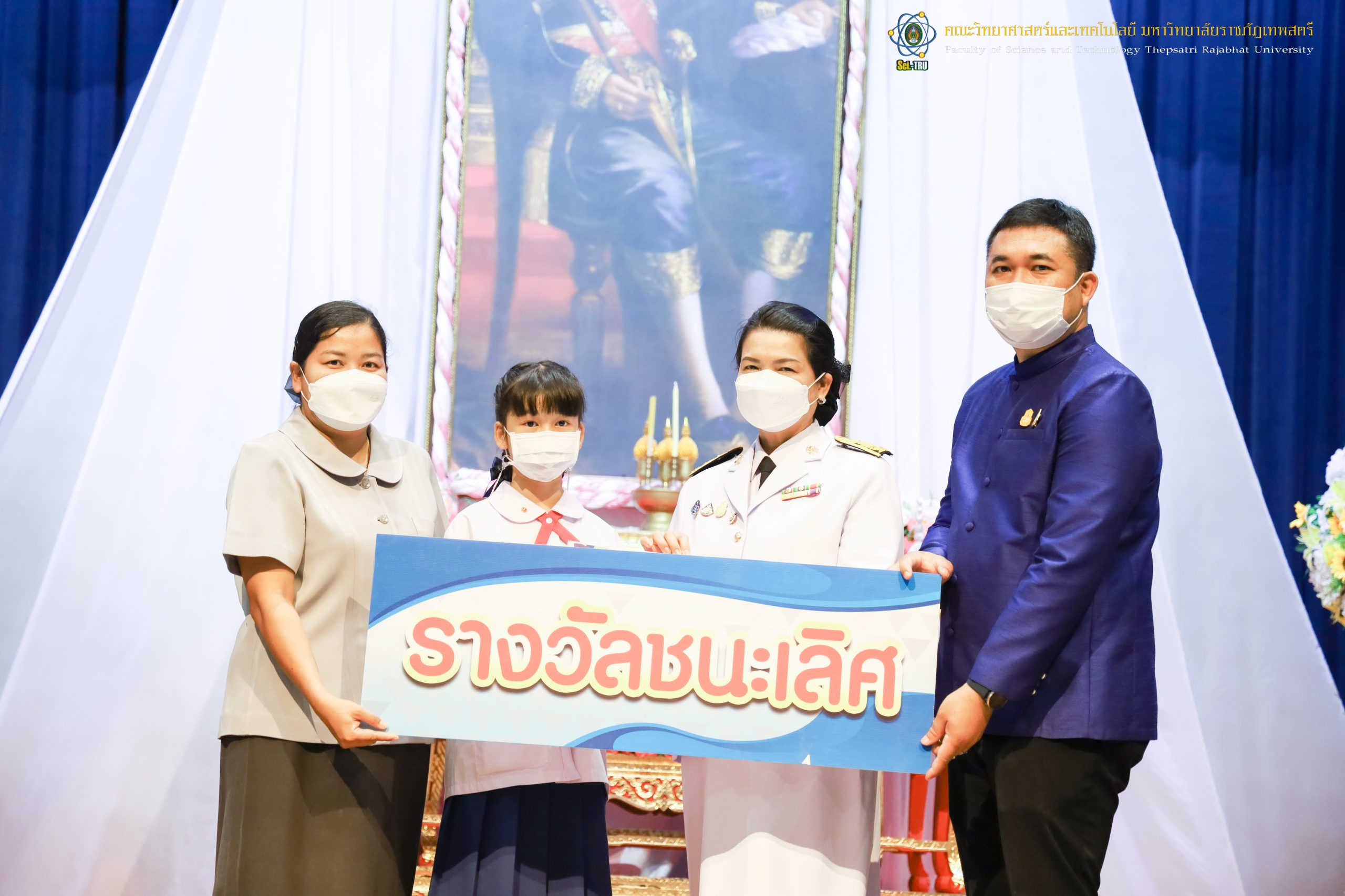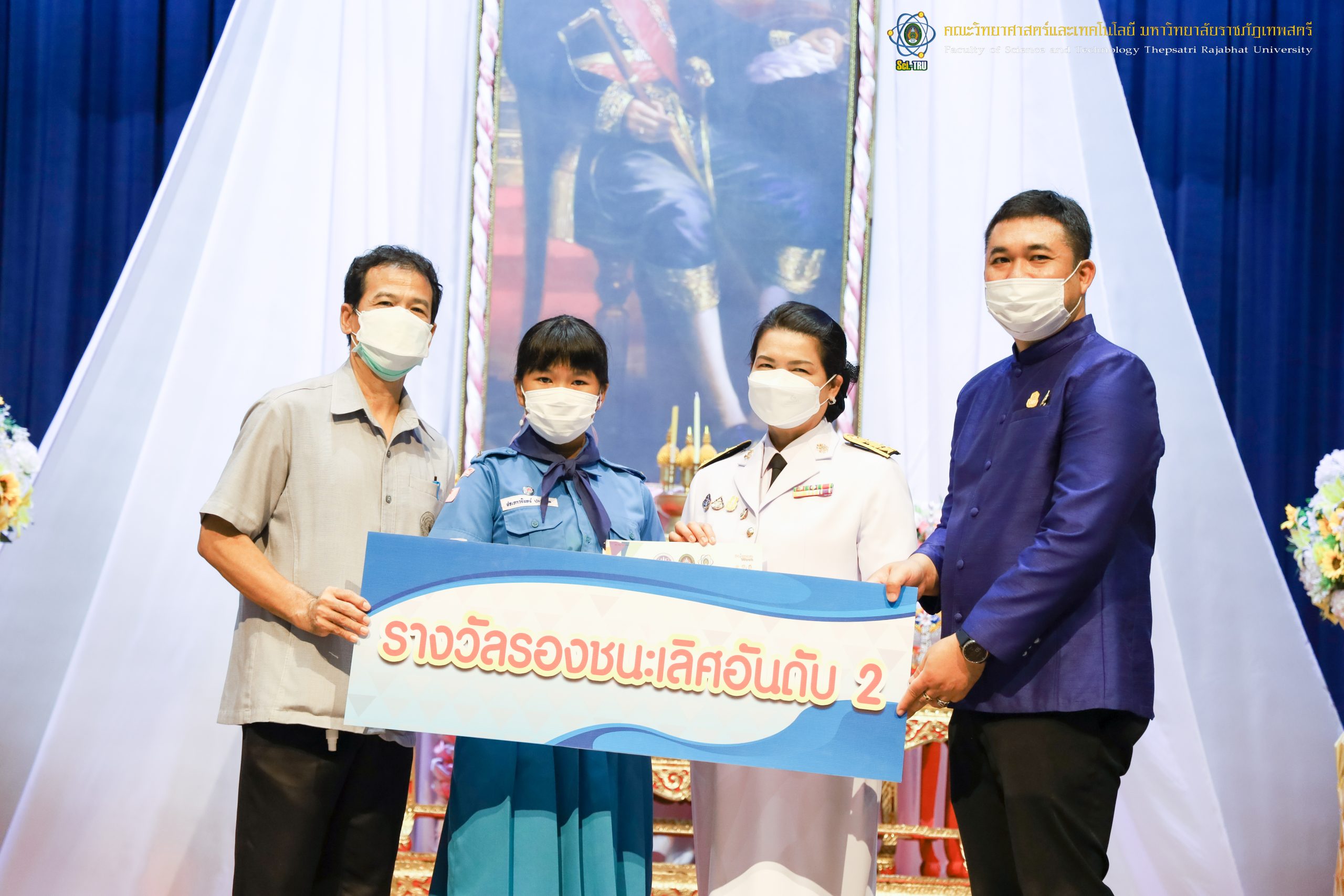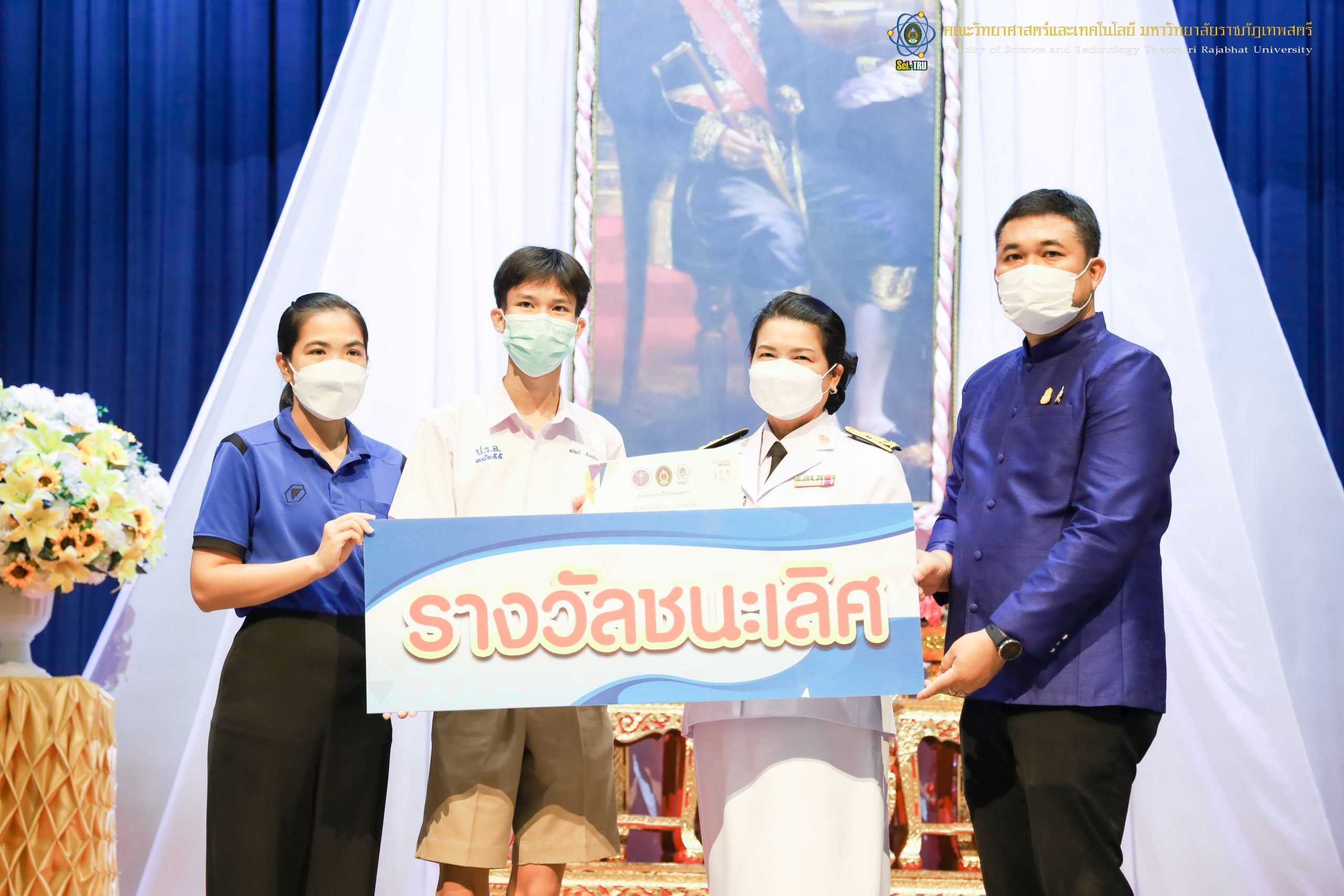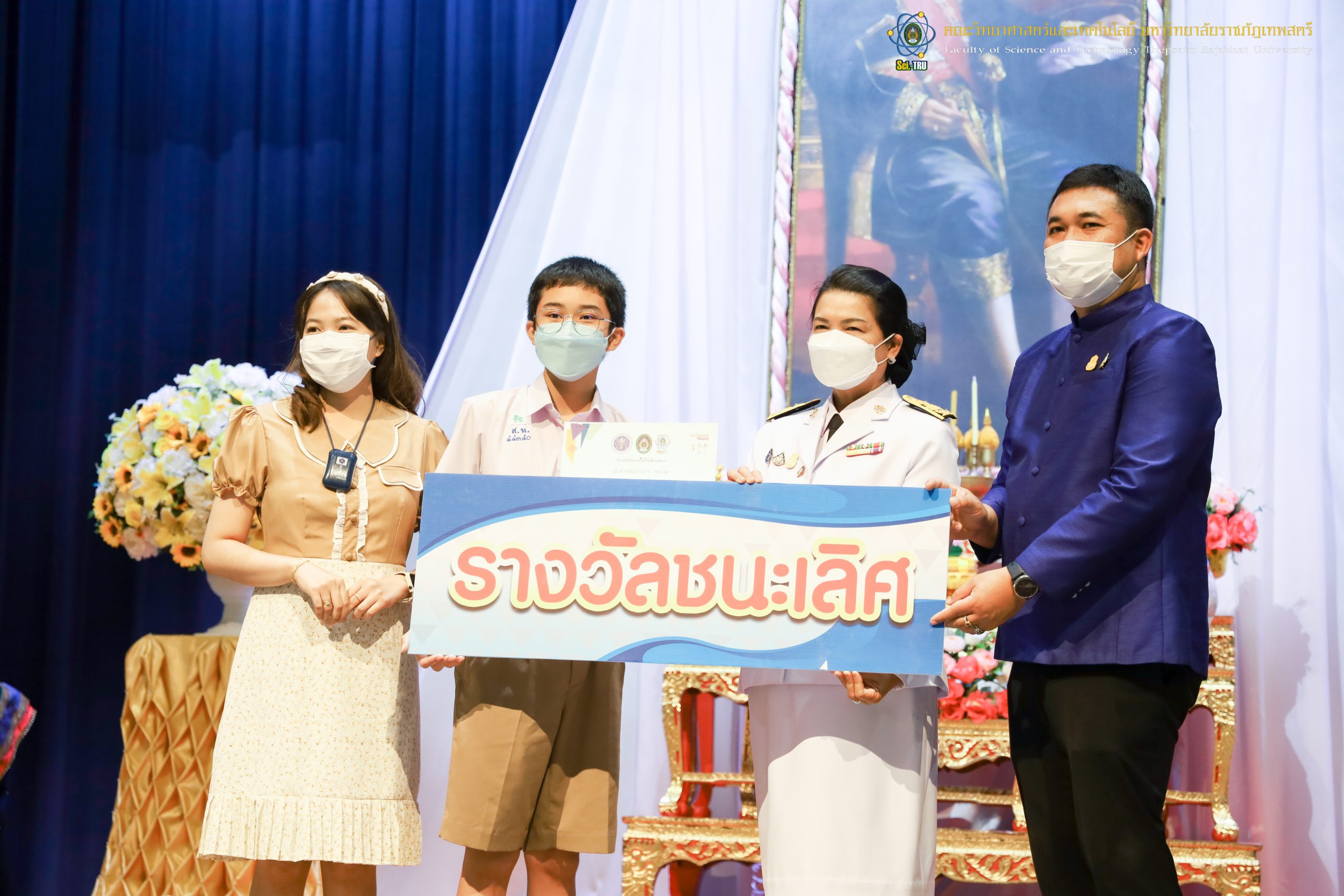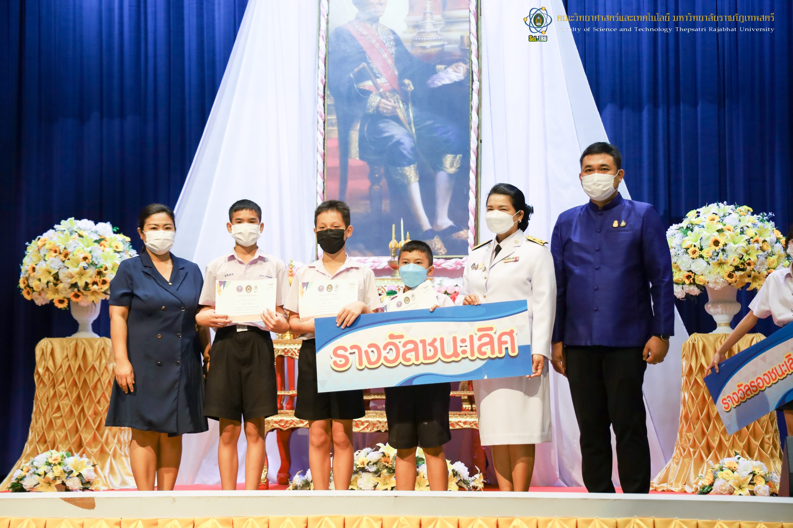 จากนั้น ผศ.ดร.กันยา บาร์นท์ อธิการบดีมหาวิทยาลัยราชภัฏเทพสตรี ได้ให้เกียรติเป็นประธานในพิธีมอบประกาศนียบัตรแก่นักเรียนที่ได้รับรางวัลจากการประกวดแข่งขันประเภทต่าง ๆ ในงานสัปดาห์วิทยาศาสตร์แห่งชาติ ส่วนภูมิภาค ประจำปี 2565 ด้วย