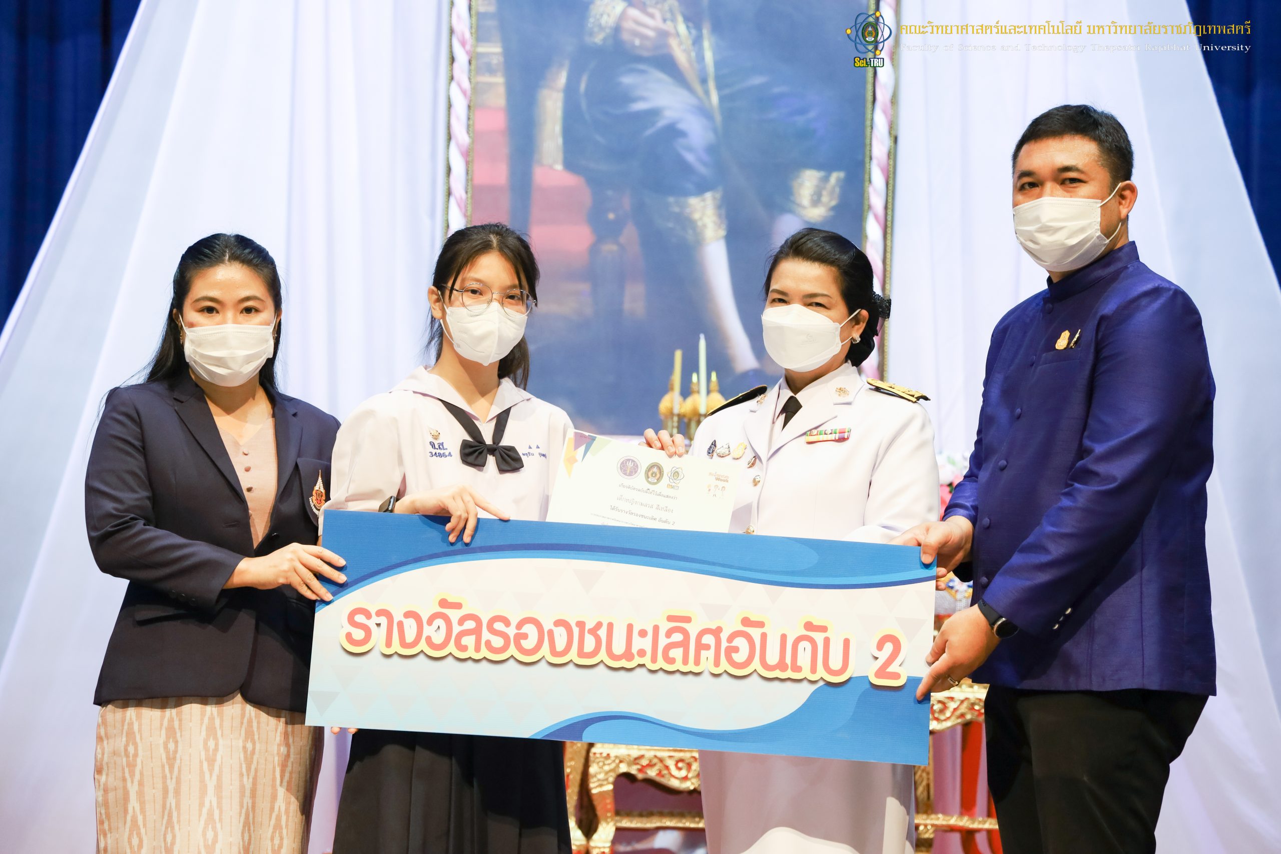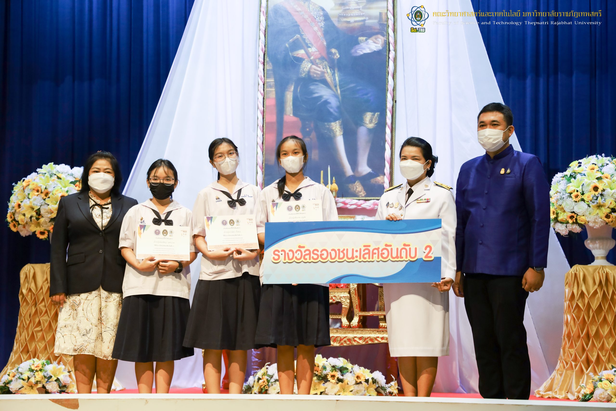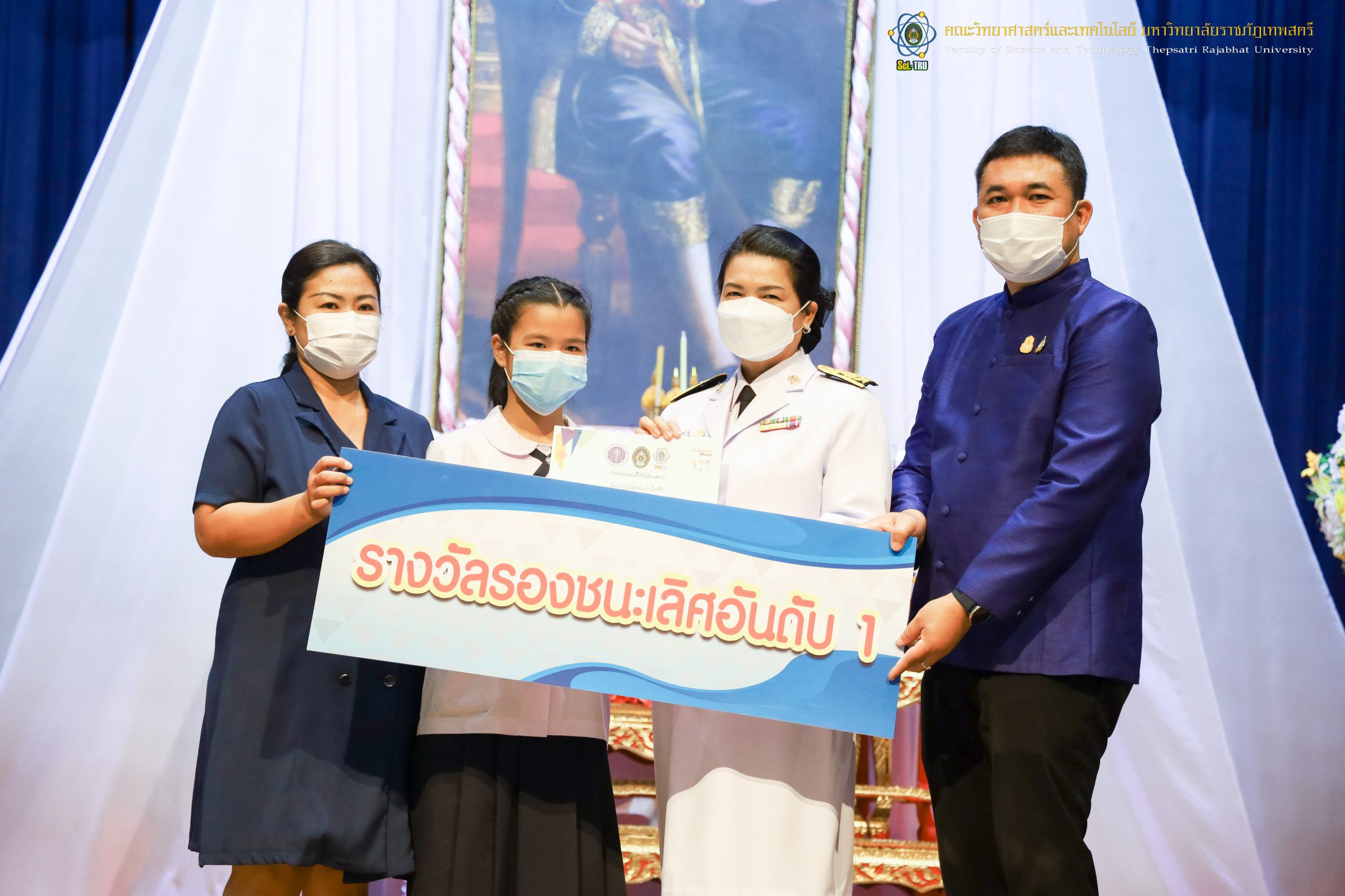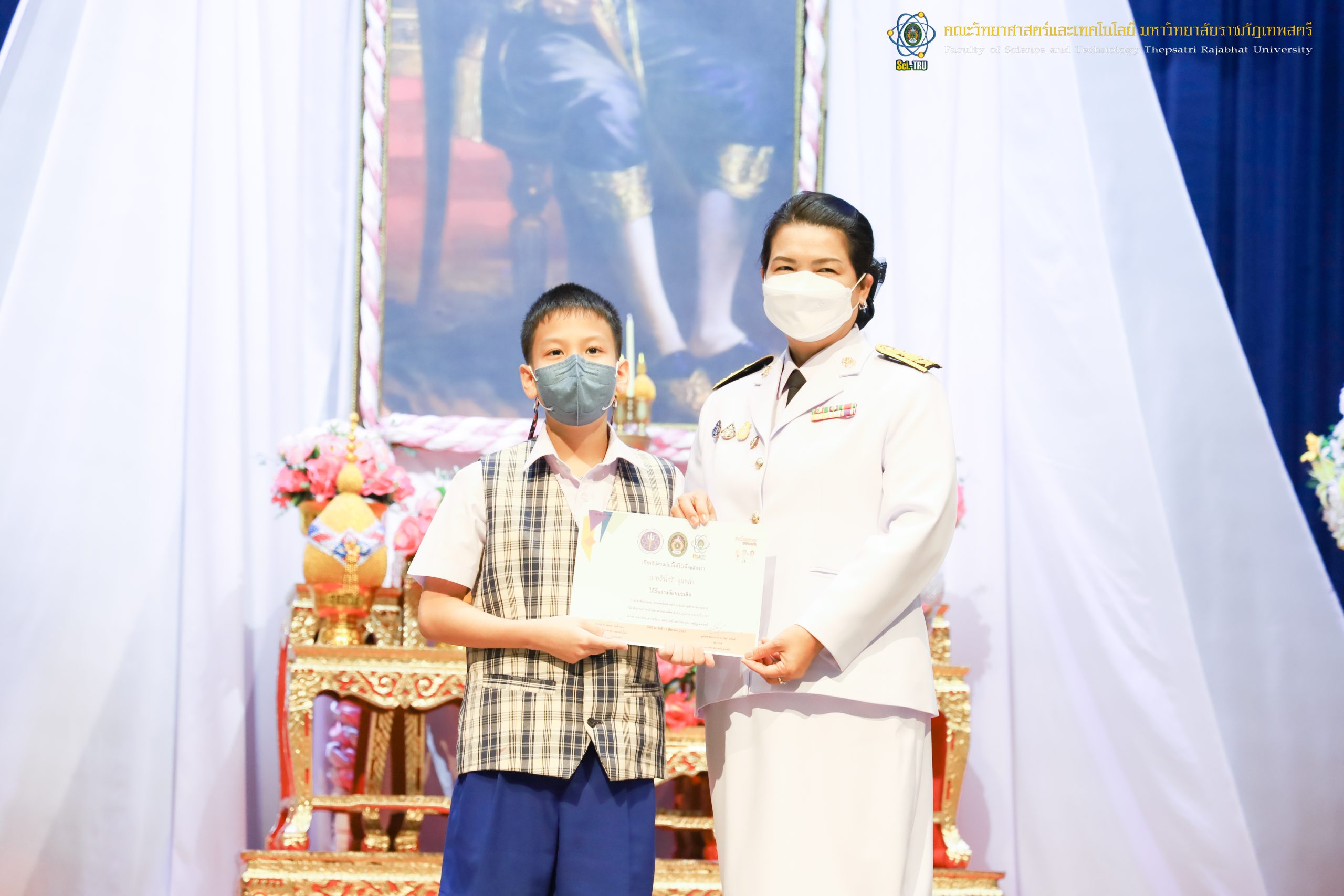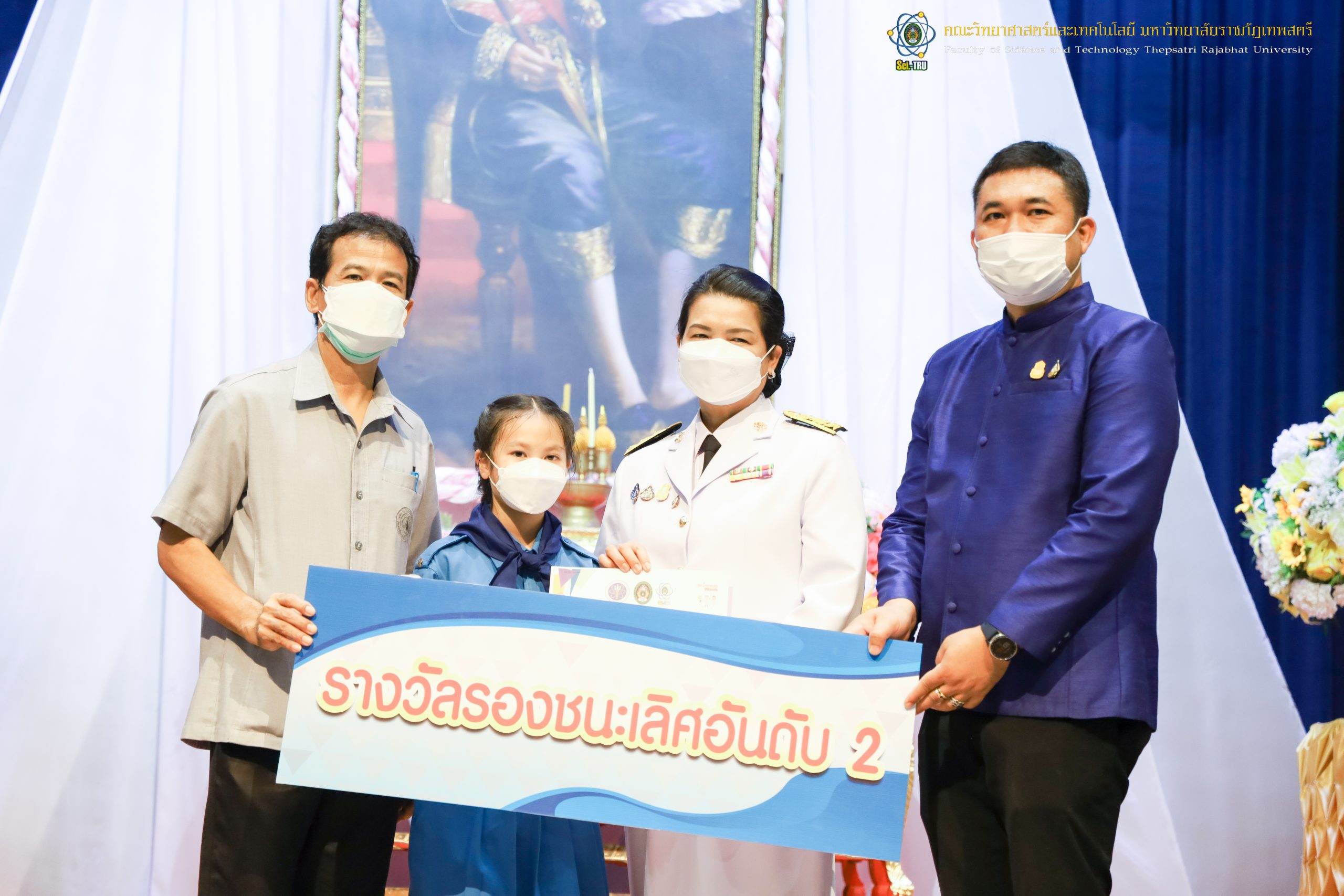 จากนั้น ผศ.ดร.กันยา บาร์นท์ อธิการบดีมหาวิทยาลัยราชภัฏเทพสตรี ได้ให้เกียรติเป็นประธานในพิธีมอบประกาศนียบัตรแก่นักเรียนที่ได้รับรางวัลจากการประกวดแข่งขันประเภทต่าง ๆ ในงานสัปดาห์วิทยาศาสตร์แห่งชาติ ส่วนภูมิภาค ประจำปี 2565 ด้วย