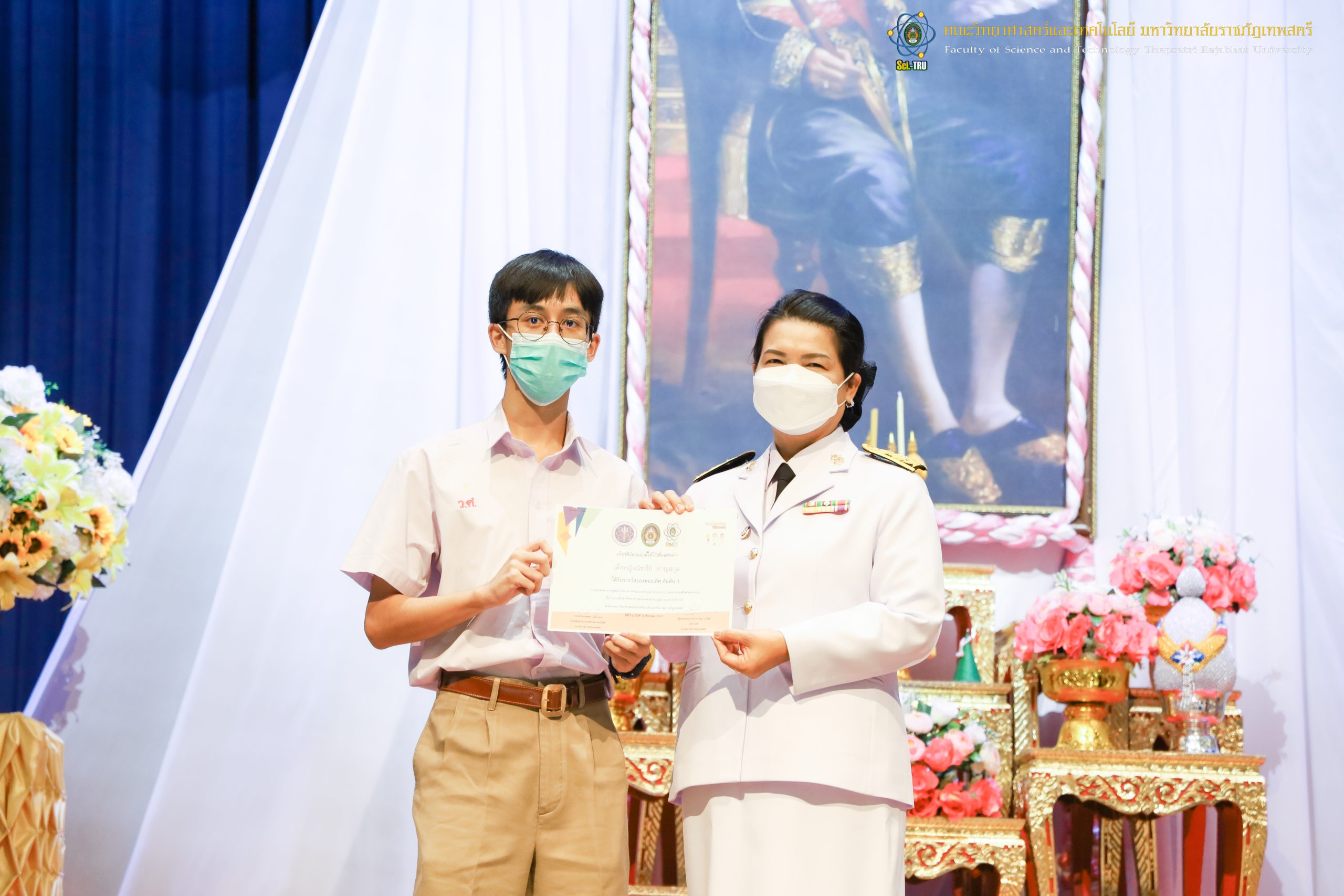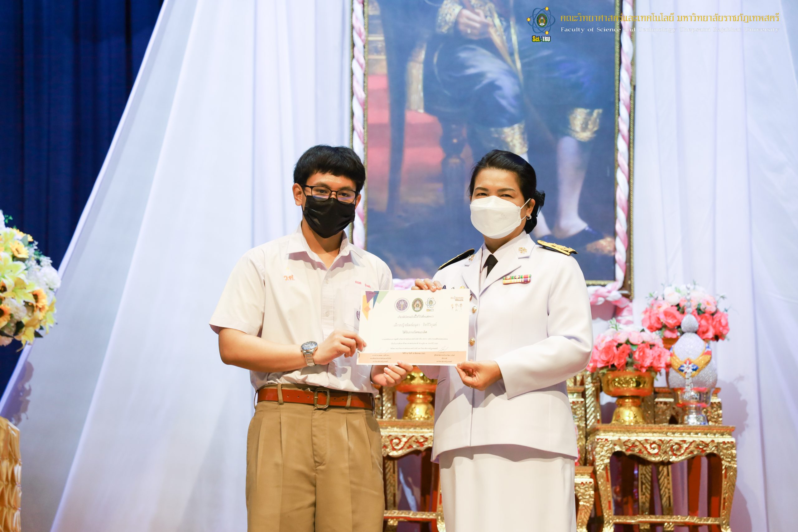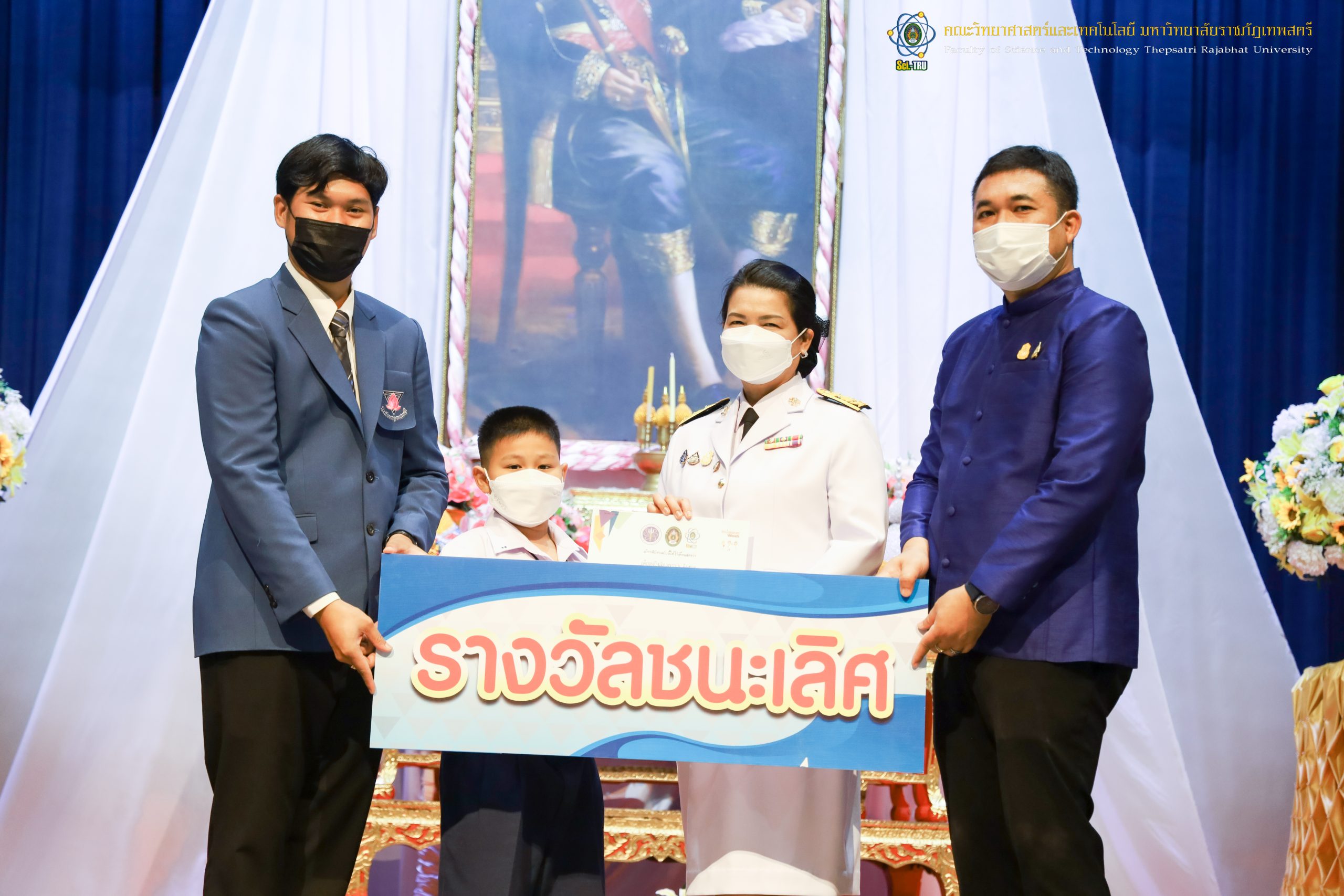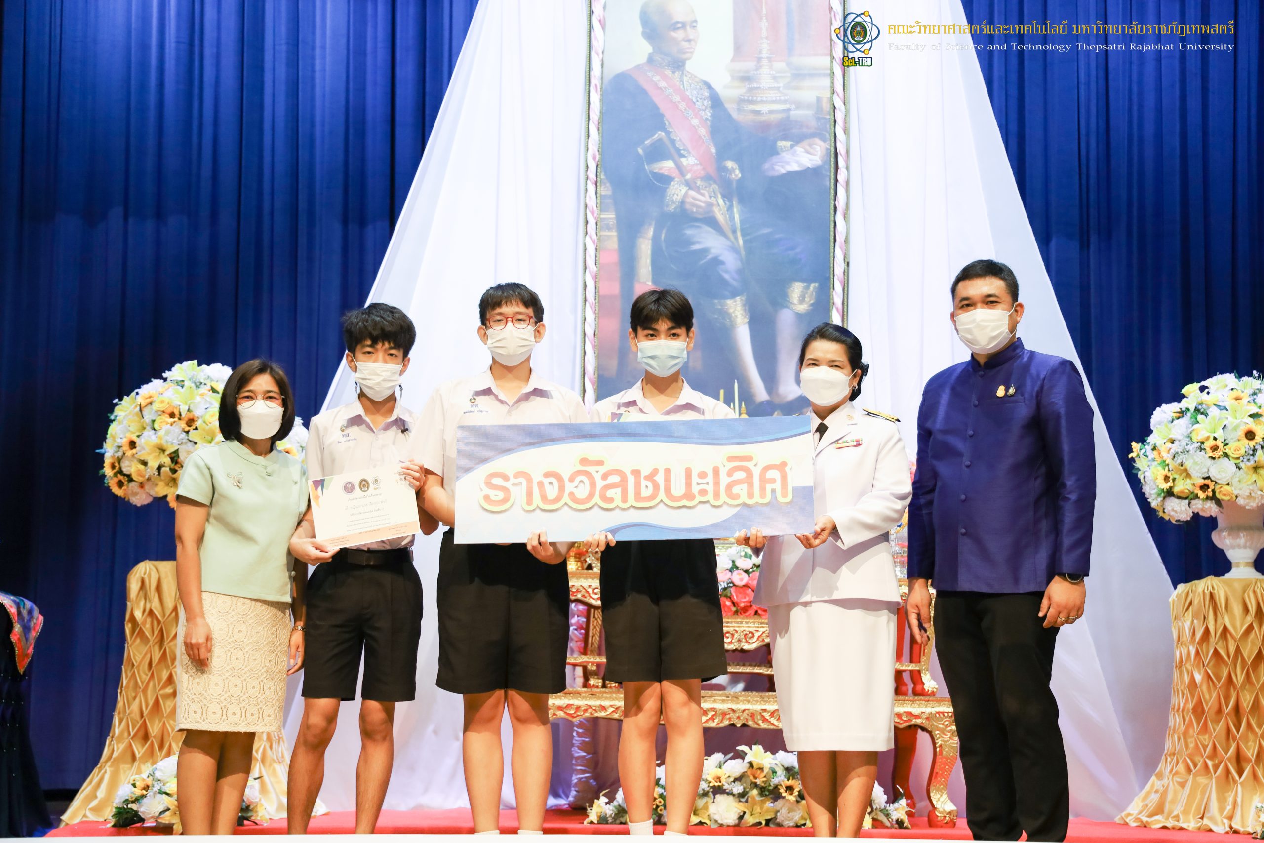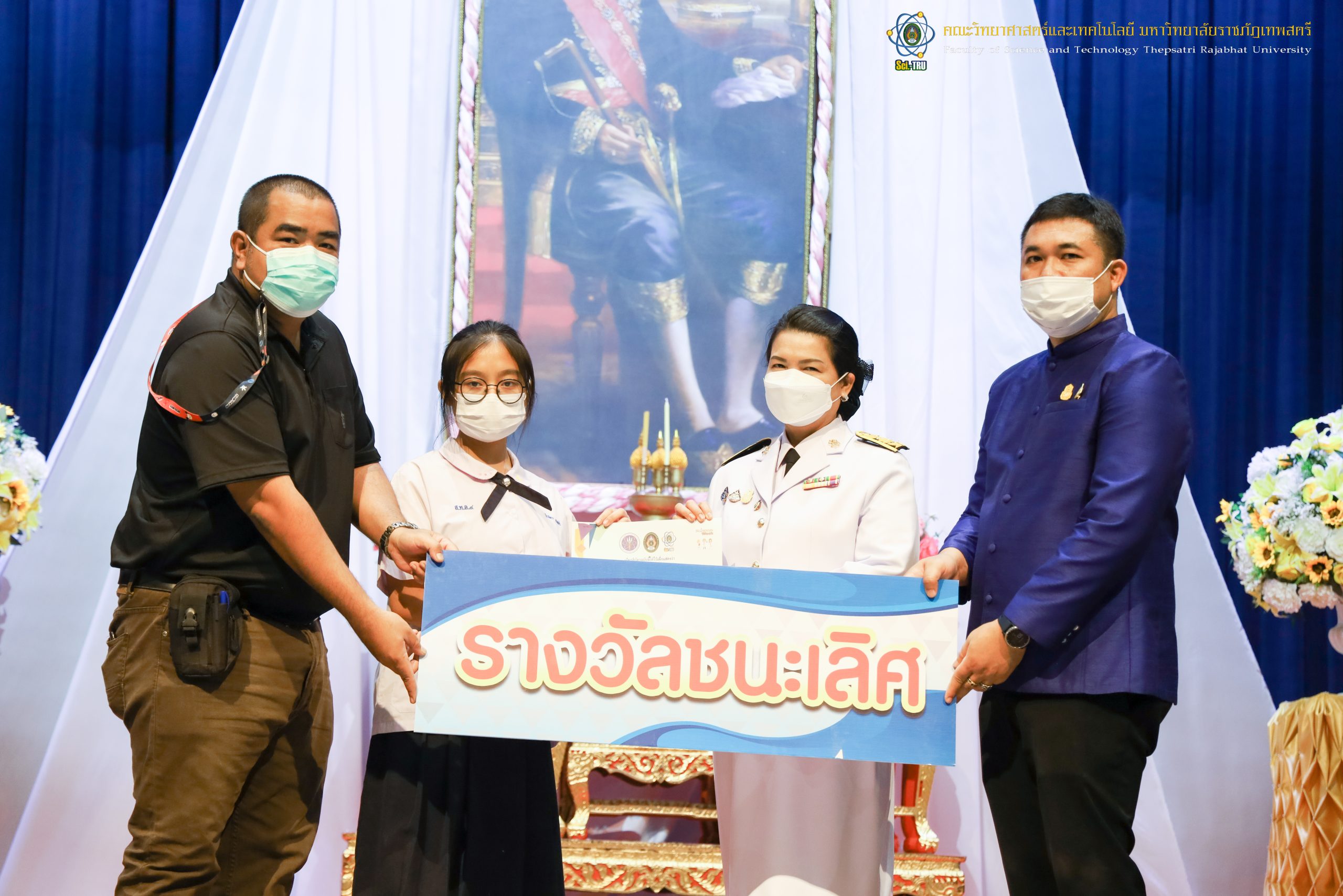 จากนั้น ผศ.ดร.กันยา บาร์นท์ อธิการบดีมหาวิทยาลัยราชภัฏเทพสตรี ได้ให้เกียรติเป็นประธานในพิธีมอบประกาศนียบัตรแก่นักเรียนที่ได้รับรางวัลจากการประกวดแข่งขันประเภทต่าง ๆ ในงานสัปดาห์วิทยาศาสตร์แห่งชาติ ส่วนภูมิภาค ประจำปี 2565 ด้วย