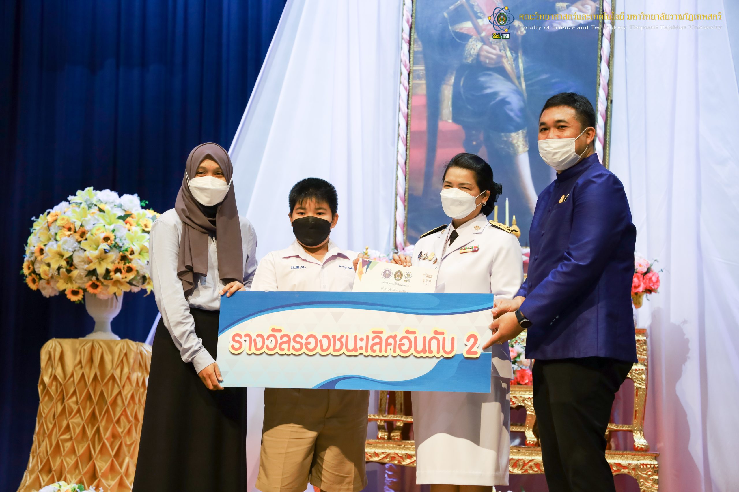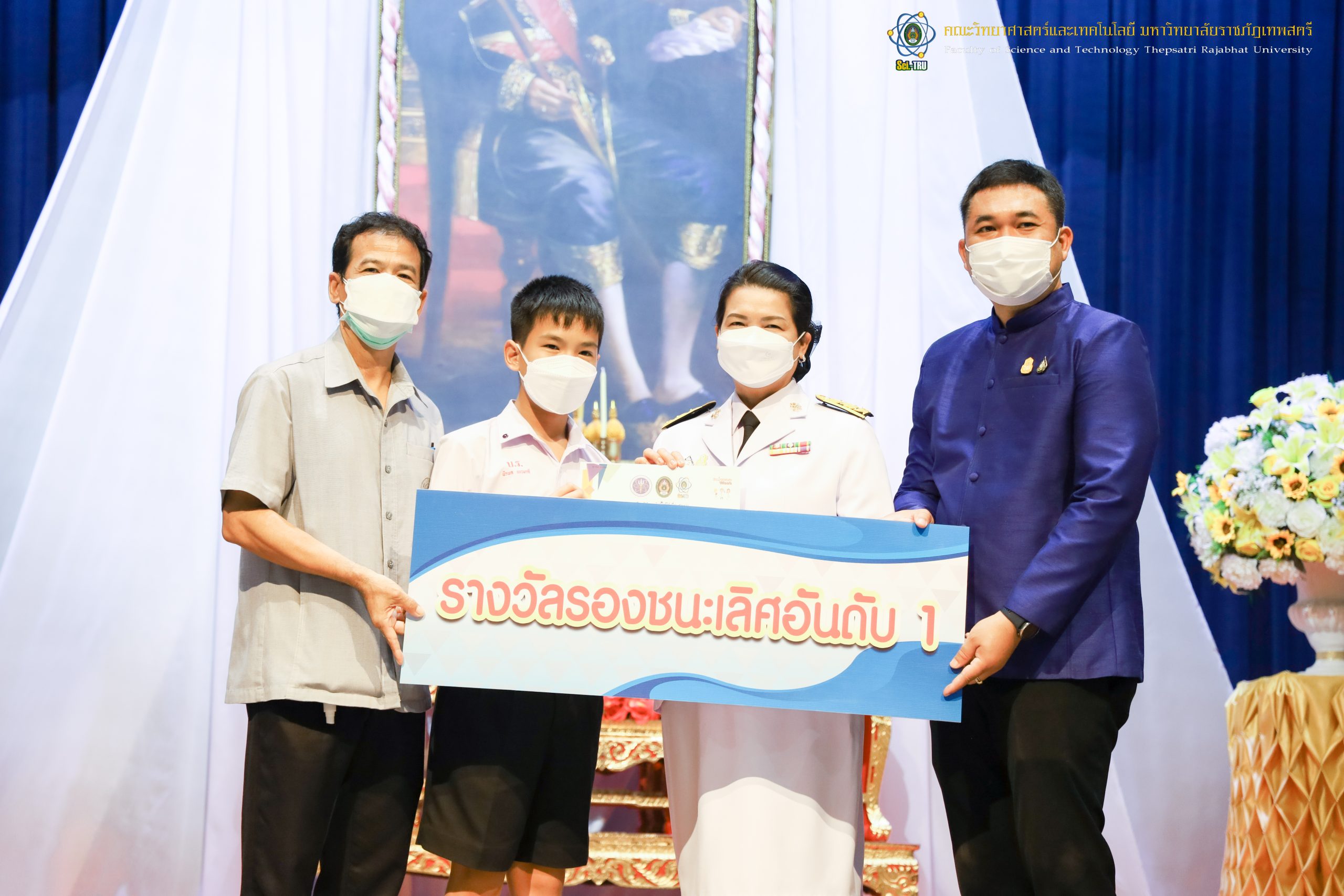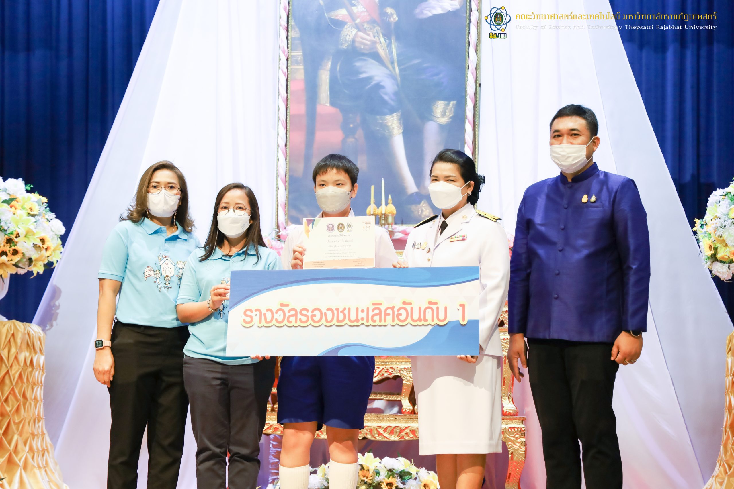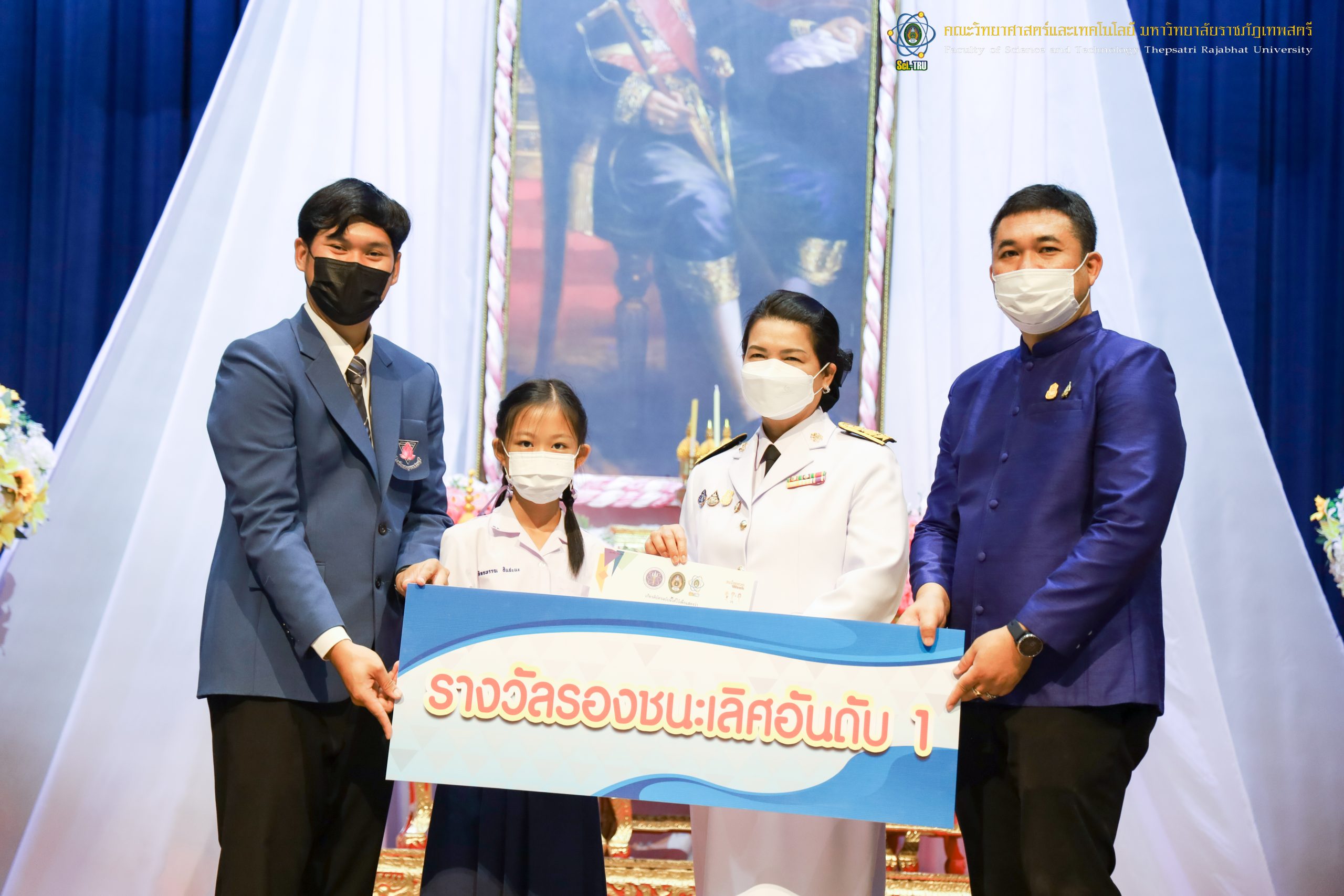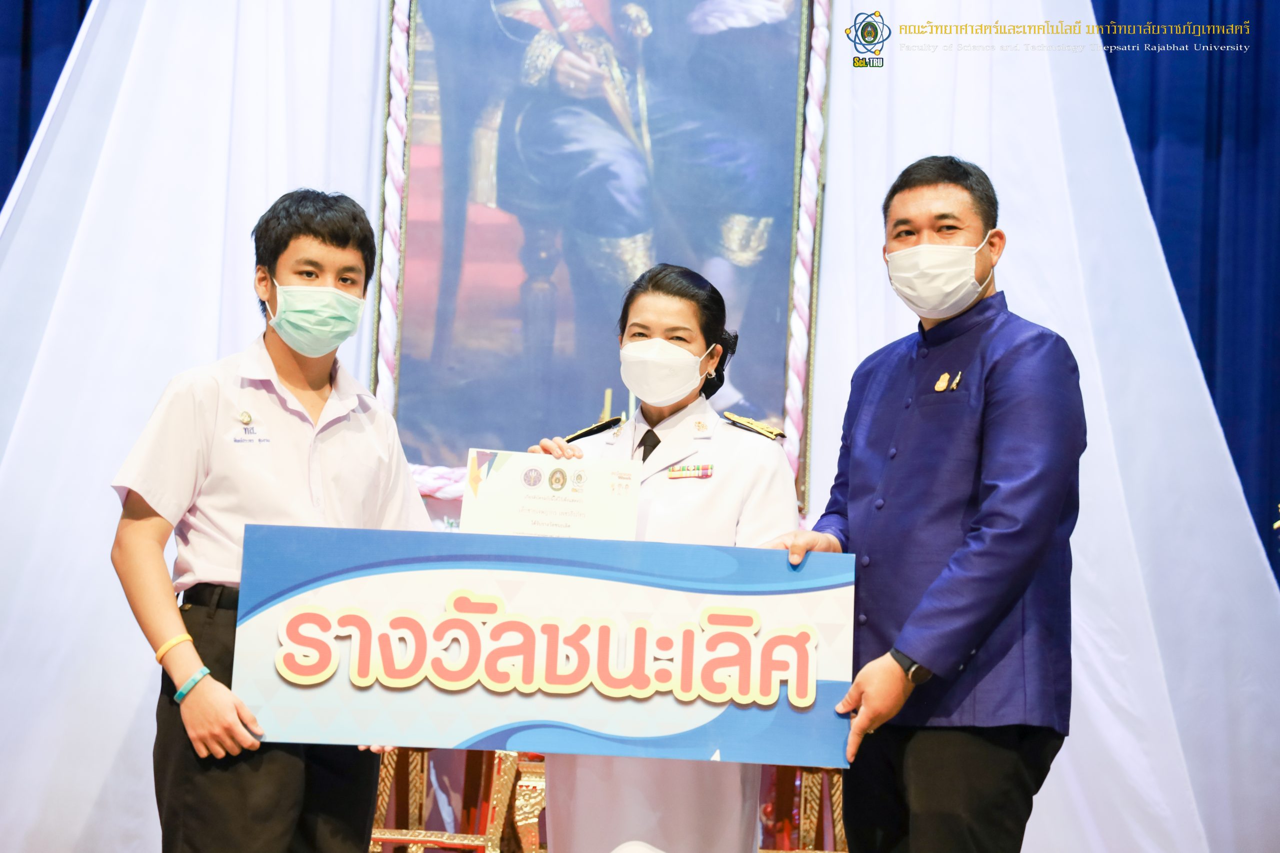 จากนั้น ผศ.ดร.กันยา บาร์นท์ อธิการบดีมหาวิทยาลัยราชภัฏเทพสตรี ได้ให้เกียรติเป็นประธานในพิธีมอบประกาศนียบัตรแก่นักเรียนที่ได้รับรางวัลจากการประกวดแข่งขันประเภทต่าง ๆ ในงานสัปดาห์วิทยาศาสตร์แห่งชาติ ส่วนภูมิภาค ประจำปี 2565 ด้วย