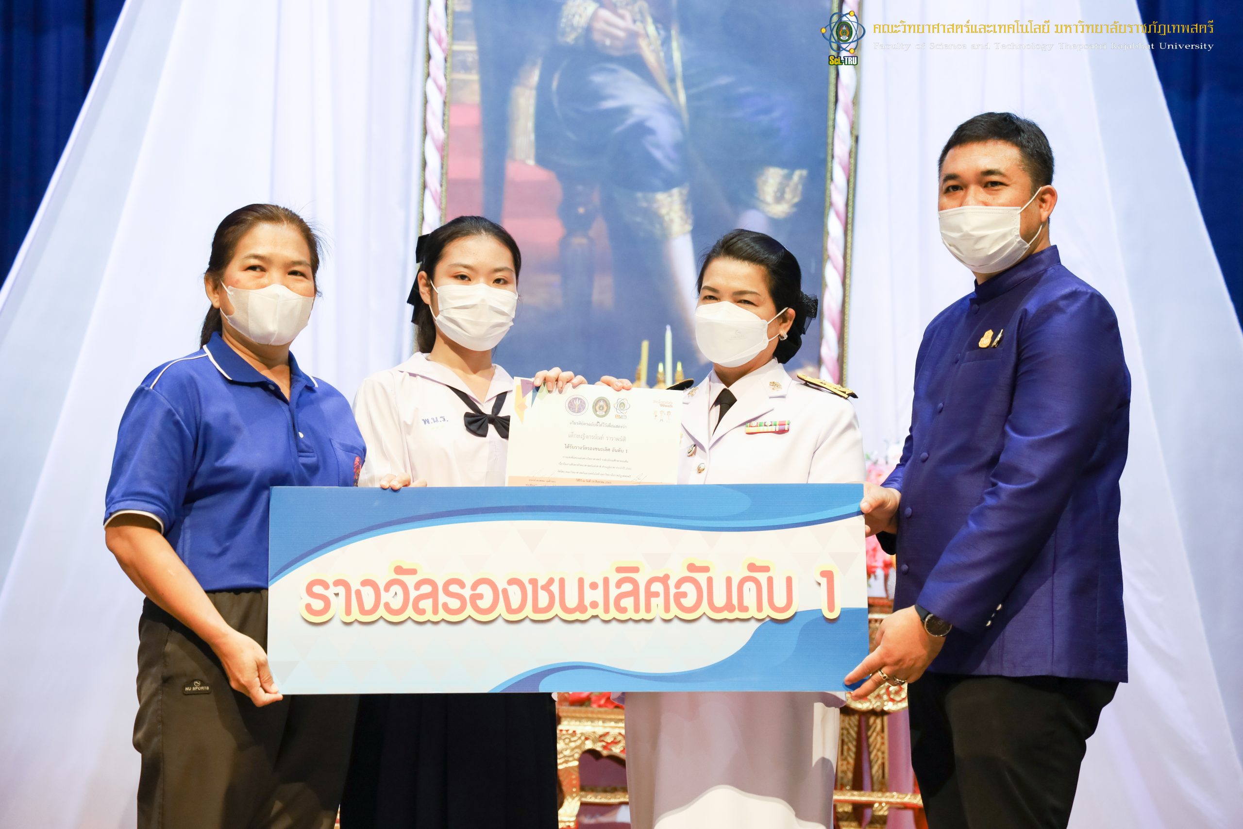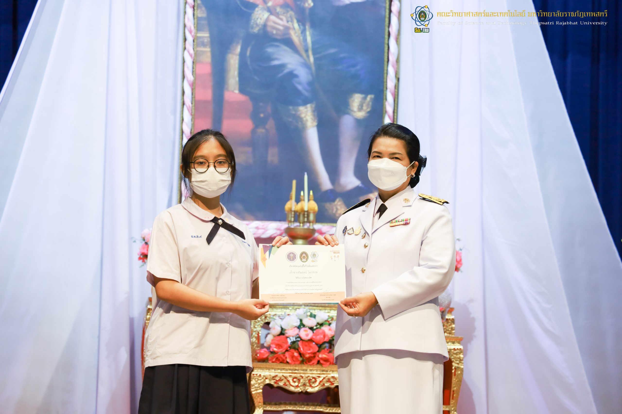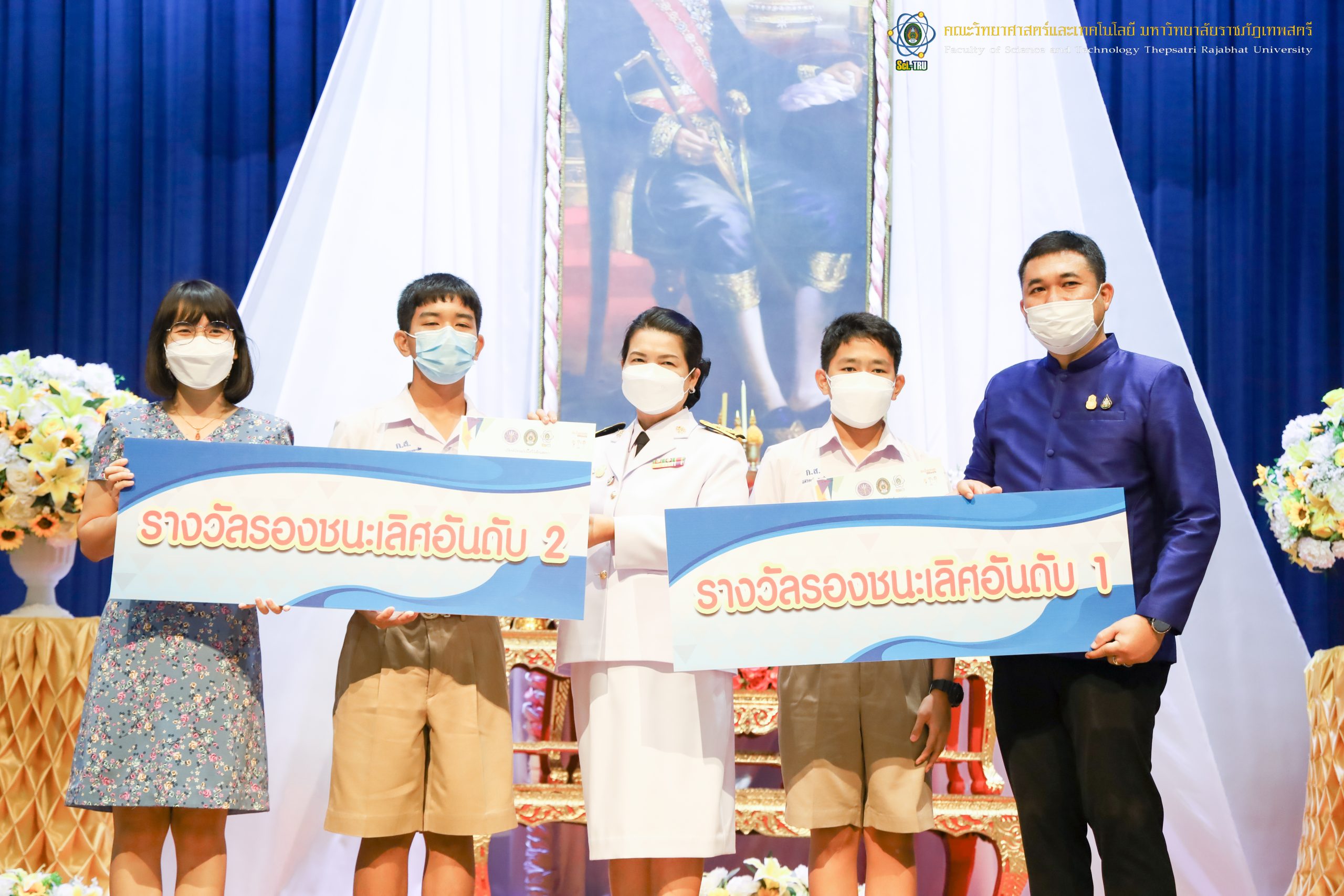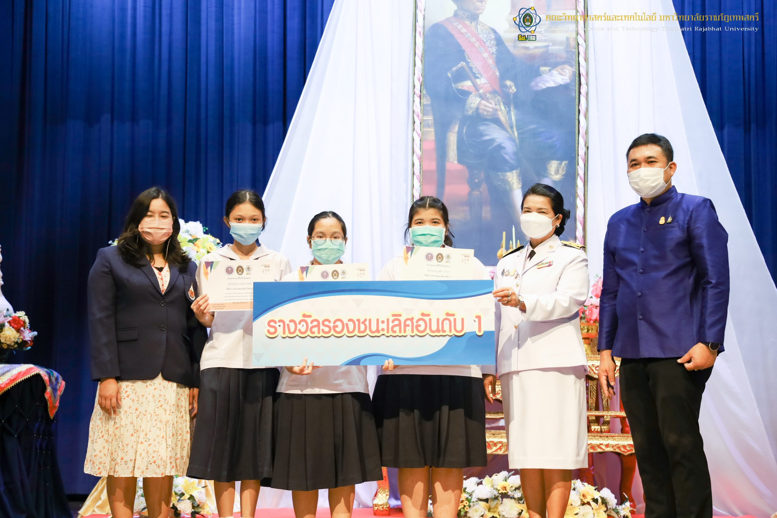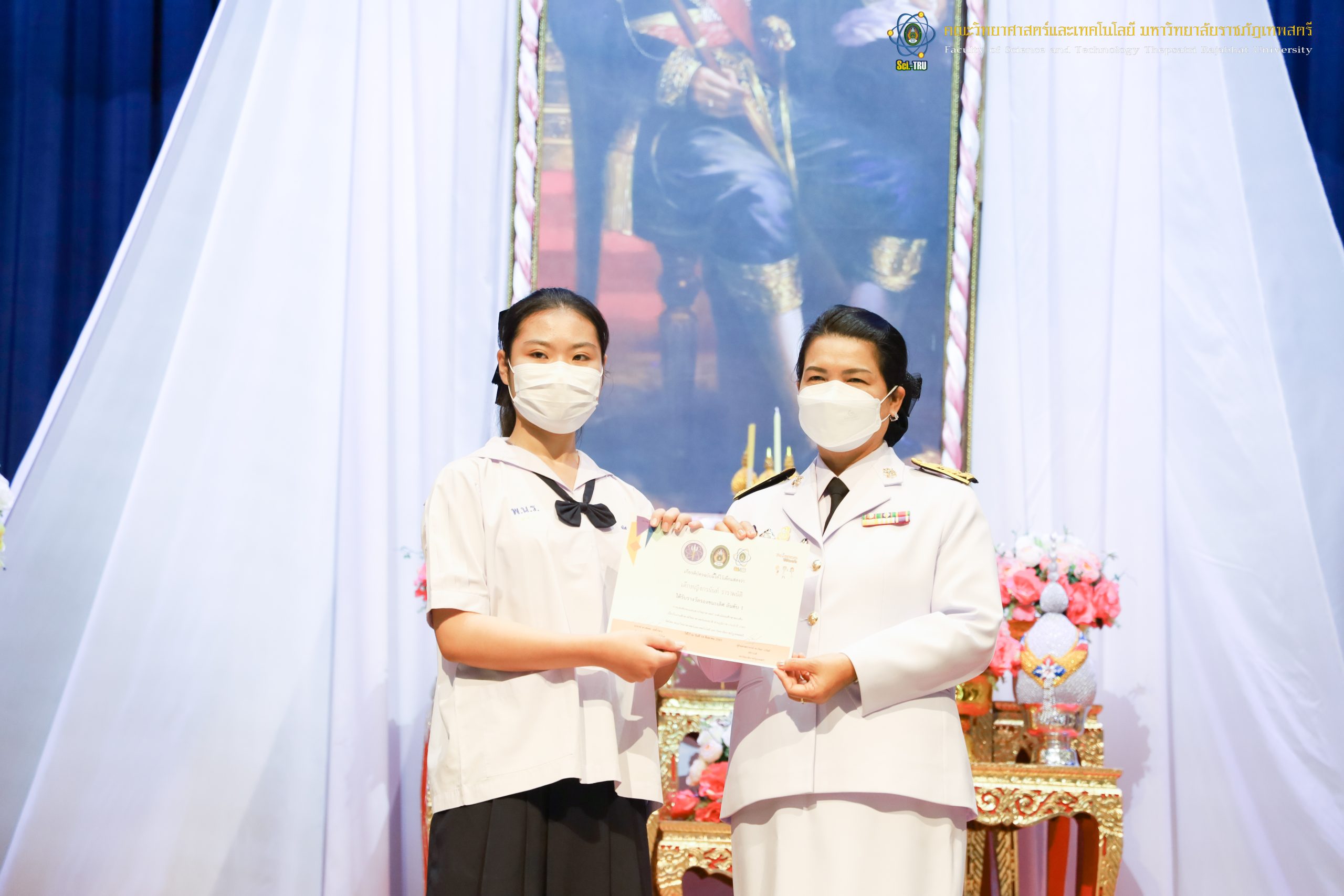 จากนั้น ผศ.ดร.กันยา บาร์นท์ อธิการบดีมหาวิทยาลัยราชภัฏเทพสตรี ได้ให้เกียรติเป็นประธานในพิธีมอบประกาศนียบัตรแก่นักเรียนที่ได้รับรางวัลจากการประกวดแข่งขันประเภทต่าง ๆ ในงานสัปดาห์วิทยาศาสตร์แห่งชาติ ส่วนภูมิภาค ประจำปี 2565 ด้วย