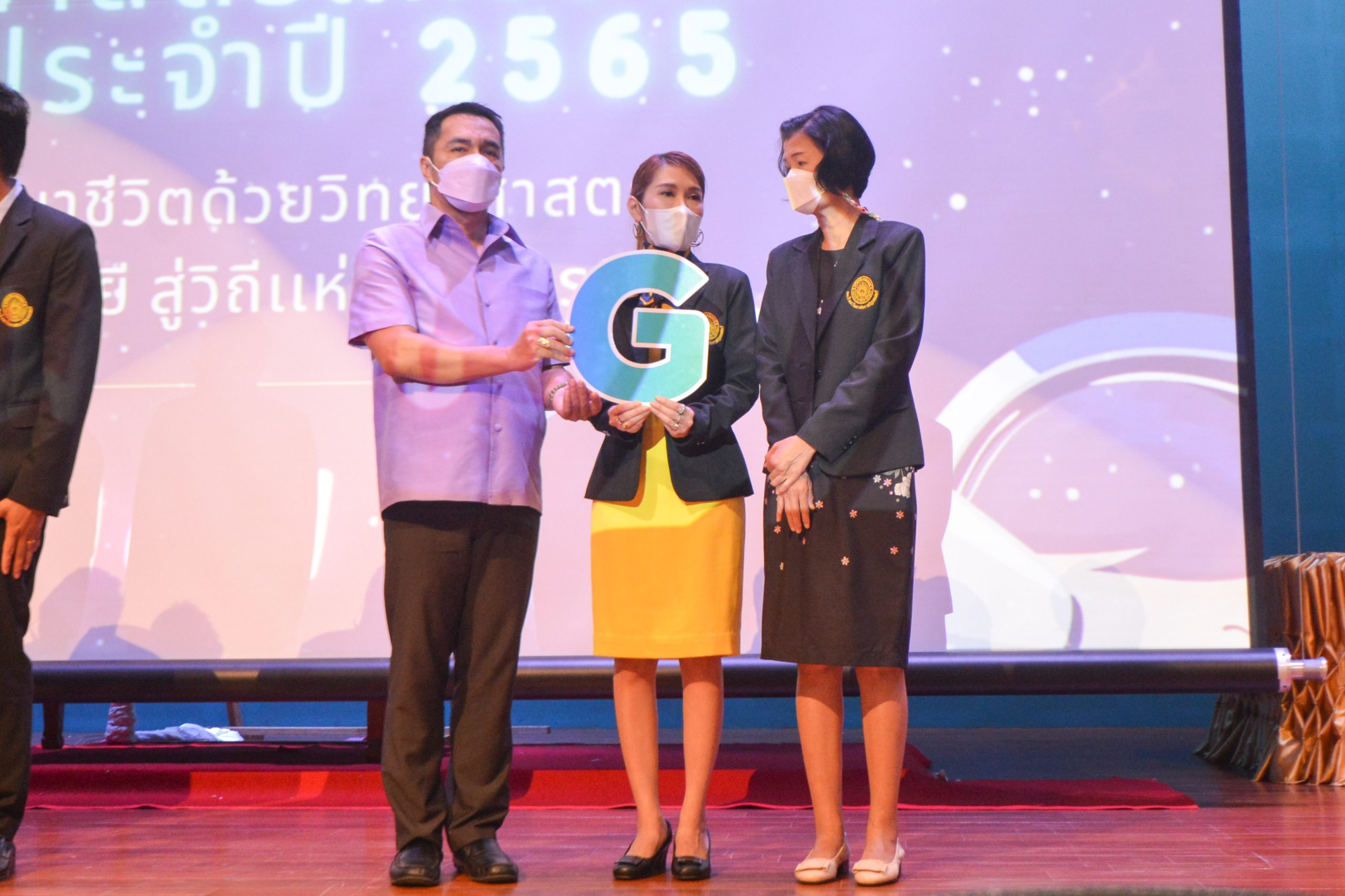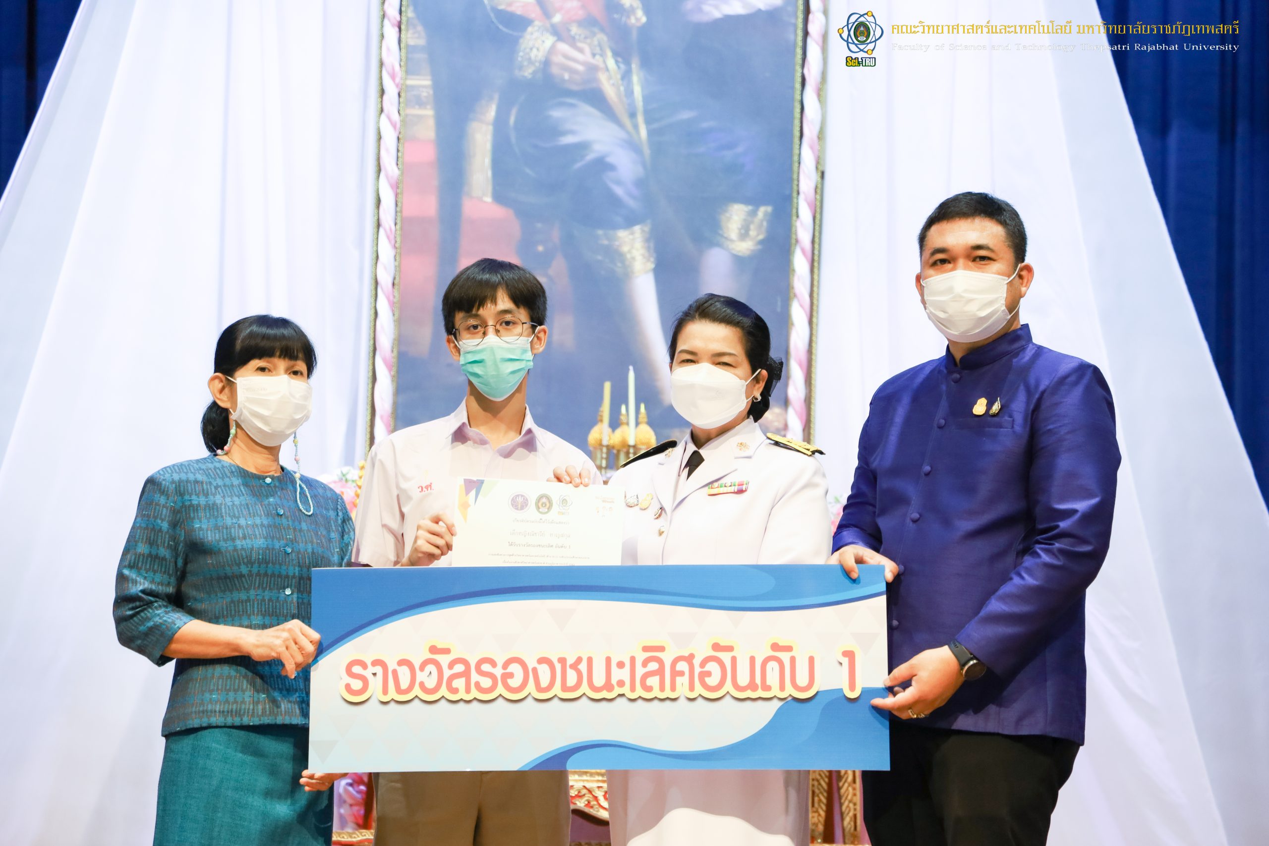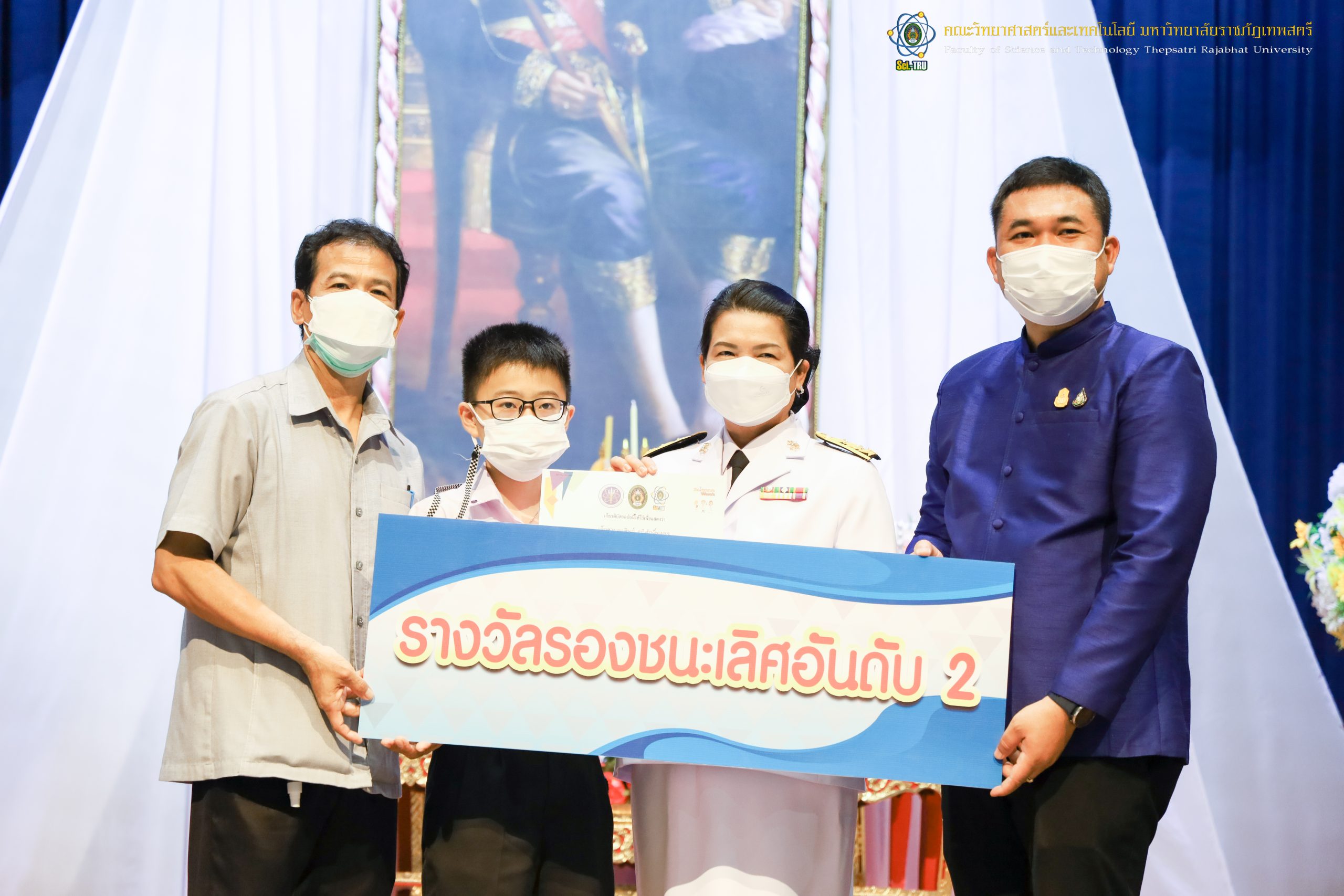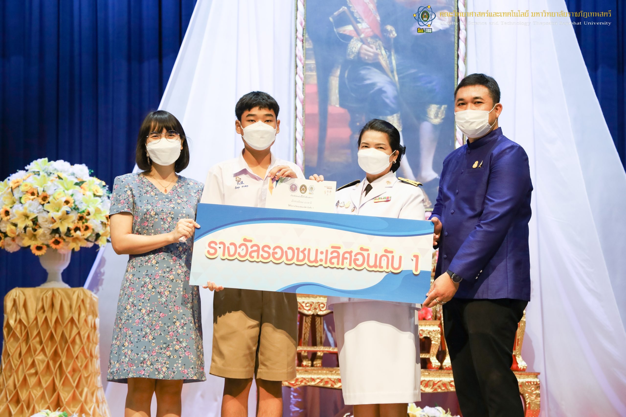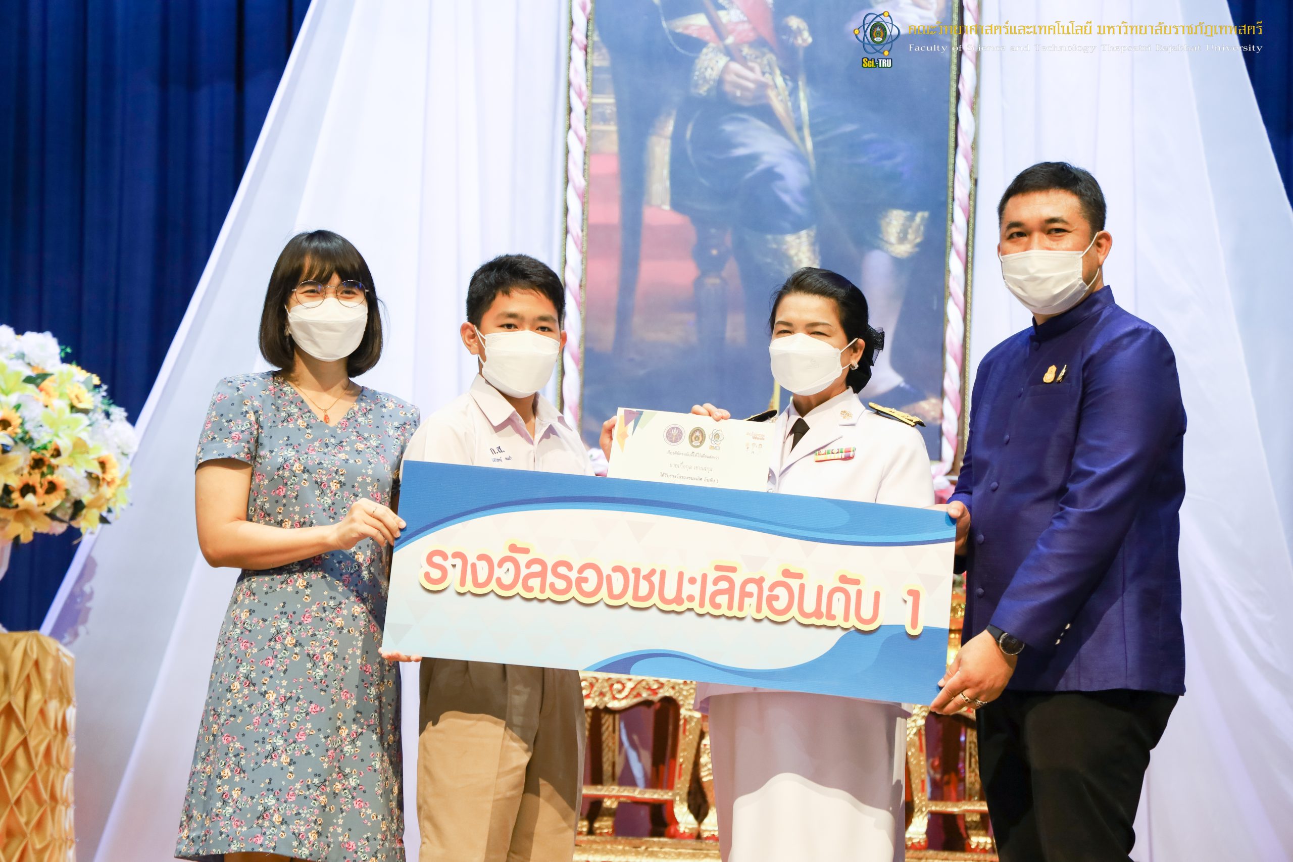 จากนั้น ผศ.ดร.กันยา บาร์นท์ อธิการบดีมหาวิทยาลัยราชภัฏเทพสตรี ได้ให้เกียรติเป็นประธานในพิธีมอบประกาศนียบัตรแก่นักเรียนที่ได้รับรางวัลจากการประกวดแข่งขันประเภทต่าง ๆ ในงานสัปดาห์วิทยาศาสตร์แห่งชาติ ส่วนภูมิภาค ประจำปี 2565 ด้วย