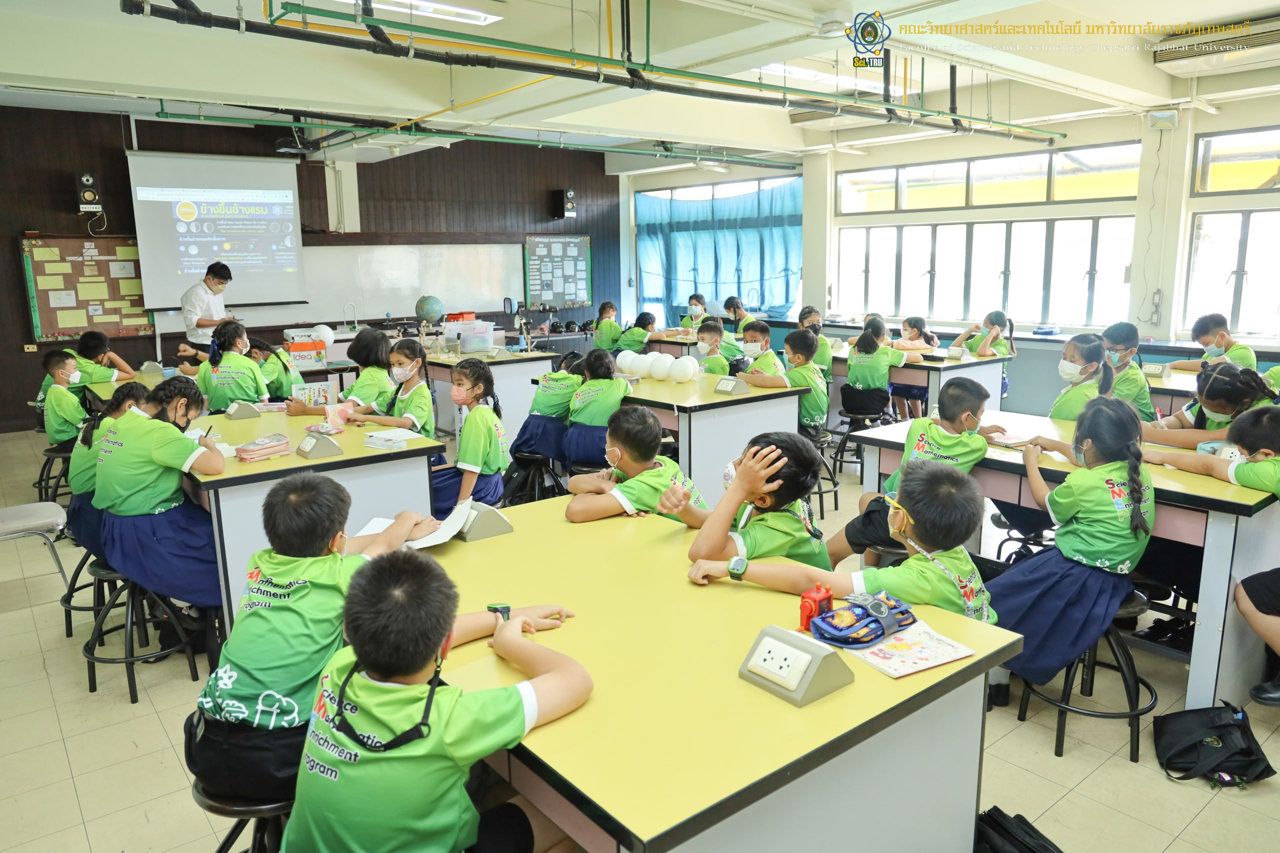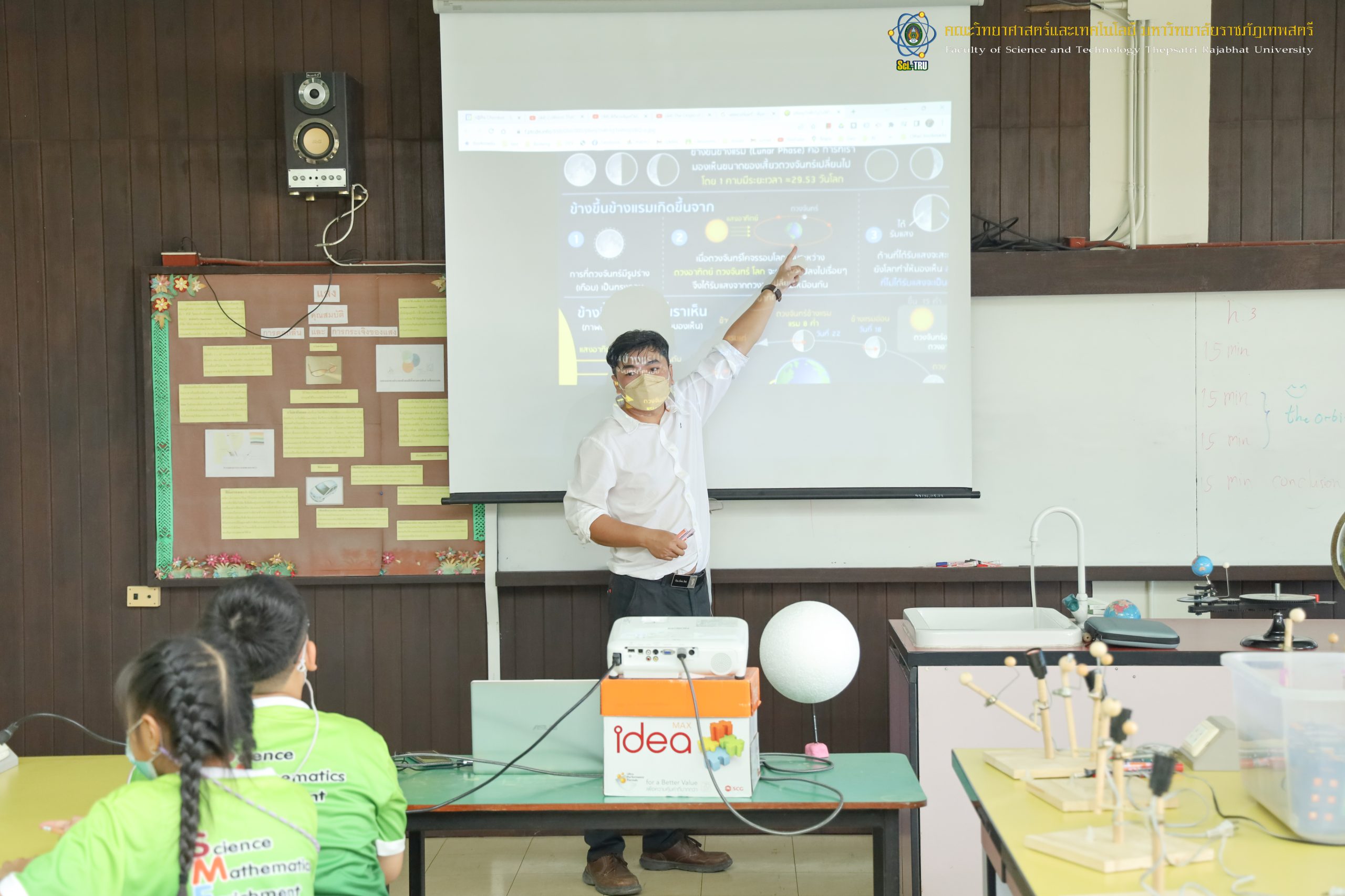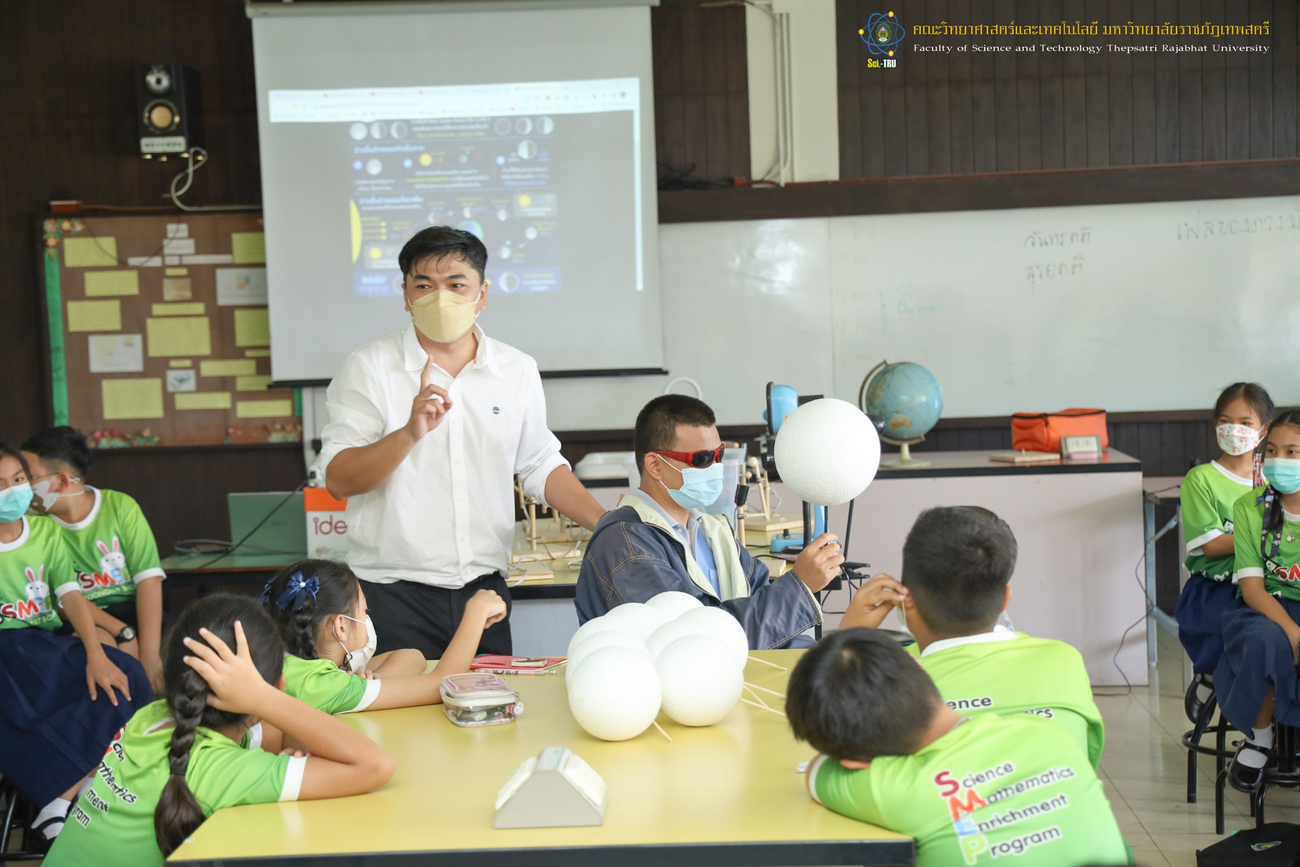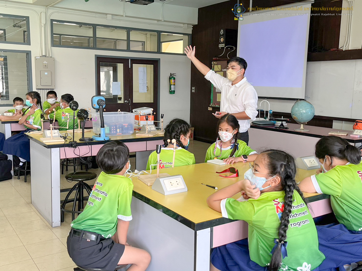 คณะวิทยาศาสตร์และเทคโนโลยี มหาวิทยาลัยราชภัฏเทพสตรีร่วมกับโรงเรียนบรรจงรัตน์ “โครงการ SMEP ” ในวันที่ 9 กันยายน 2565 เป็นการจัดกิจกรรมให้กับ นักเรียนชั้นประถมศึกษาปีที่ 4 กิจกรรมการเกิดข้างขึ้นข้างแรม วิทยากรได้รับเกียรติจาก อาจารย์ ดร. สรายุทธ พานเทียน และ อาจารย์วราวุธ สอาดสิน อาจารย์ประจำสาขาฟิสิกส์ คณะวิทยาศาสตร์และเทคโนโลยี มหาวิทยาลัยราชภัฏเทพสตรี ณ ห้อง 9/201 ศูนย์วิทยาศาสตร์