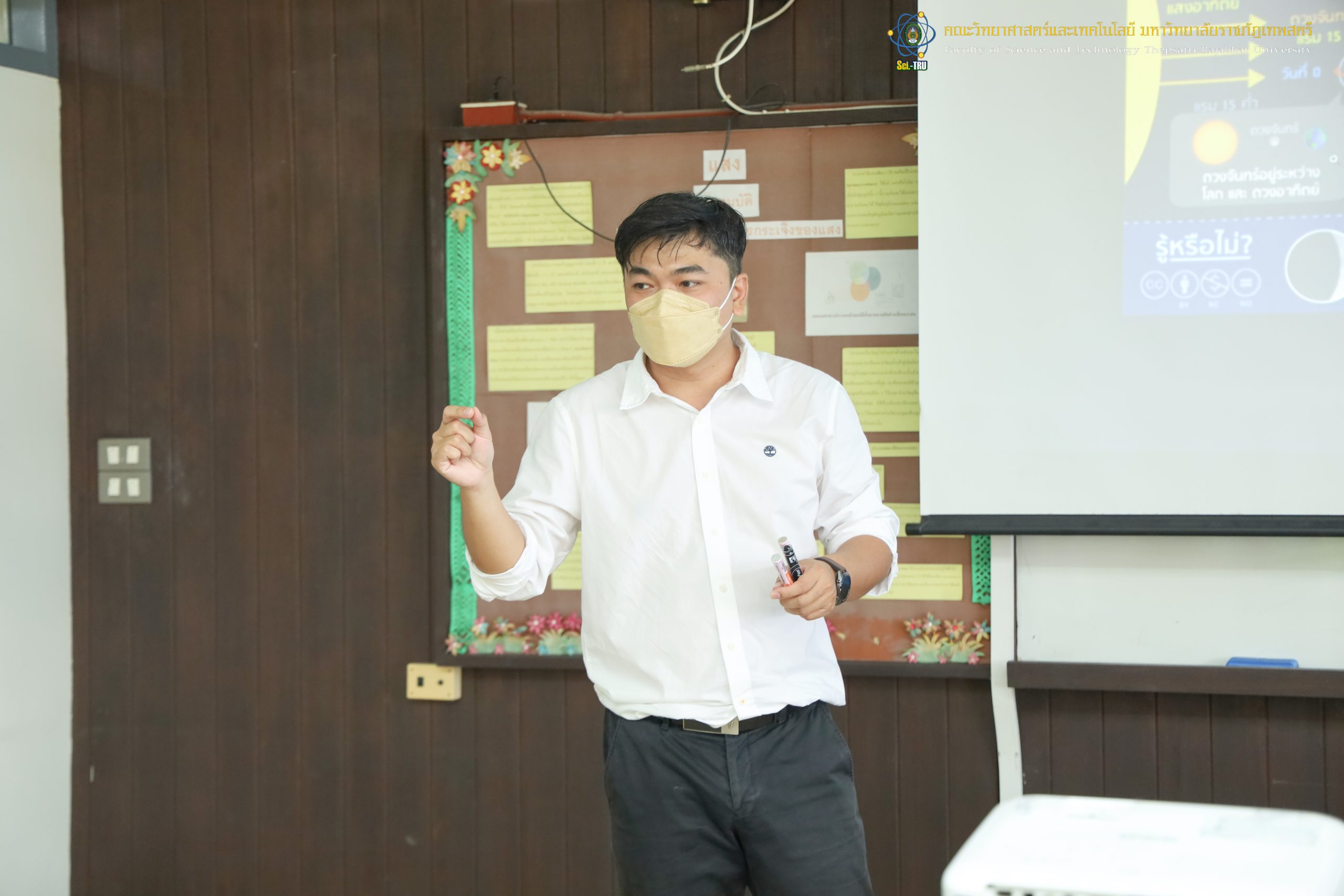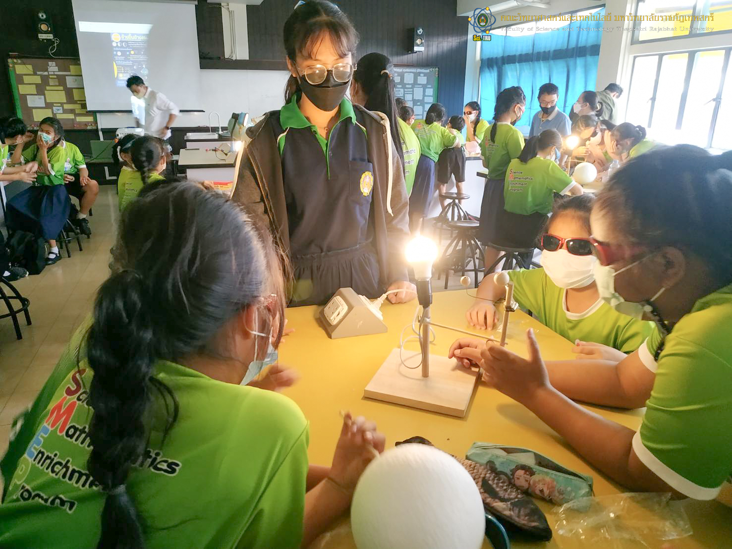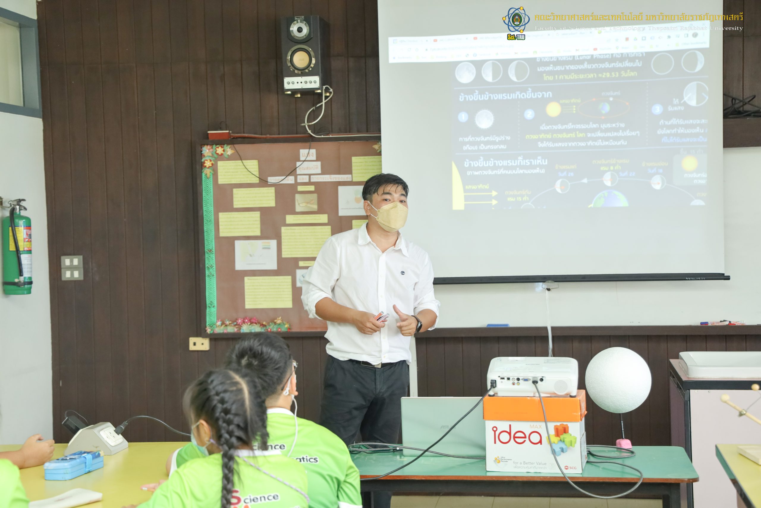 คณะวิทยาศาสตร์และเทคโนโลยี มหาวิทยาลัยราชภัฏเทพสตรีร่วมกับโรงเรียนบรรจงรัตน์ “โครงการ SMEP ” ในวันที่ 9 กันยายน 2565 เป็นการจัดกิจกรรมให้กับ นักเรียนชั้นประถมศึกษาปีที่ 4 กิจกรรมการเกิดข้างขึ้นข้างแรม วิทยากรได้รับเกียรติจาก อาจารย์ ดร. สรายุทธ พานเทียน และ อาจารย์วราวุธ สอาดสิน อาจารย์ประจำสาขาฟิสิกส์ คณะวิทยาศาสตร์และเทคโนโลยี มหาวิทยาลัยราชภัฏเทพสตรี ณ ห้อง 9/201 ศูนย์วิทยาศาสตร์
