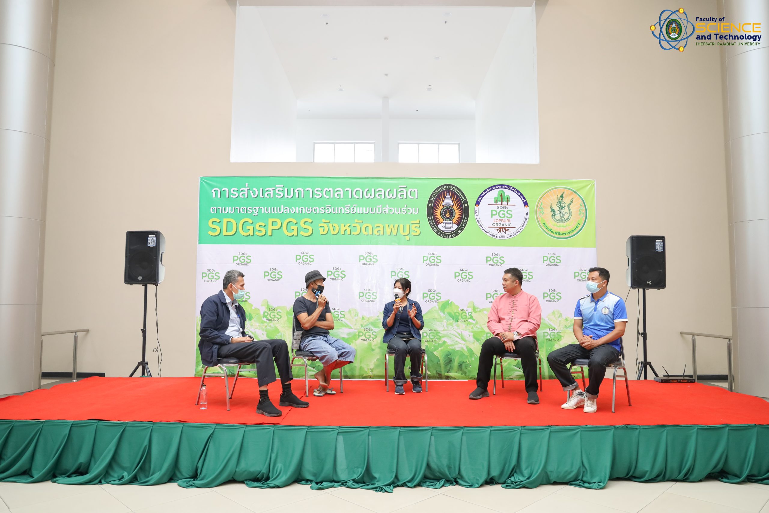 อ.ดร.ศตพล มุ่งค้ำกลาง คณบดีคณะวิทยาศาสตร์และเทคโนโลยี มหาวิทยาลัยราชภัฏเทพสตรี ได้ให้เกียรติเป็นประธานในการเปิดเวทีเสวนาการส่งเสริมการตลาดผลผลิตตามมาตราฐานแปลงเกษตรอินทรีย์แบบมีส่วนร่วม SDGsPGS จังหวัดลพบุรี ครั้งที่ 2 ร่วมกับ คุณพิมพ์ชญา ผาฮุย ประธานสมาพันธ์เกษตรกรรมยั่งยืนจังหวัดลพบุรี เพื่อเสวนาแลกเปลี่ยนเรียนรู้ในการขับเคลื่อนเกษตรกรเพื่อให้ได้การรับรองมาตรฐานเกษตรอินทรีย์แบบมีส่วนร่วม (SDGsPGS) โดยจัดขึ้นในวันที่ 11และ25 มกราคม 2566 ภายในงานได้จัดบูธจำหน่ายสินค้าทางการเกษตรจากกลุ่มเกษตรกร ณ บริเวณโถงอาคารรัตนเทพสตรี